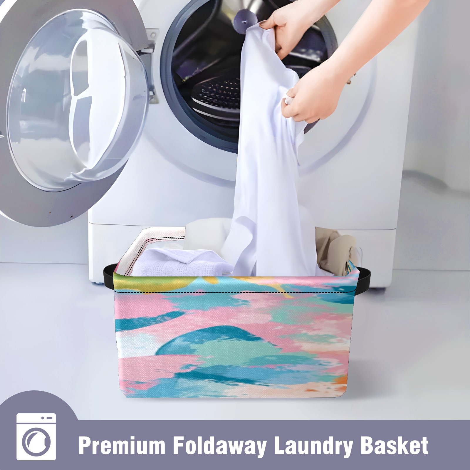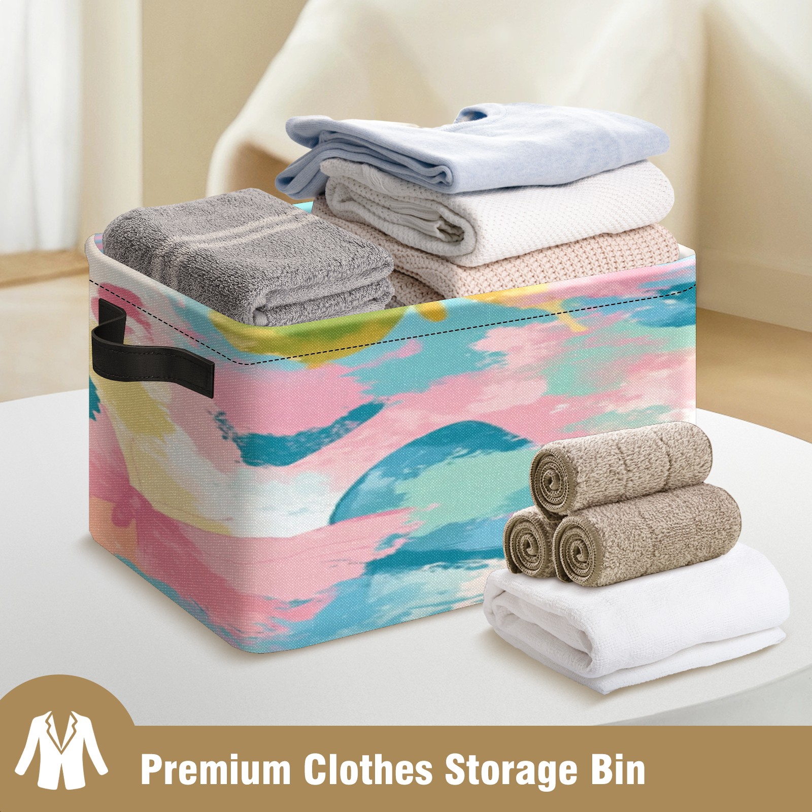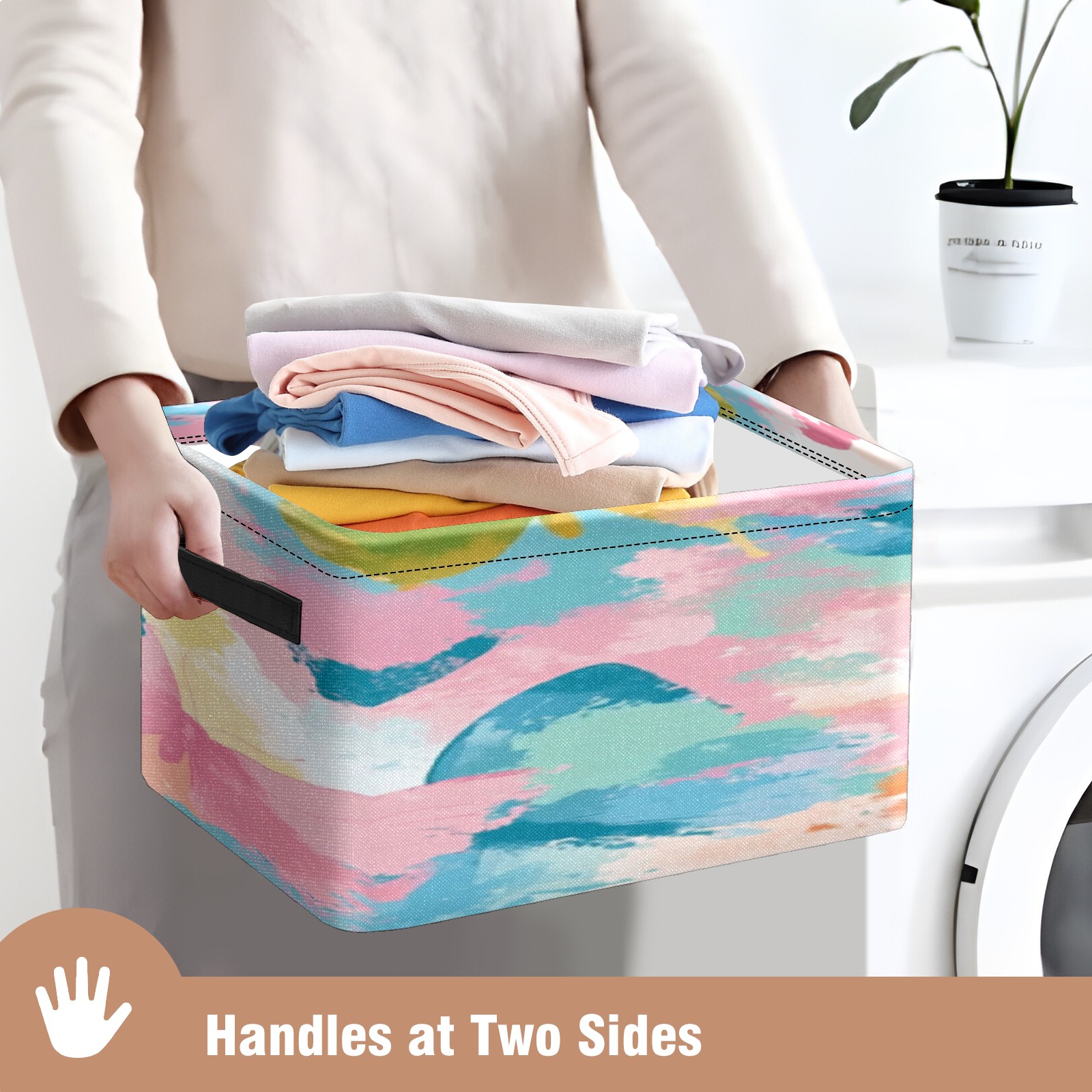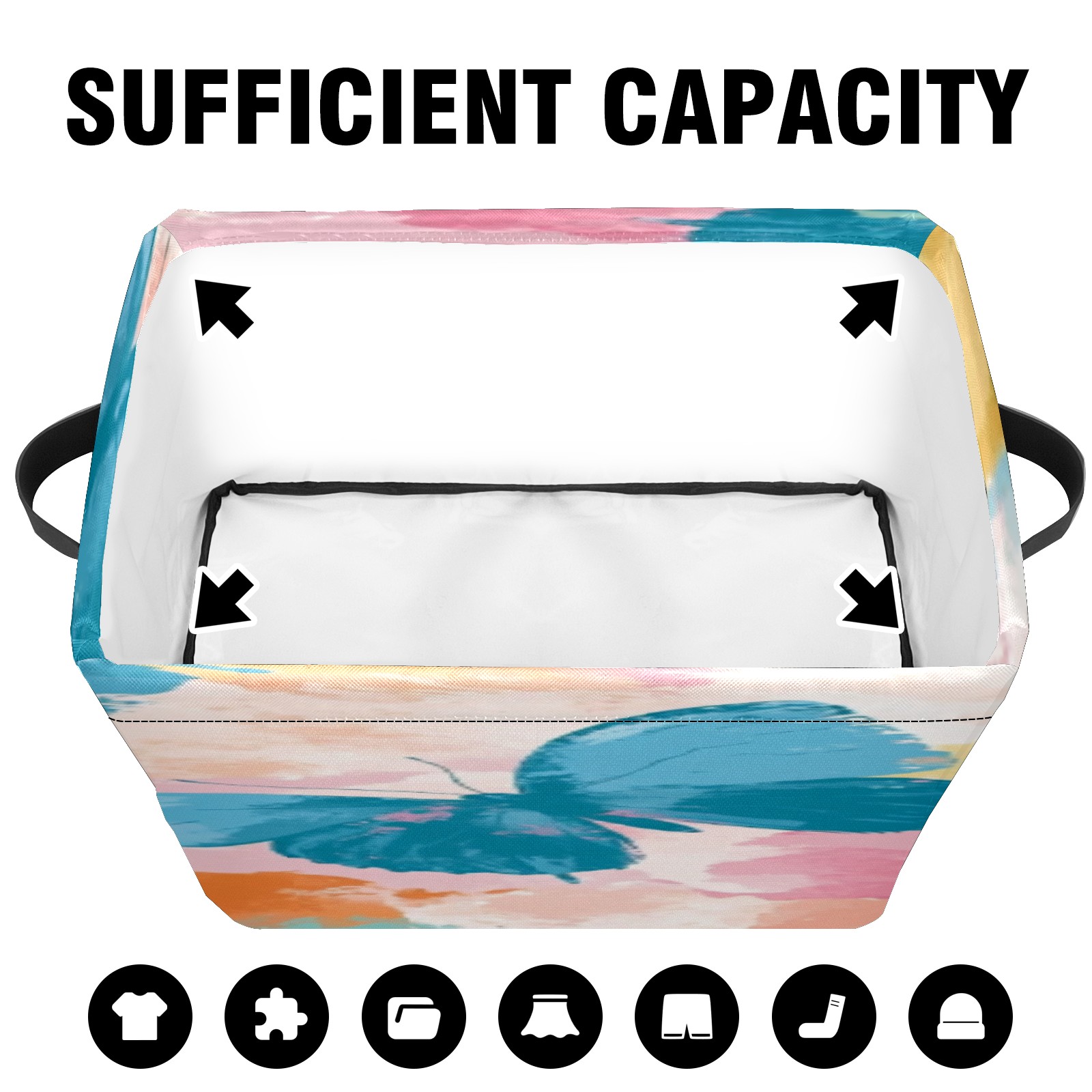 Foldable and Stackable Fabric Storage Basket for Home Organization with Handles, Decorative Closet Bins for Shelves, Laundry, and Toy Storage( Pastel-color Butterflies)