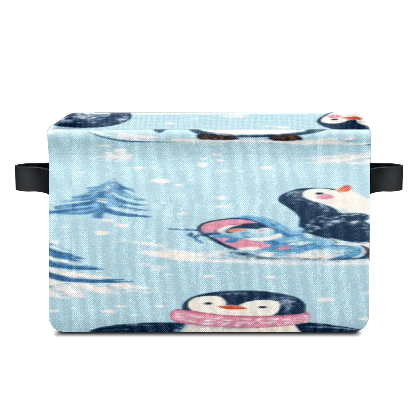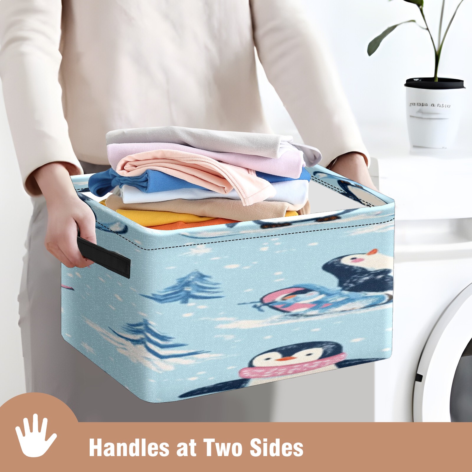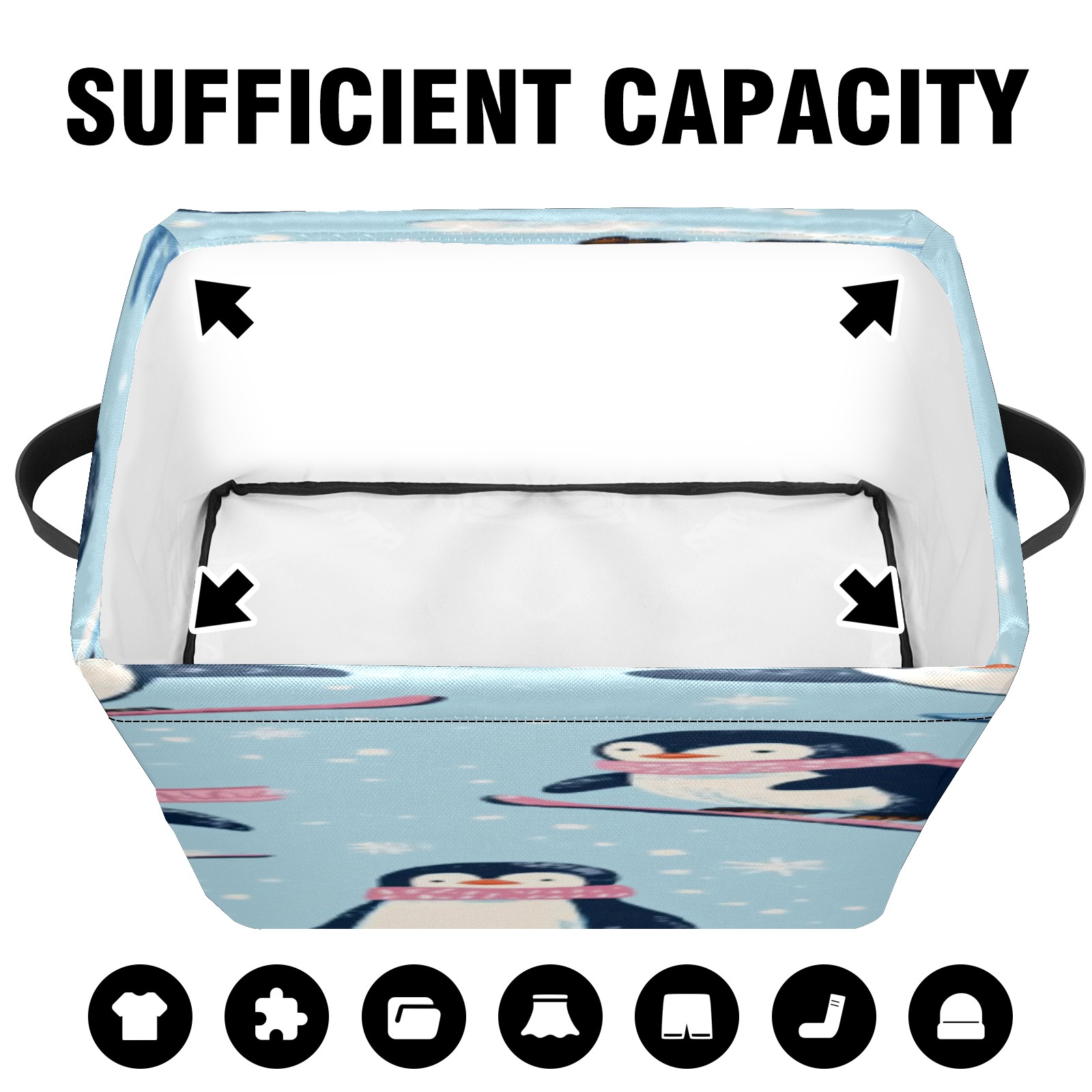 Foldable and Stackable Fabric Storage Basket for Home Organization with Handles, Decorative Closet Bins for Shelves, Laundry, and Toy Storage( Playful Penguins)