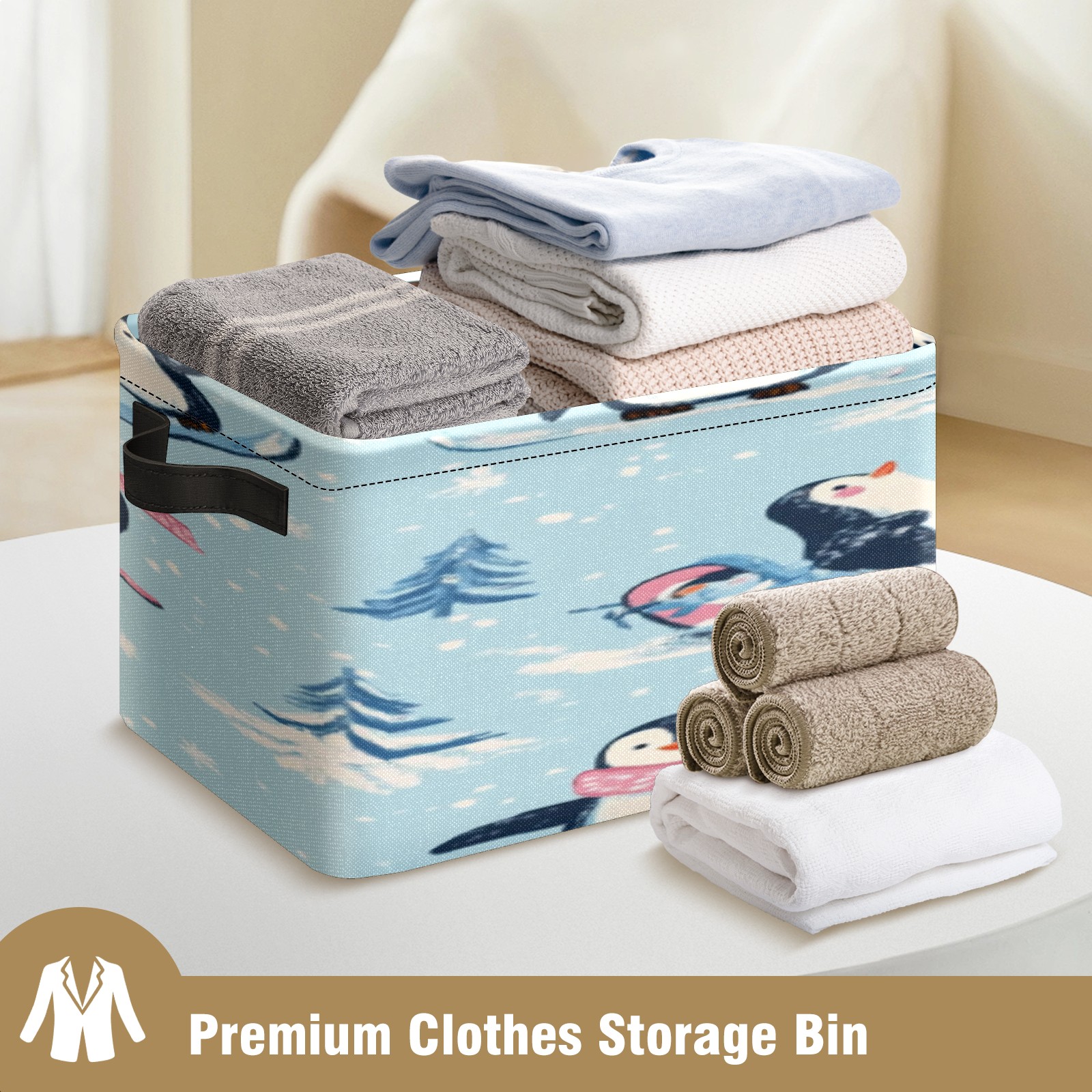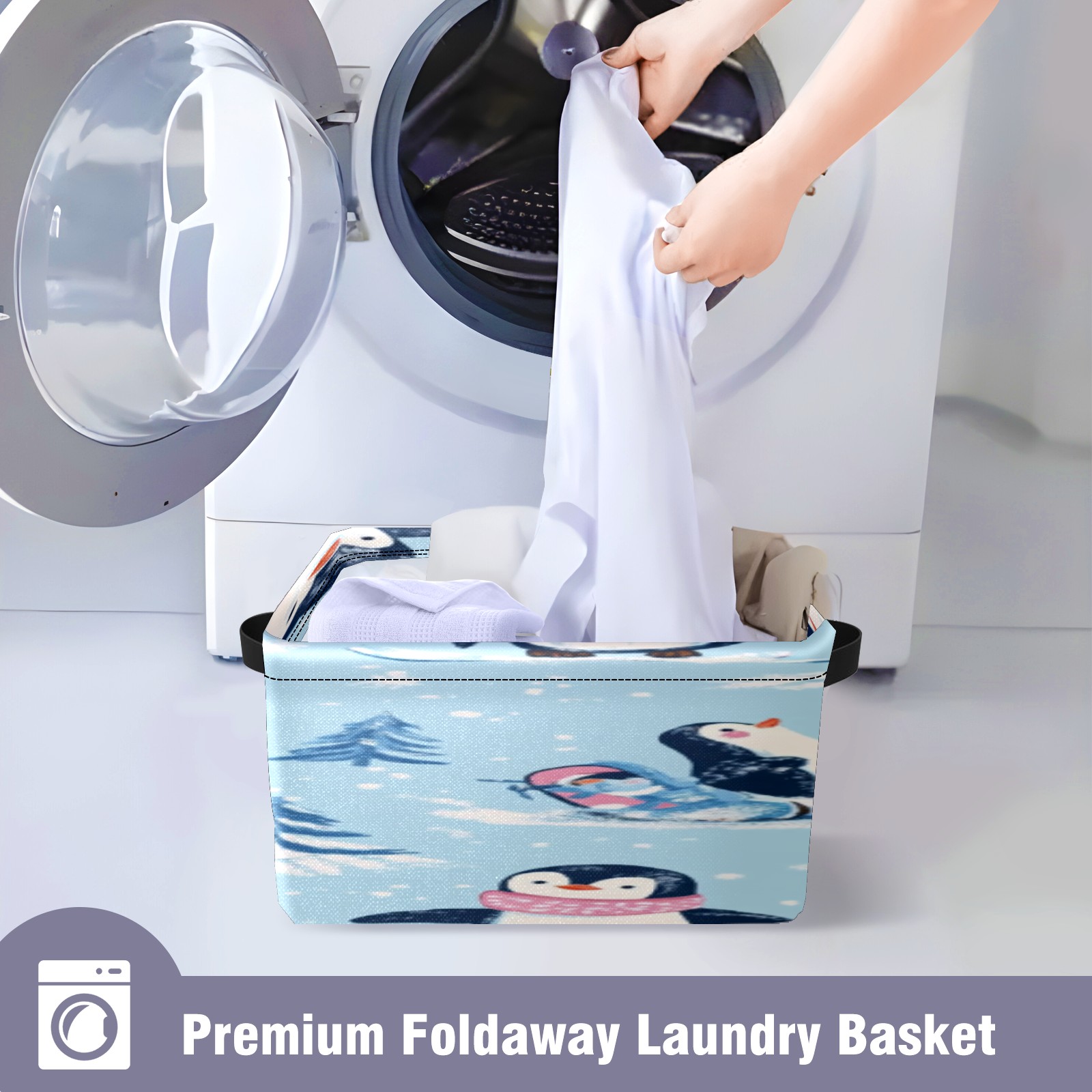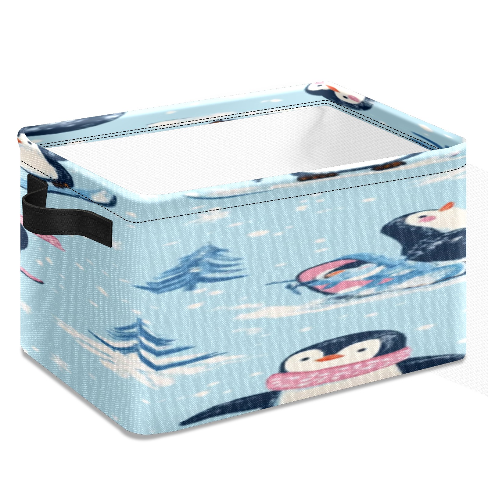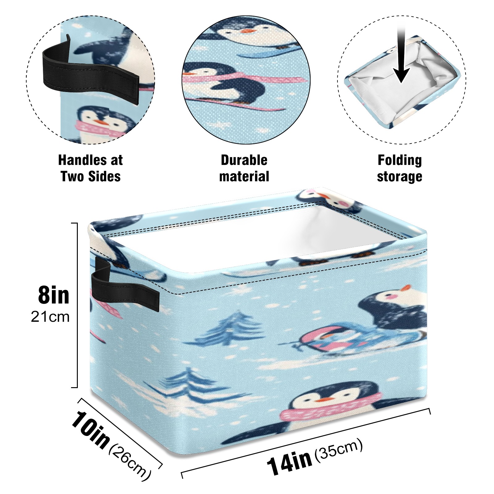 Foldable and Stackable Fabric Storage Basket for Home Organization with Handles, Decorative Closet Bins for Shelves, Laundry, and Toy Storage( Playful Penguins)