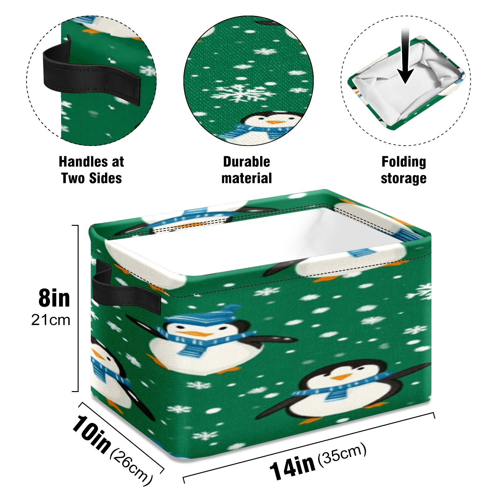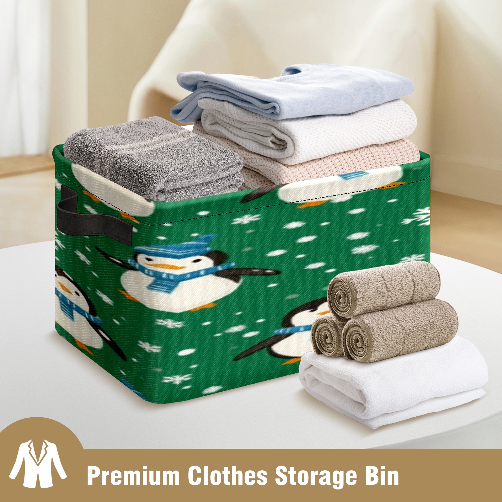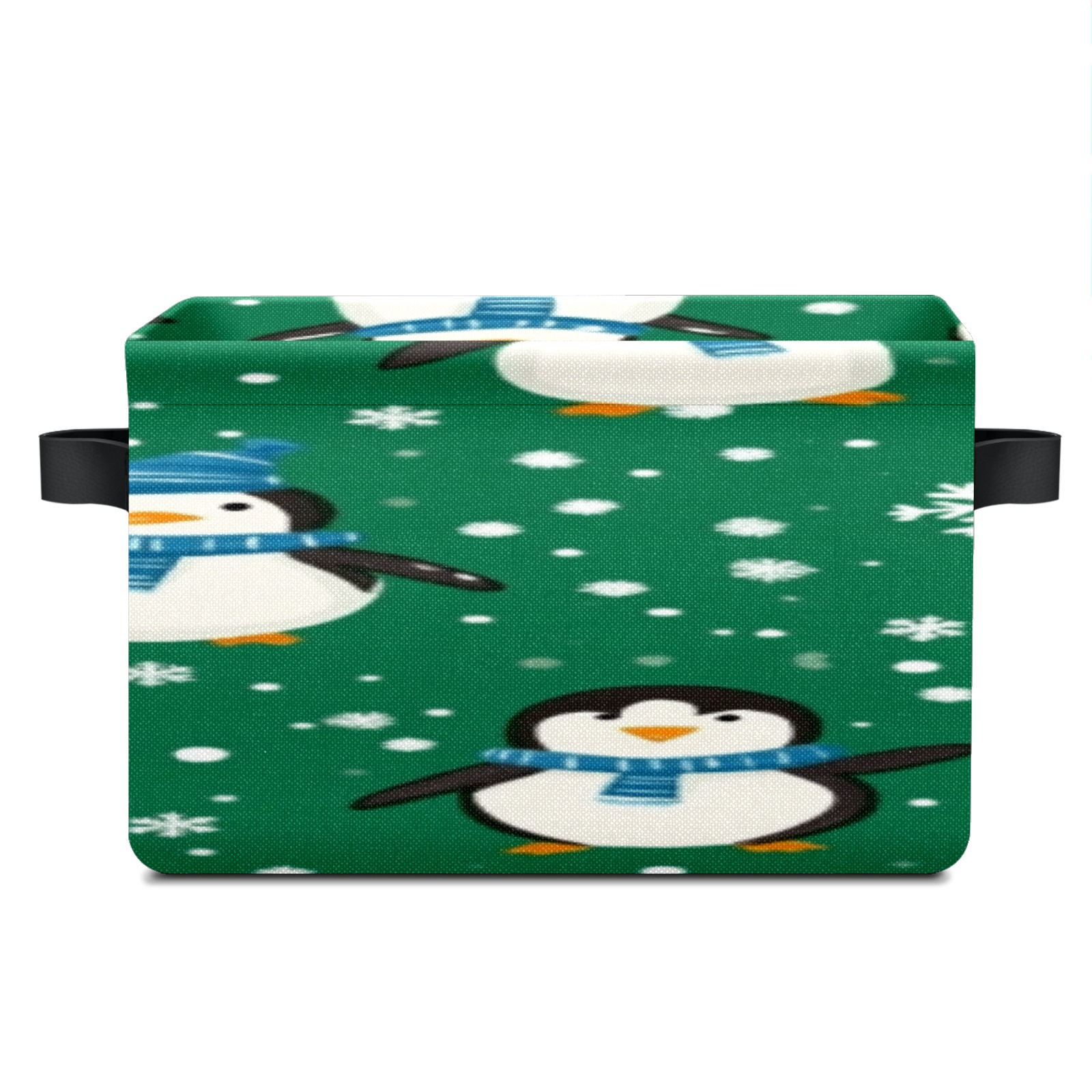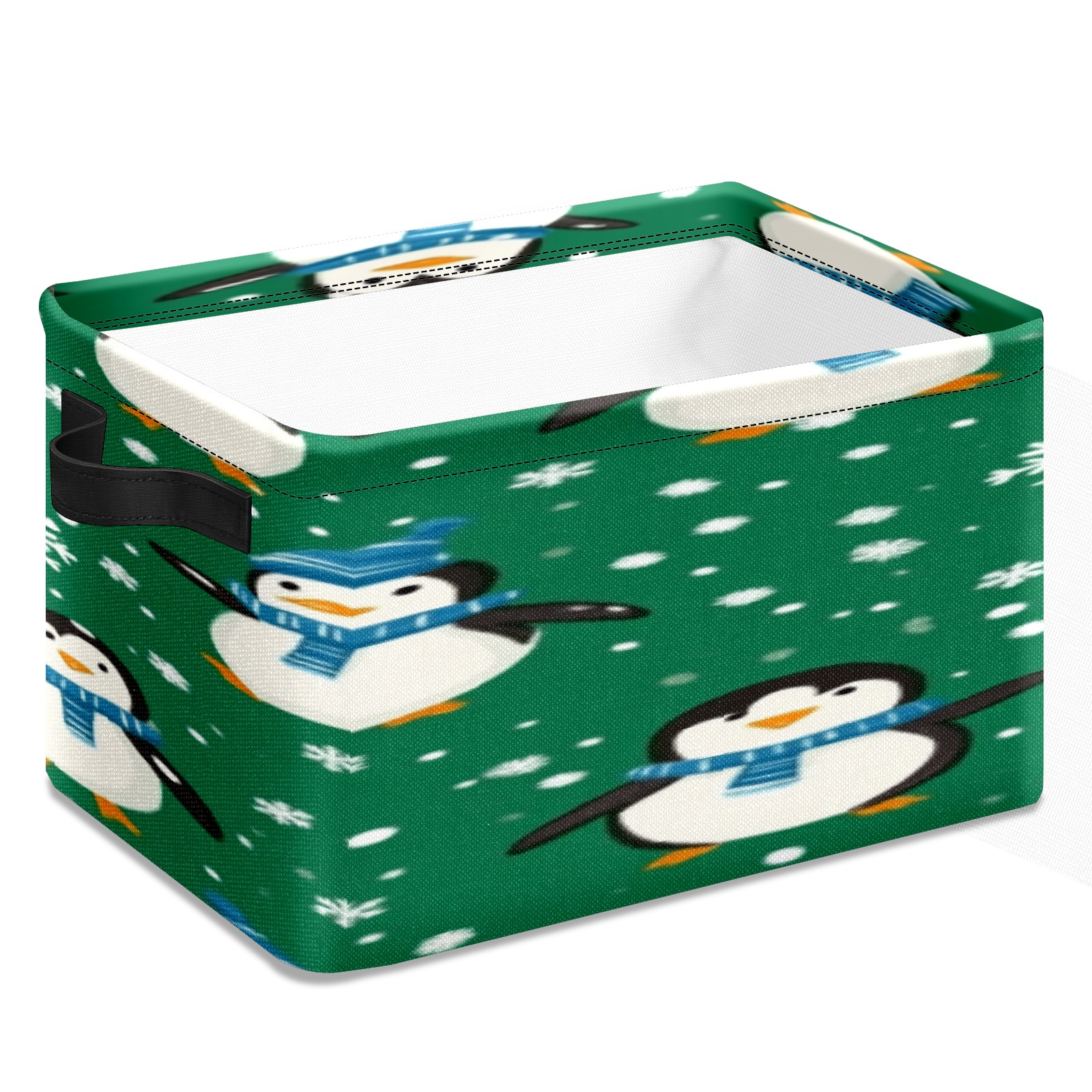 Foldable and Stackable Fabric Storage Basket for Home Organization with Handles, Decorative Closet Bins for Shelves, Laundry, and Toy Storage( Penguins And Snowmen)