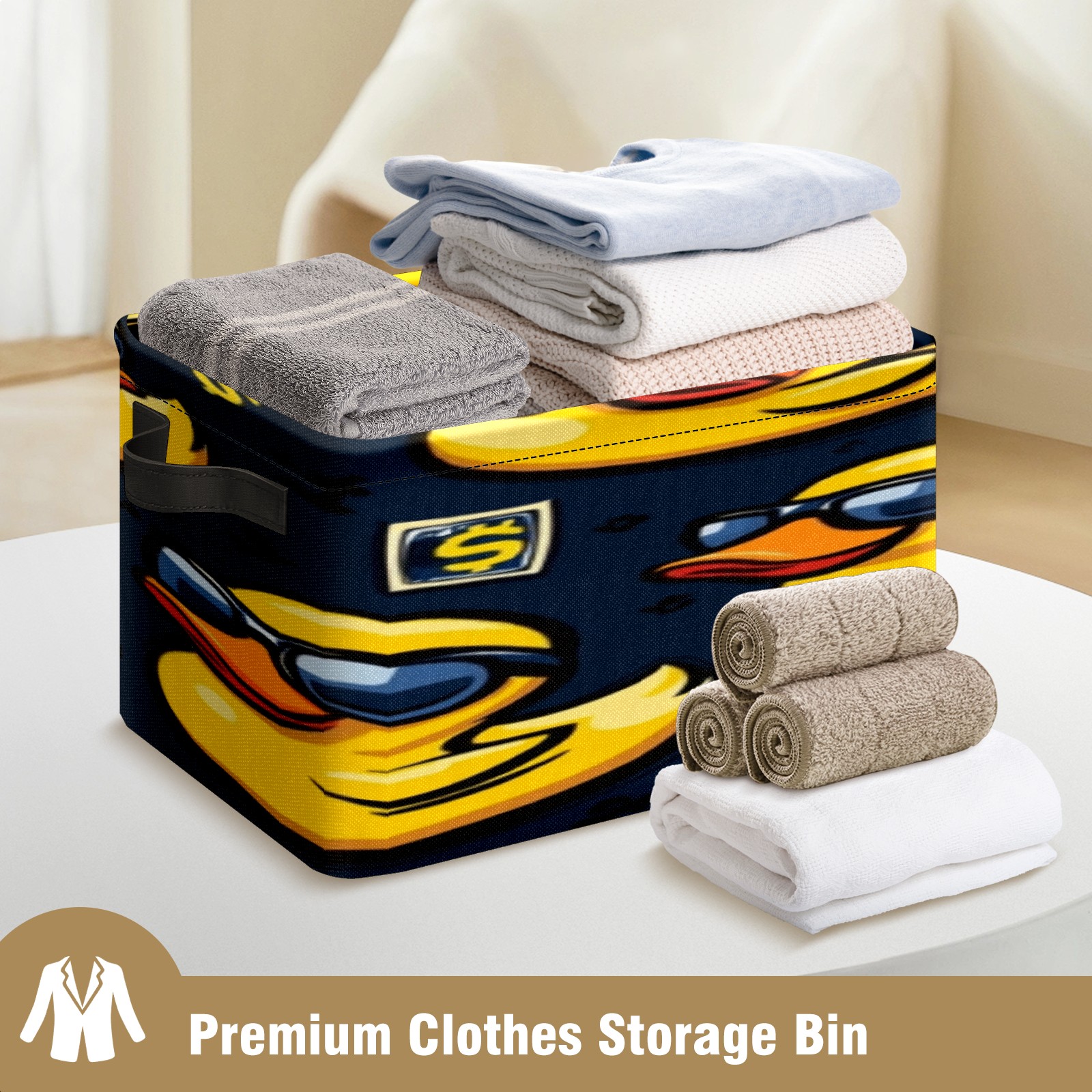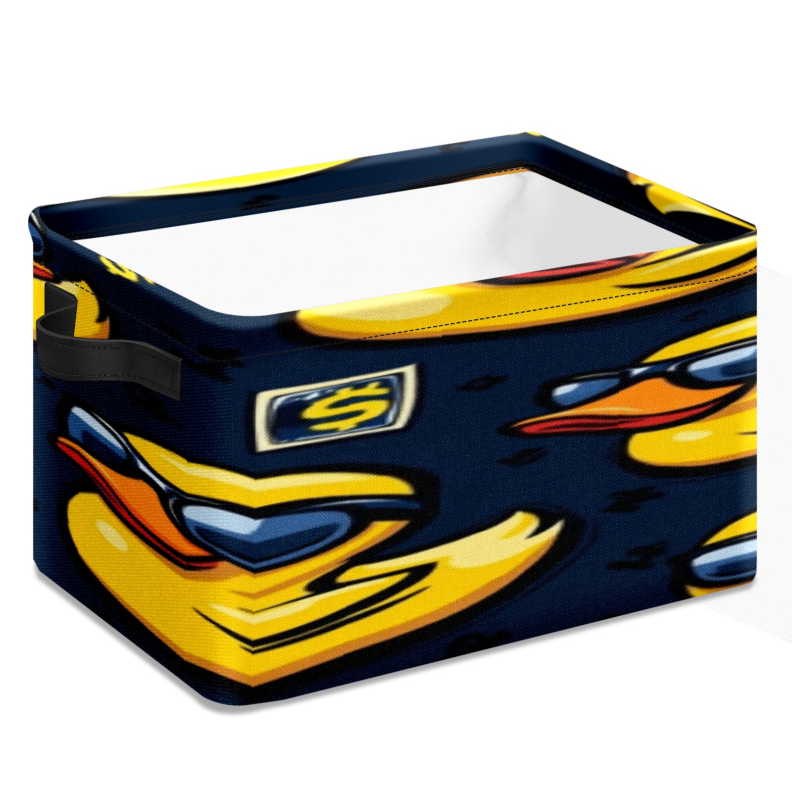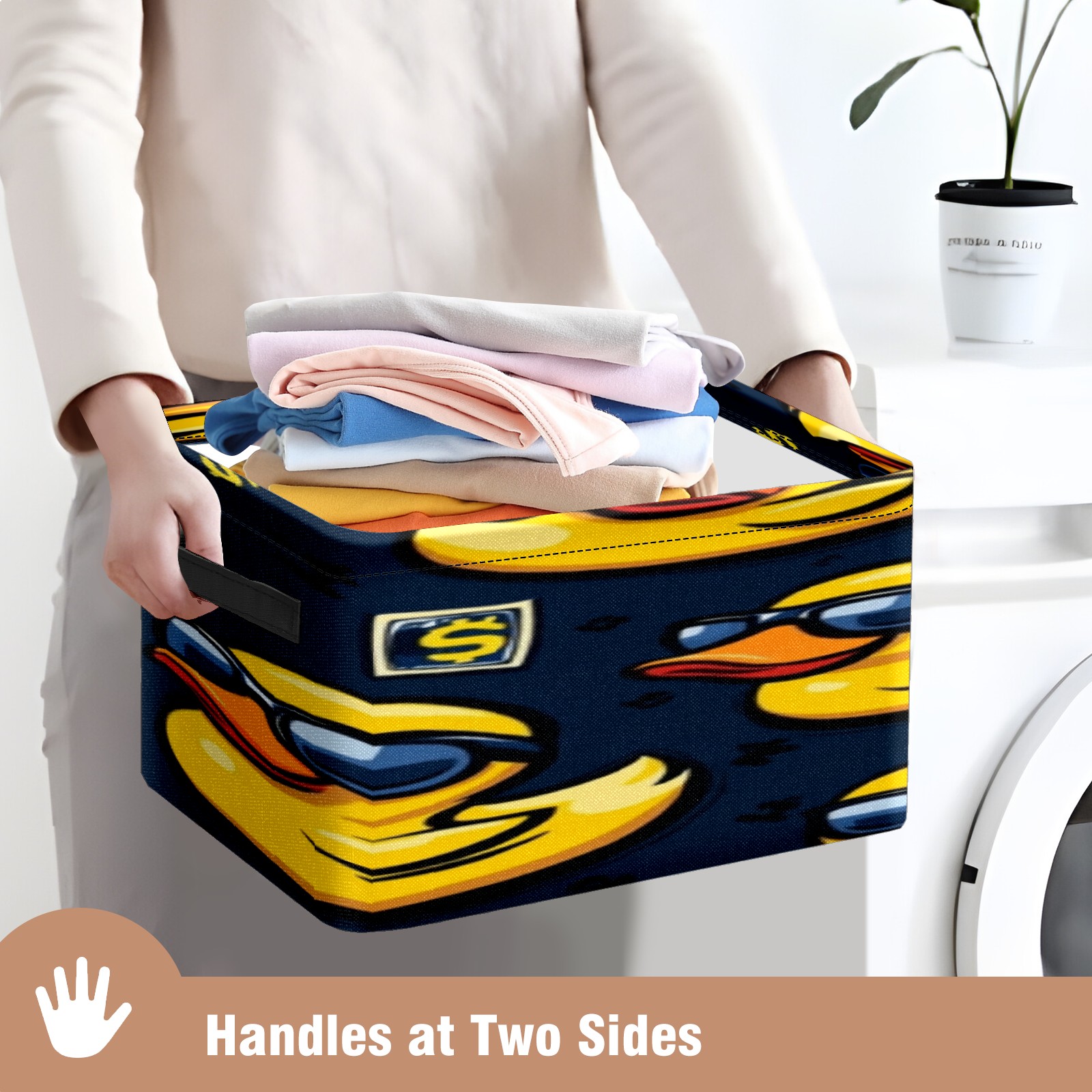 Foldable and Stackable Fabric Storage Basket for Home Organization with Handles, Decorative Closet Bins for Shelves, Laundry, and Toy Storage( Ducks Wearing Sunglasses)