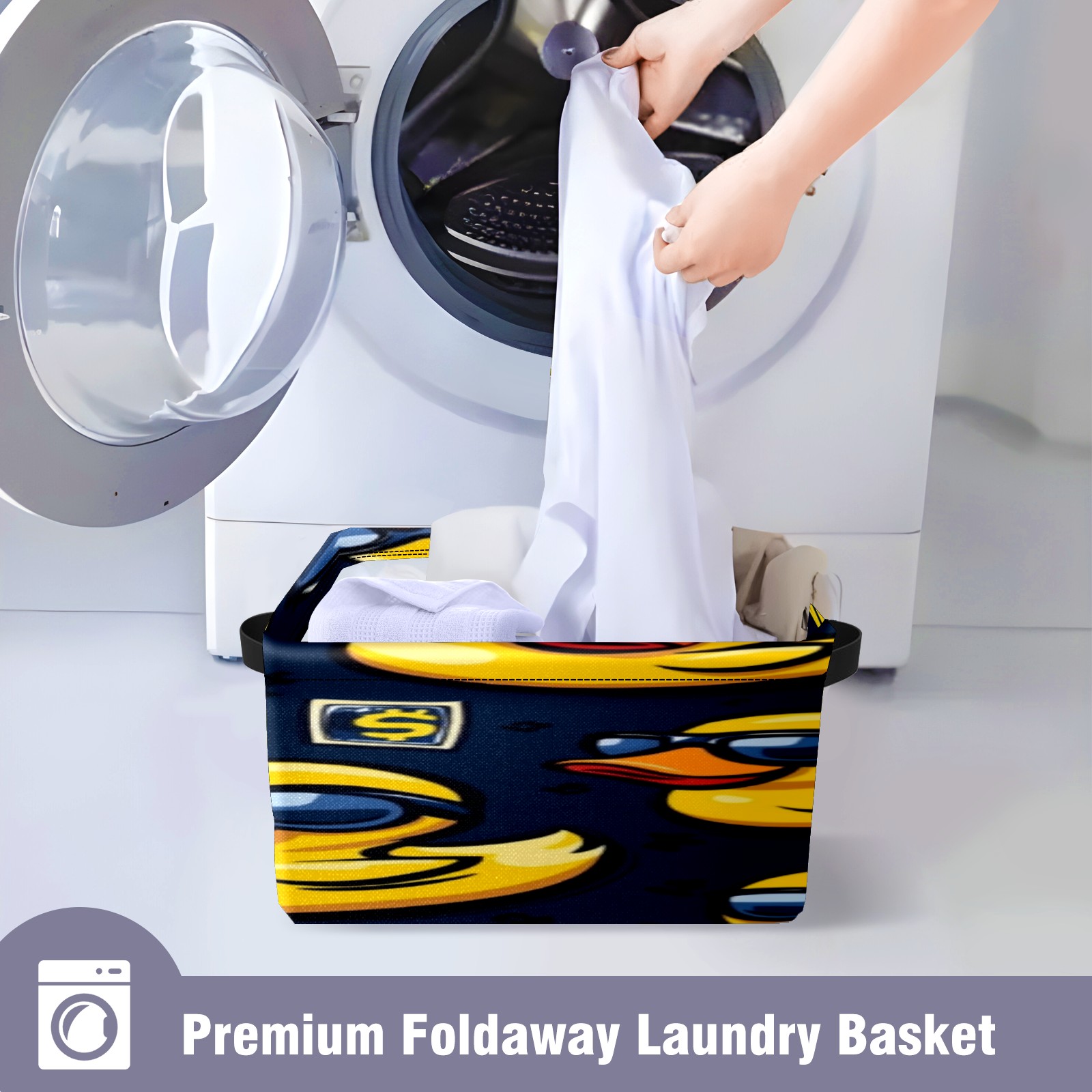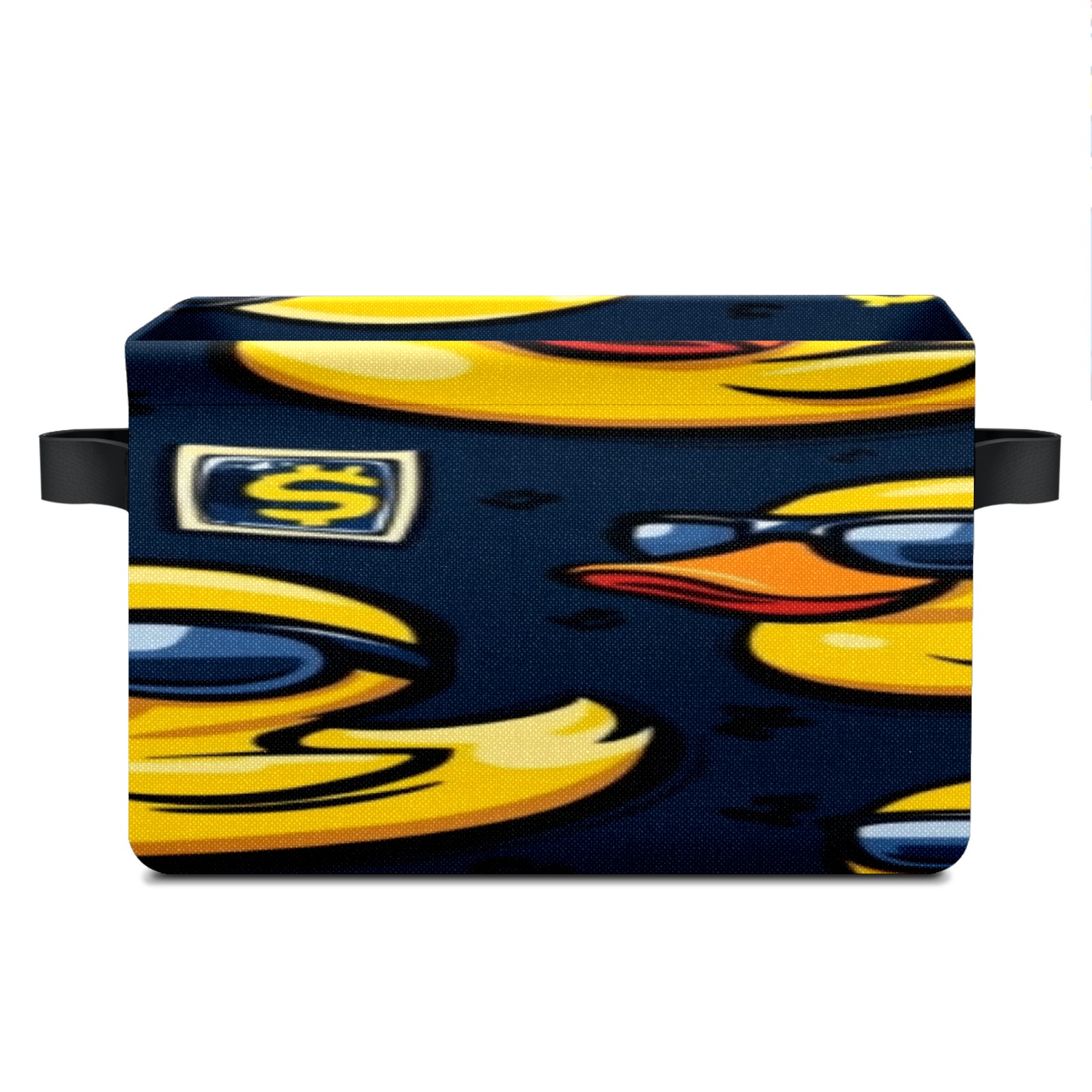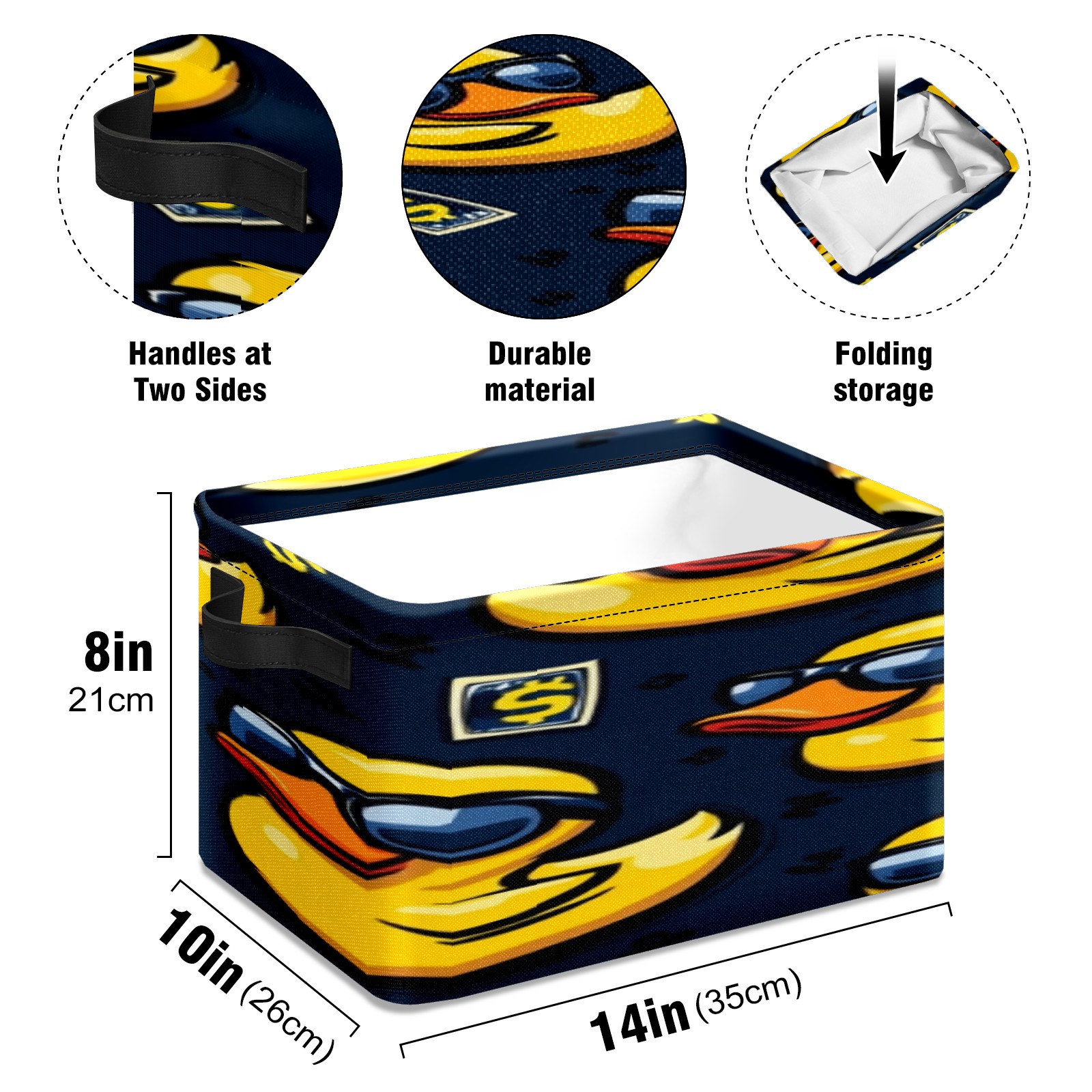 Foldable and Stackable Fabric Storage Basket for Home Organization with Handles, Decorative Closet Bins for Shelves, Laundry, and Toy Storage( Ducks Wearing Sunglasses)