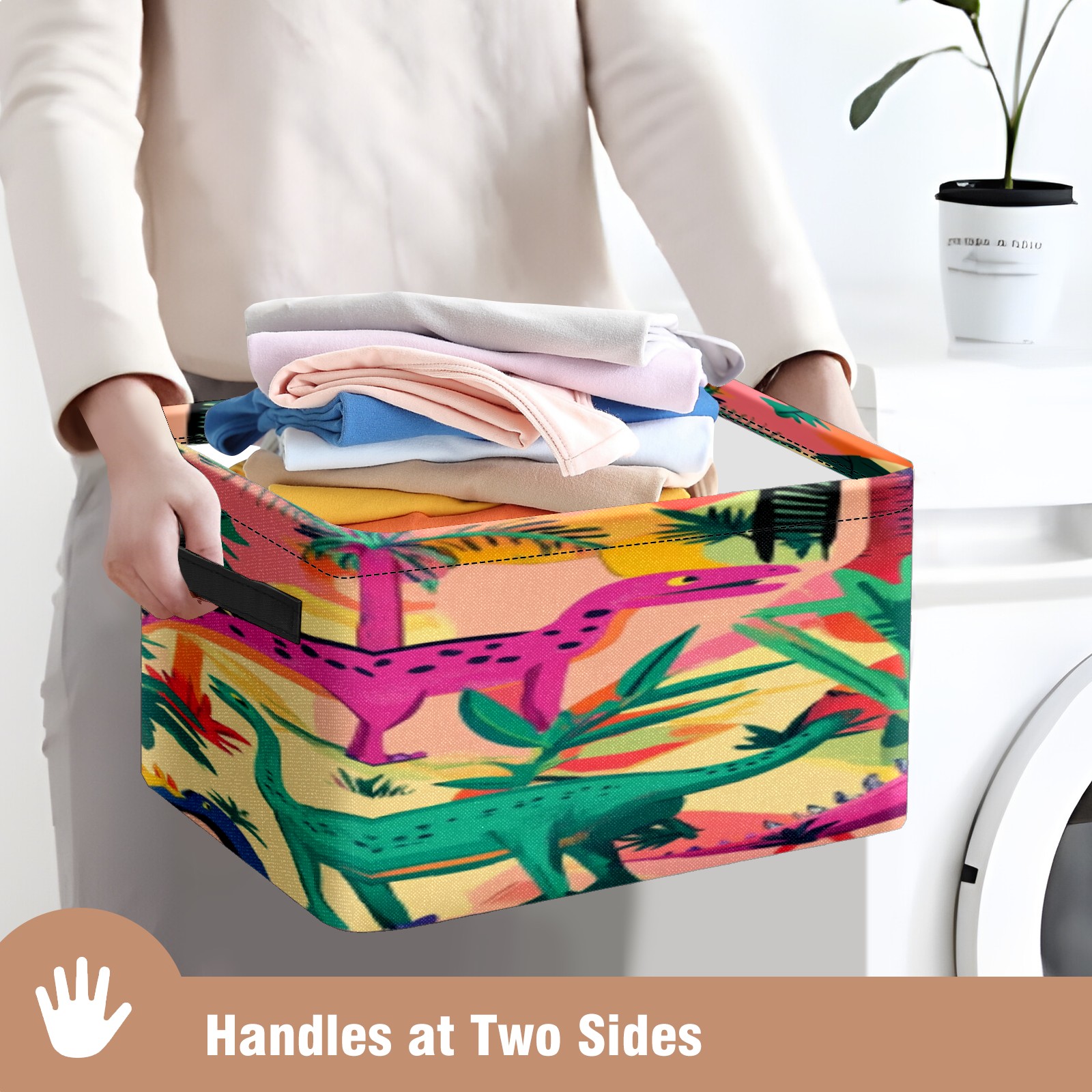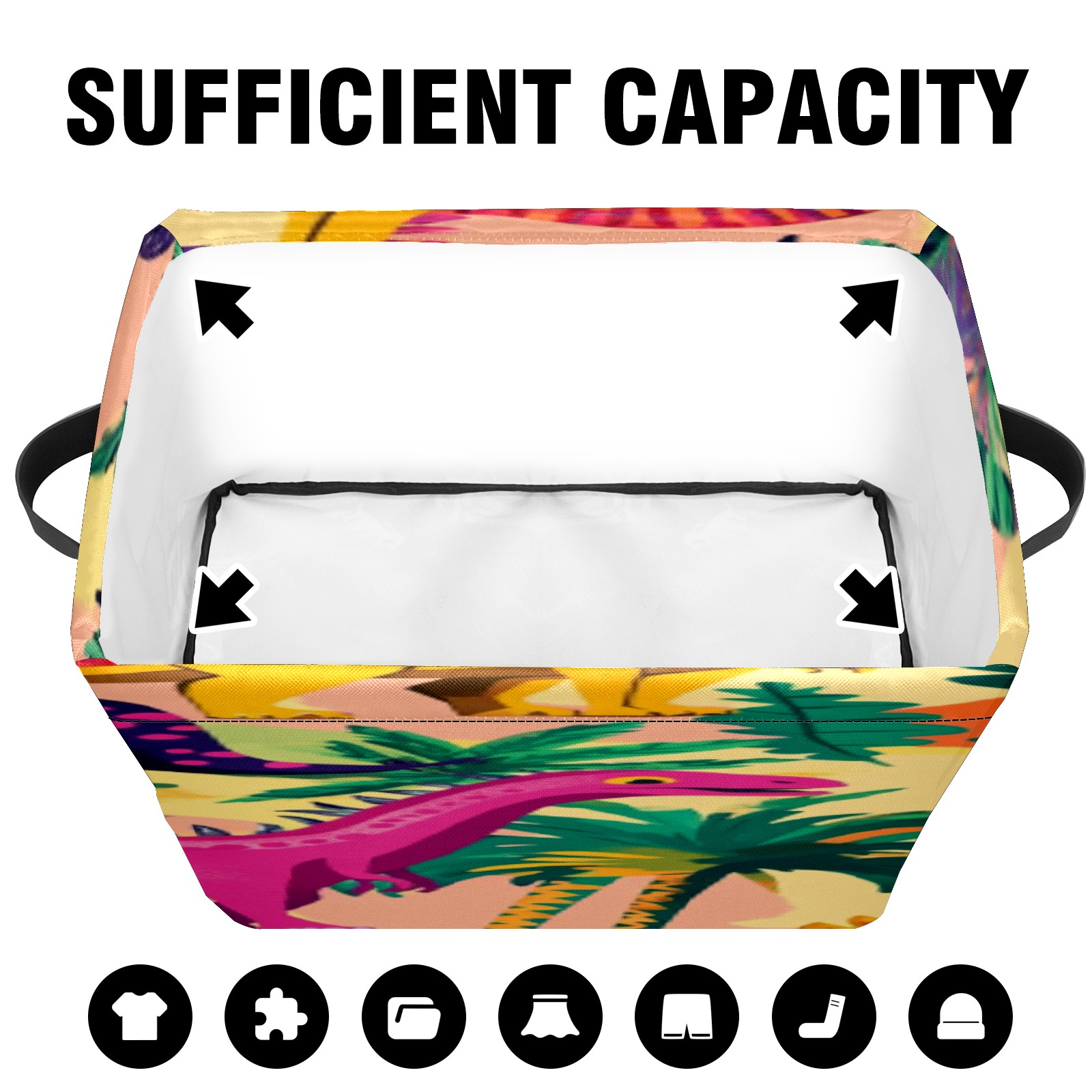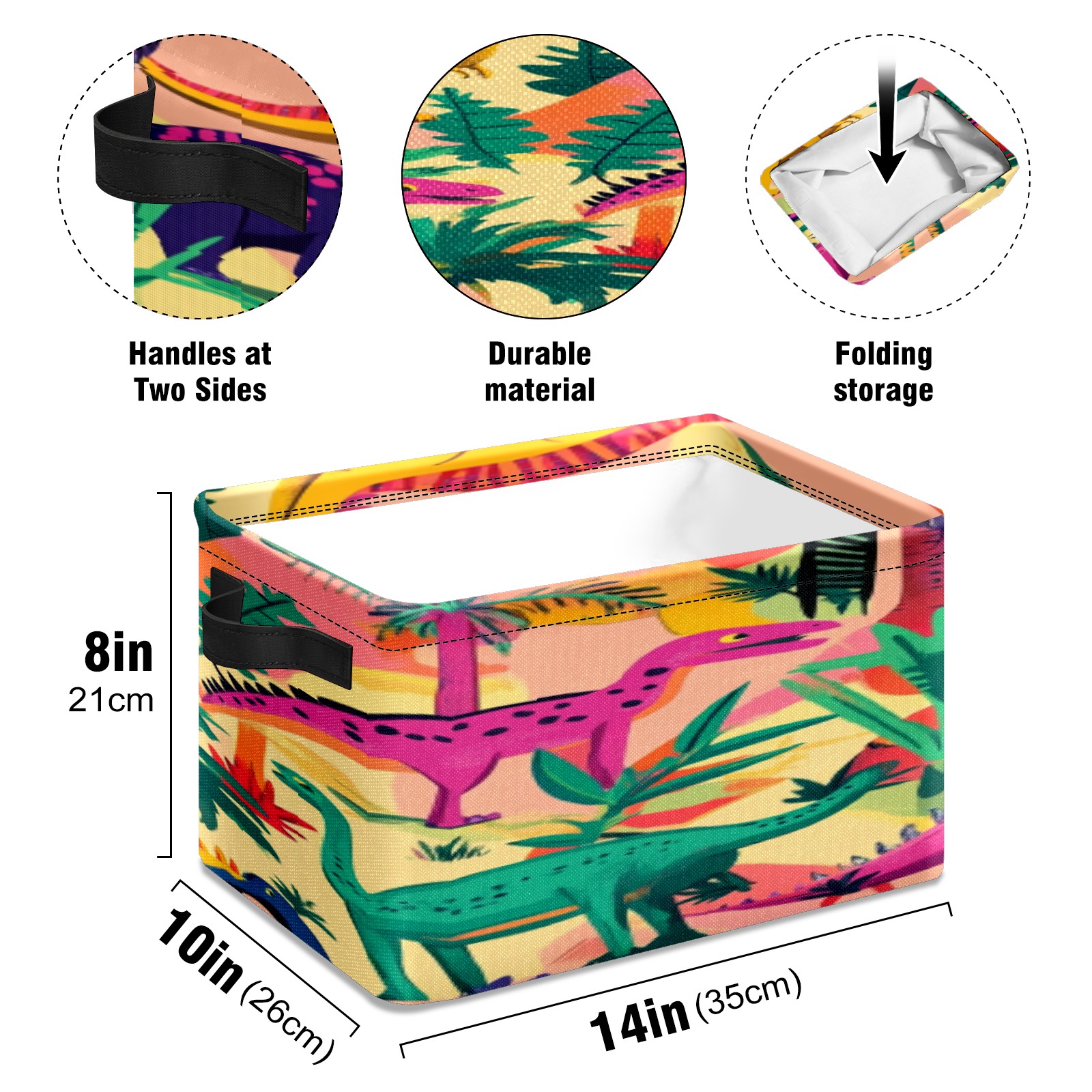 Foldable and Stackable Fabric Storage Basket for Home Organization with Handles, Decorative Closet Bins for Shelves, Laundry, and Toy Storage( Dinosaurs)