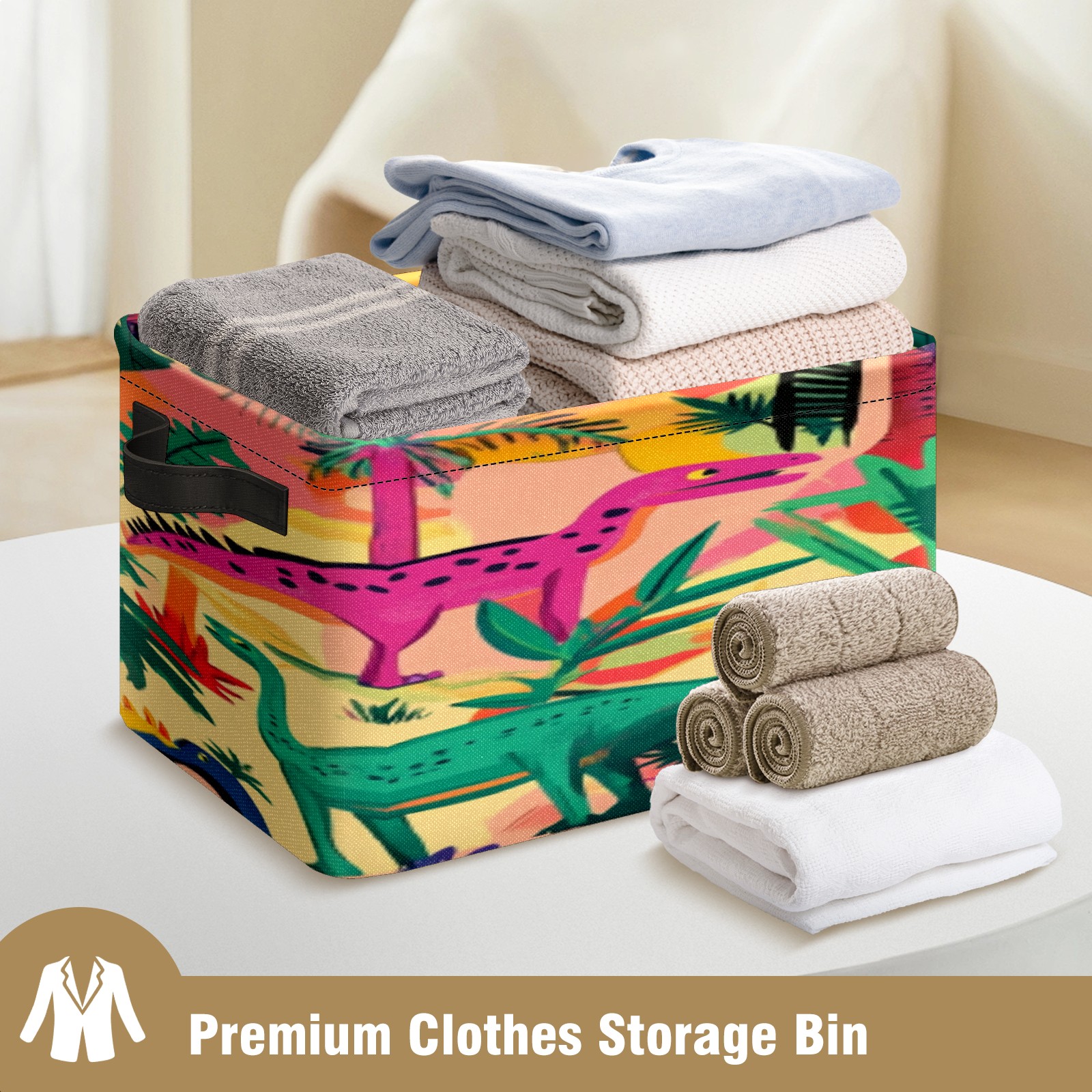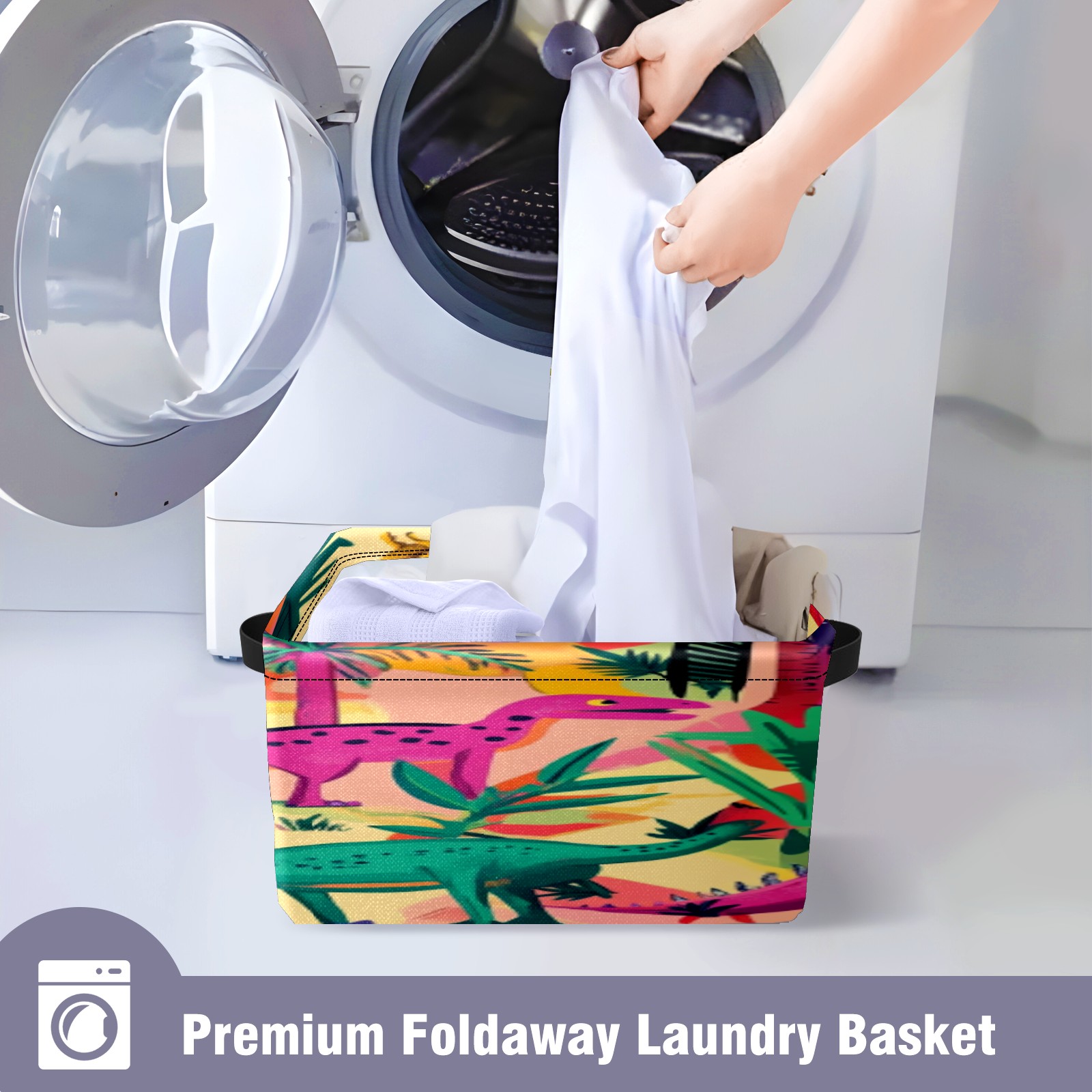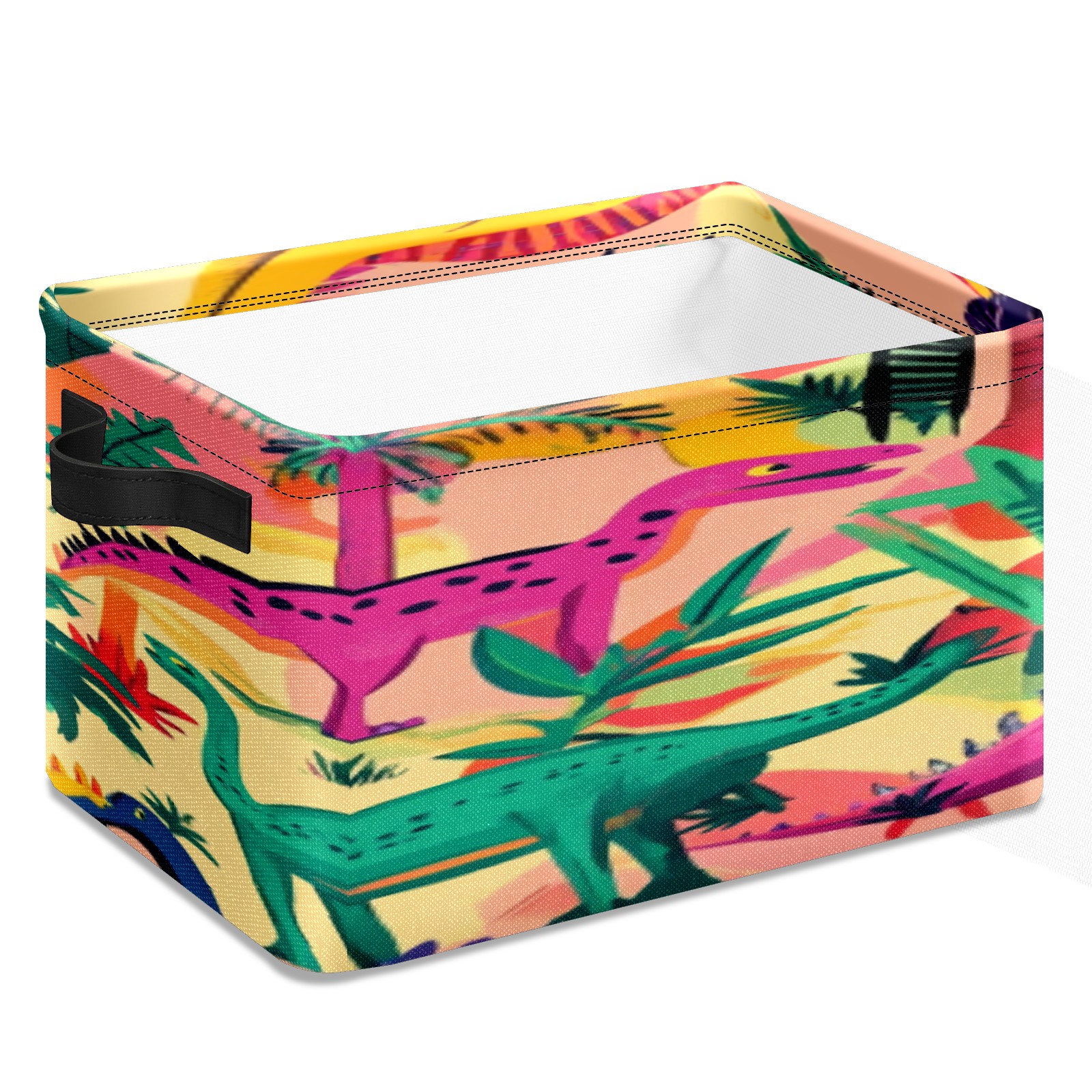 Foldable and Stackable Fabric Storage Basket for Home Organization with Handles, Decorative Closet Bins for Shelves, Laundry, and Toy Storage( Dinosaurs)