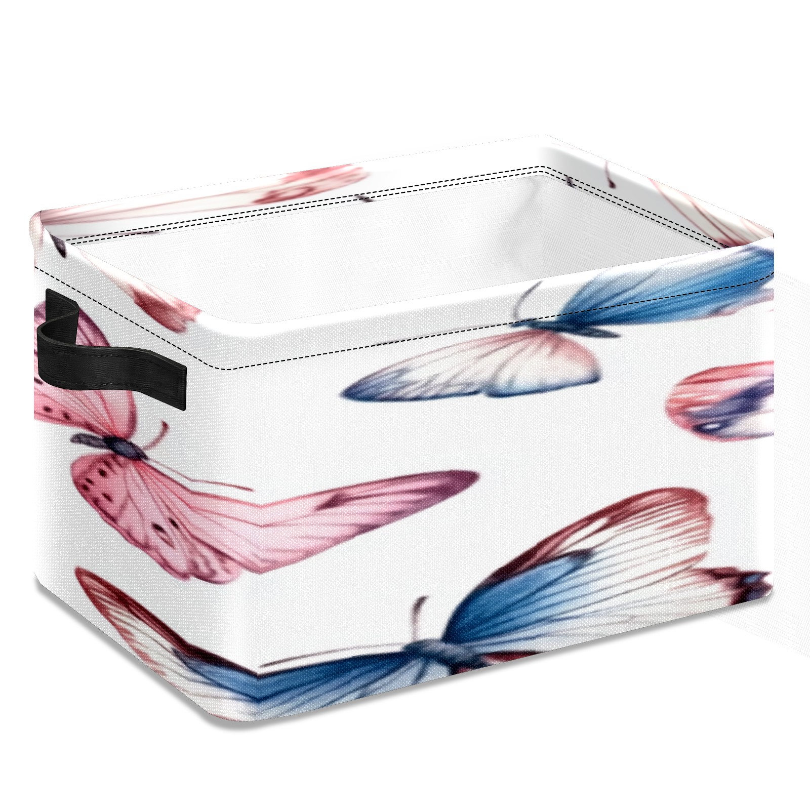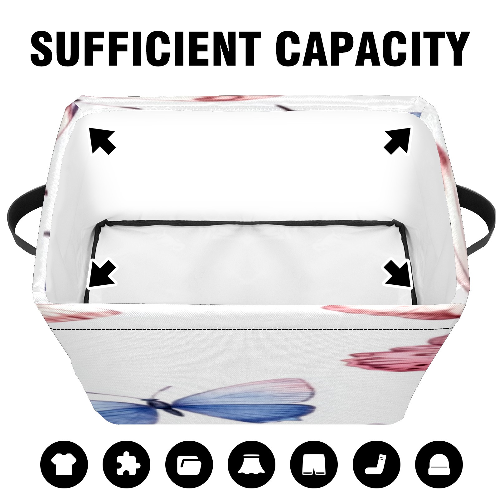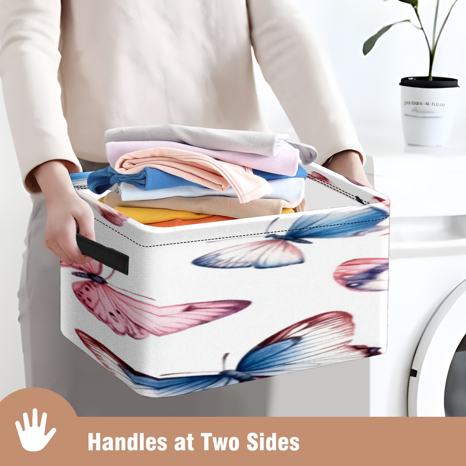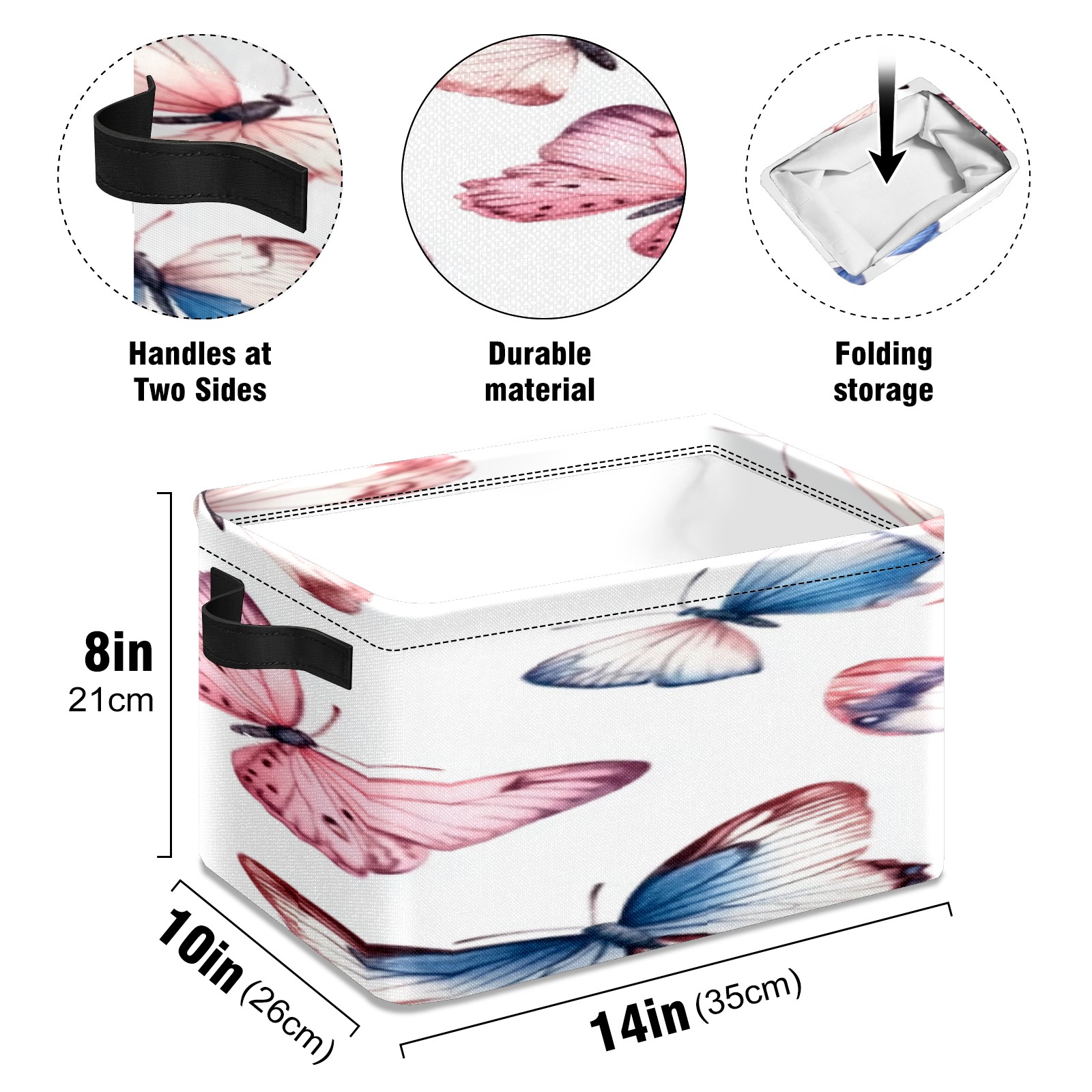Foldable and Stackable Fabric Storage Basket for Home Organization with Handles, Decorative Closet Bins for Shelves, Laundry, and Toy Storage( Pink Blue And White Butterflies)