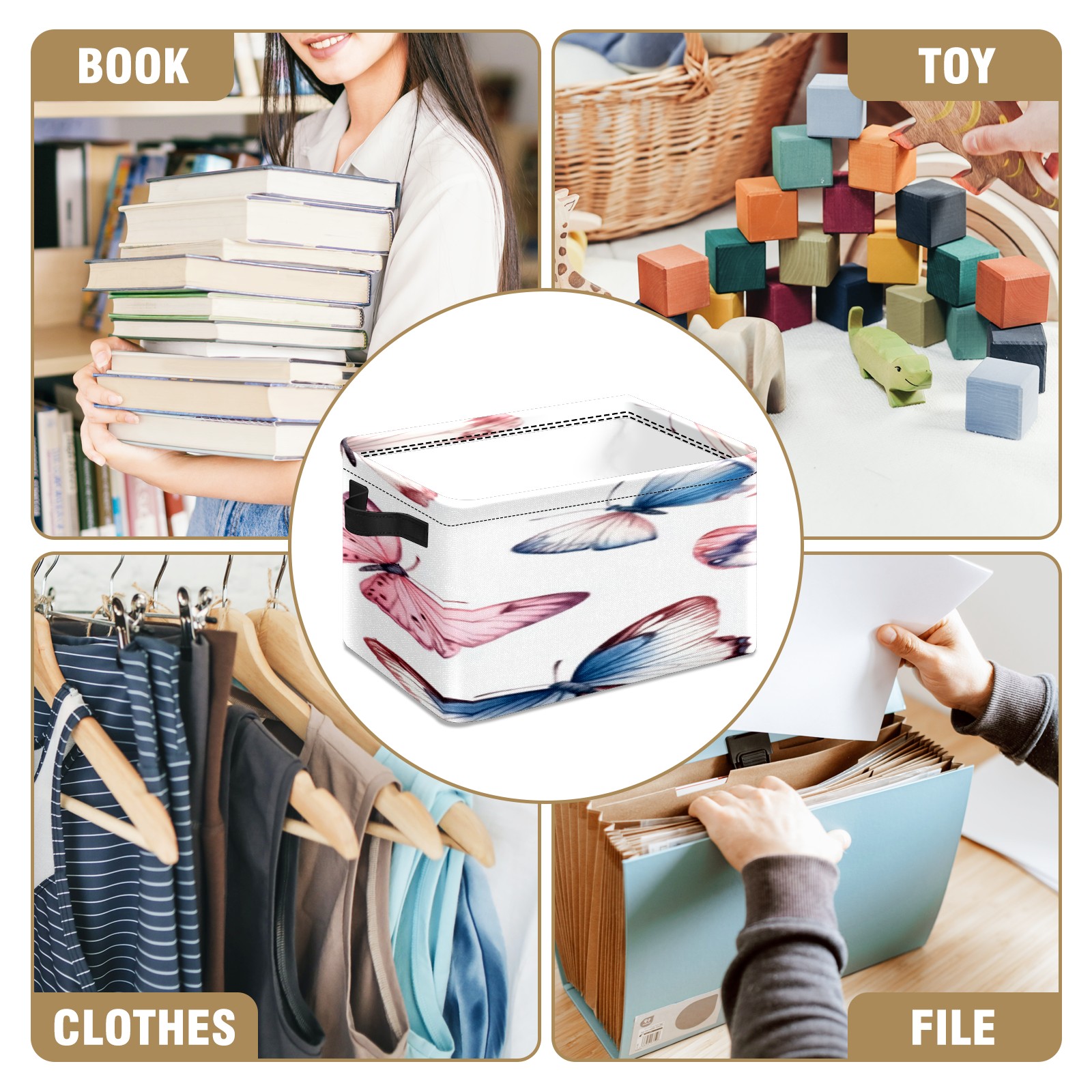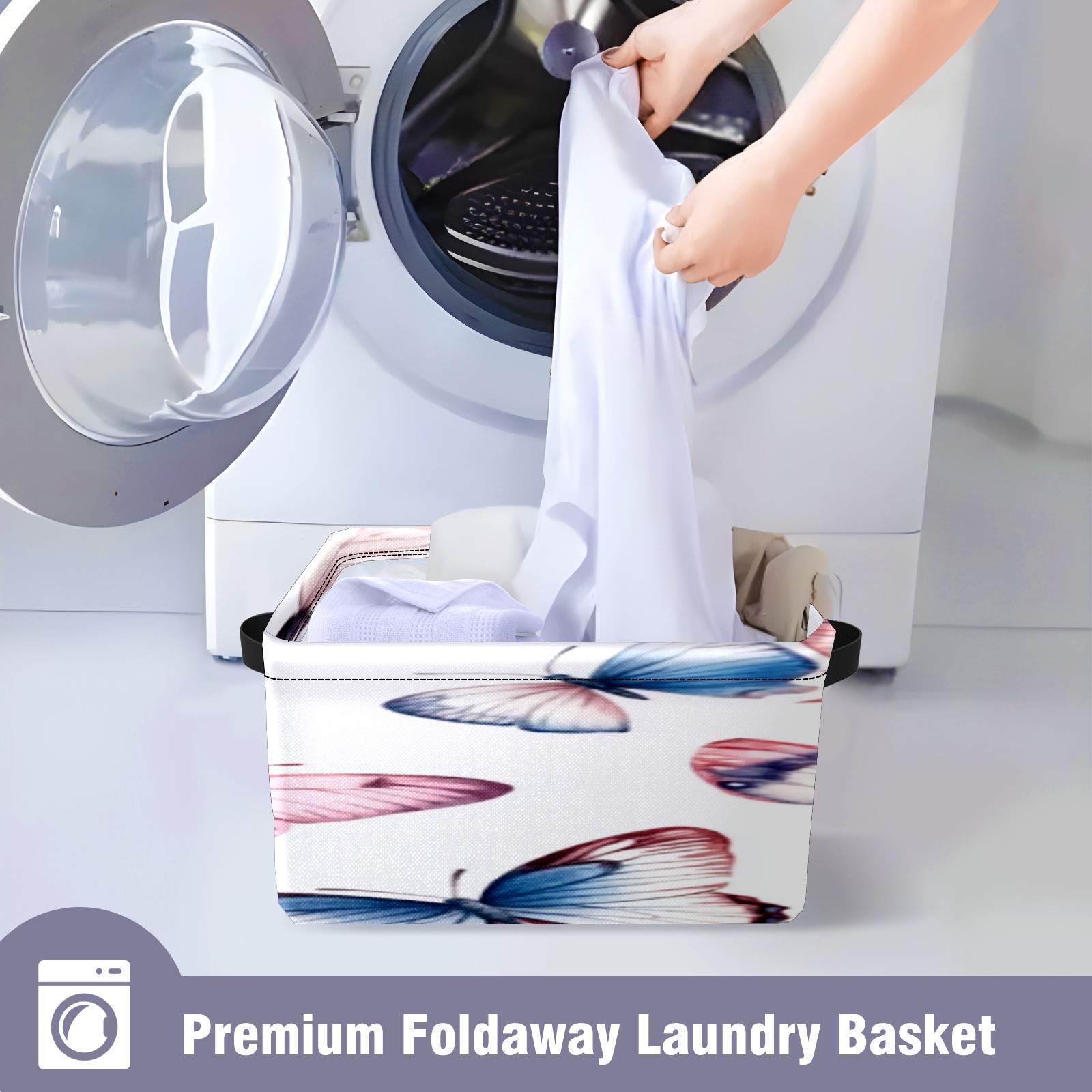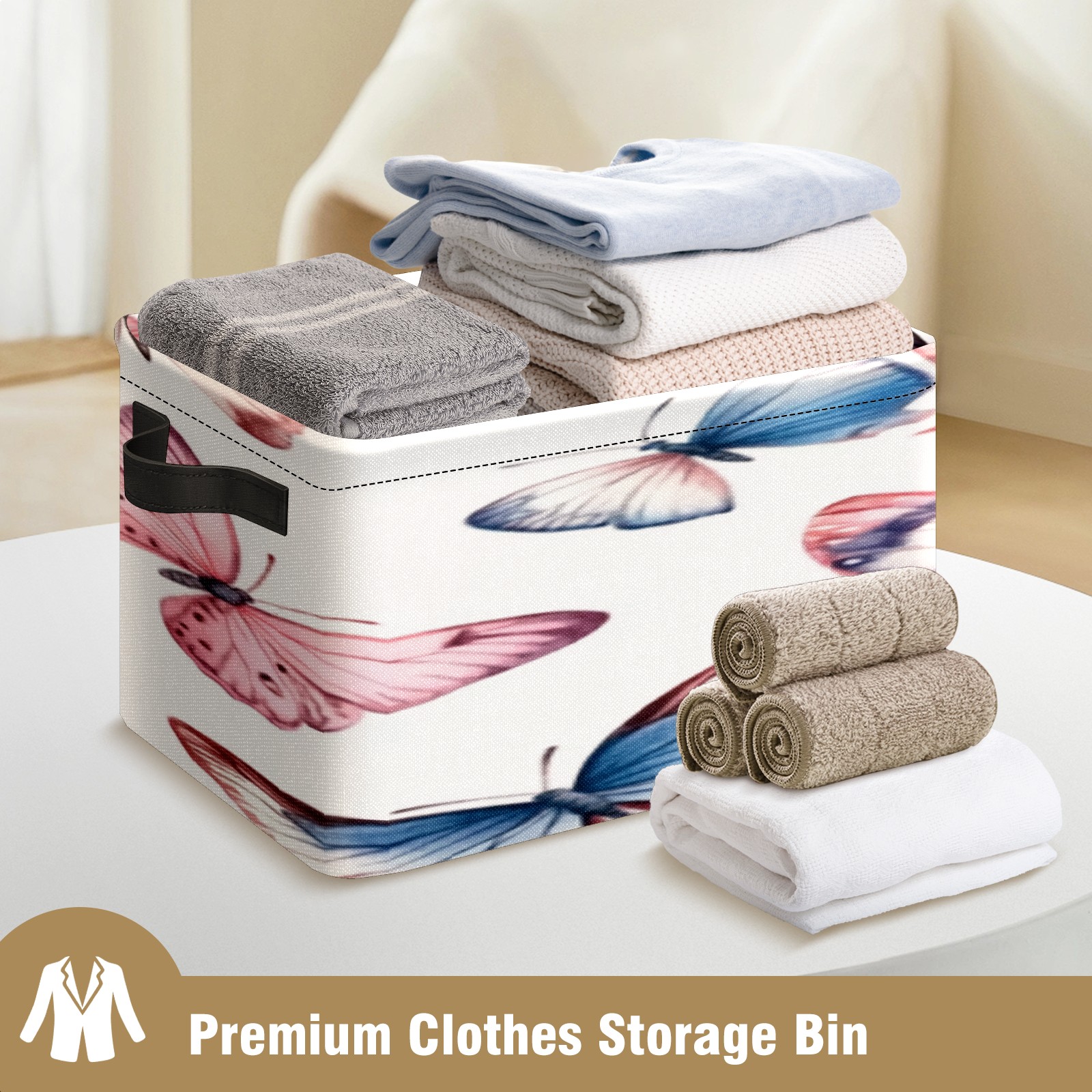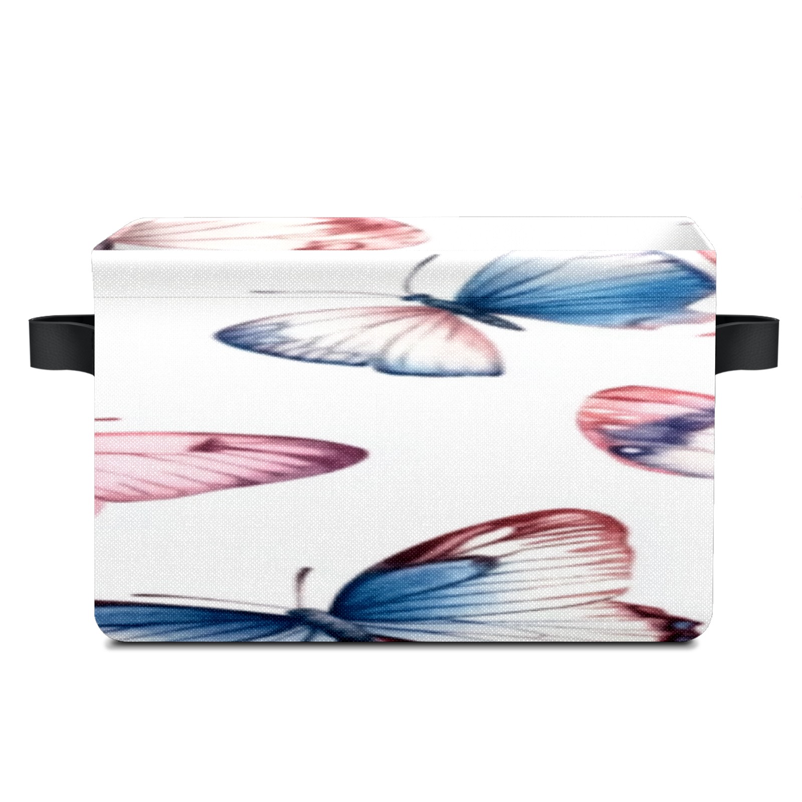 Foldable and Stackable Fabric Storage Basket for Home Organization with Handles, Decorative Closet Bins for Shelves, Laundry, and Toy Storage( Pink Blue And White Butterflies)