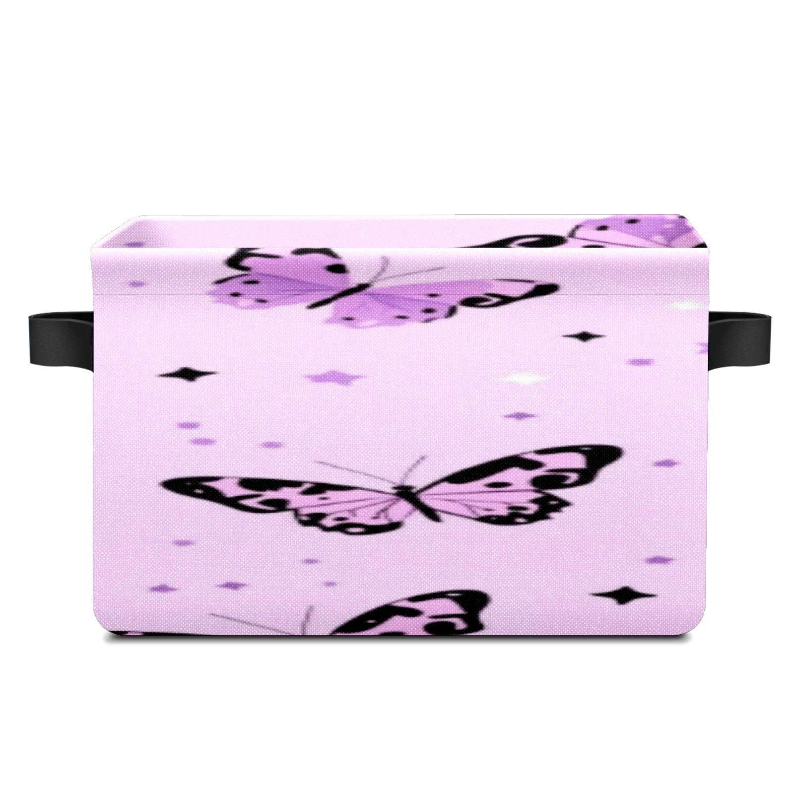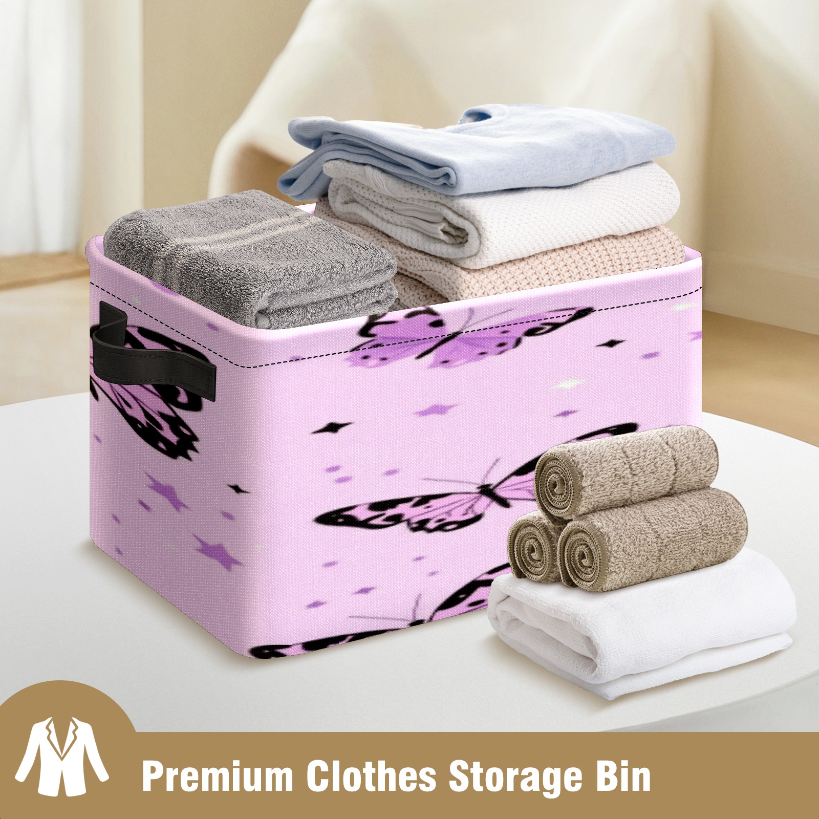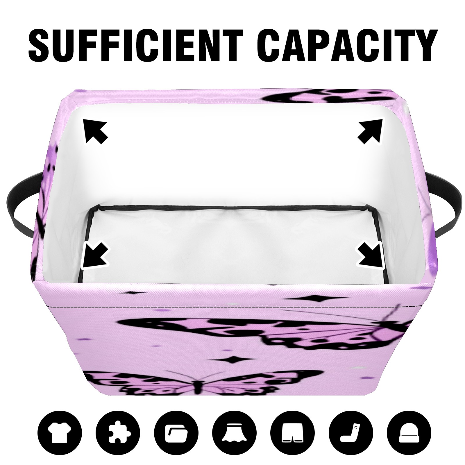 Foldable and Stackable Fabric Storage Basket for Home Organization with Handles, Decorative Closet Bins for Shelves, Laundry, and Toy Storage( Pink Leopard-print Butterflies)