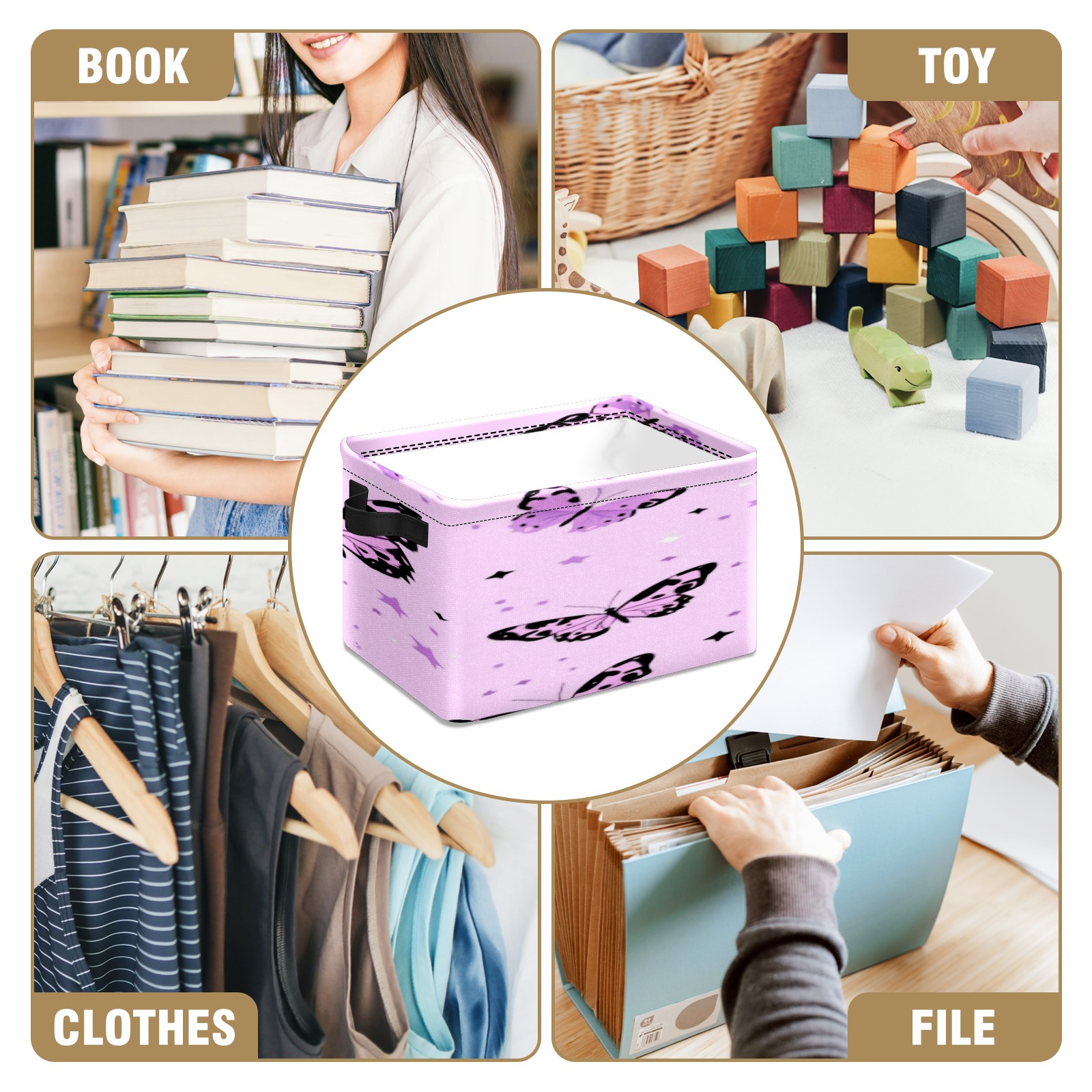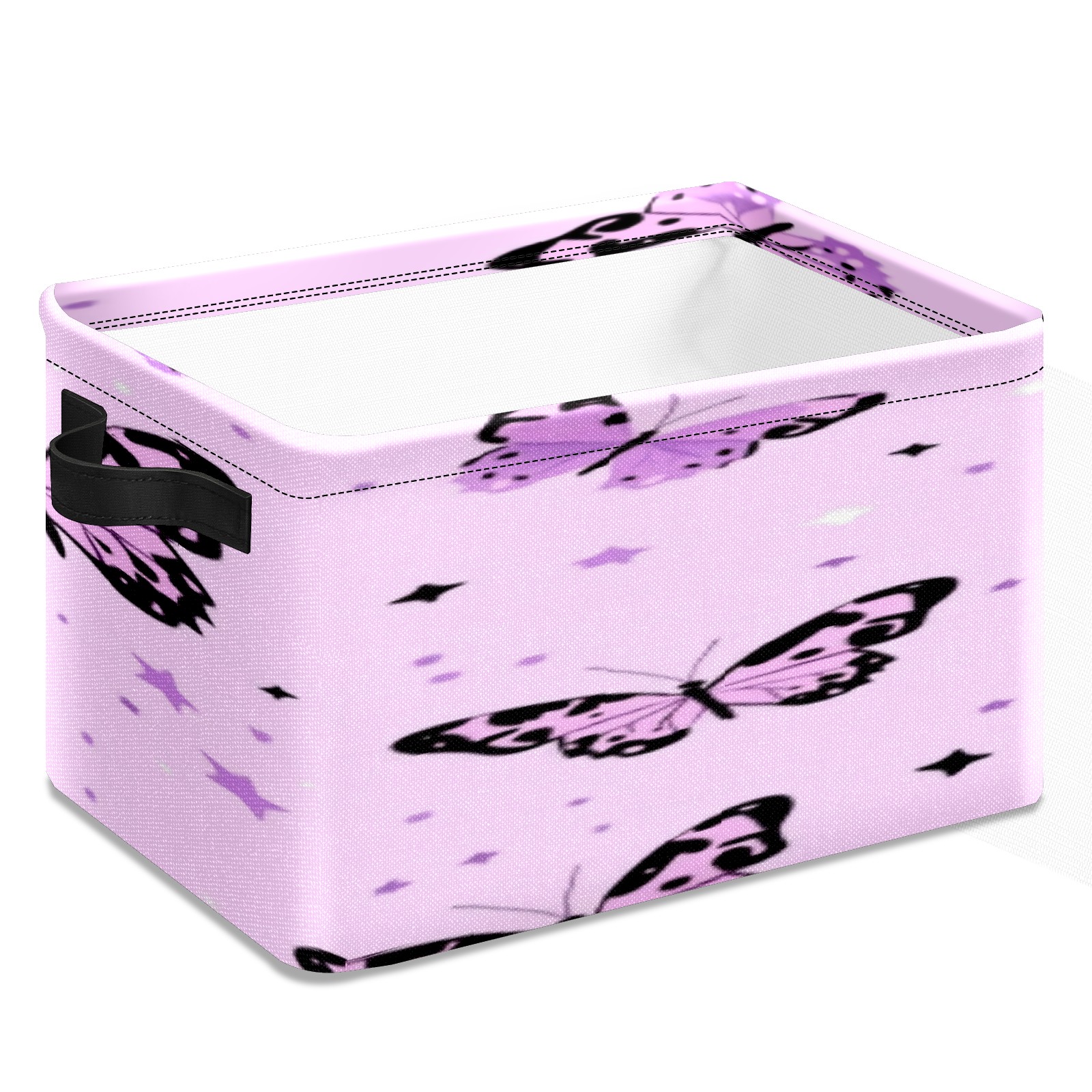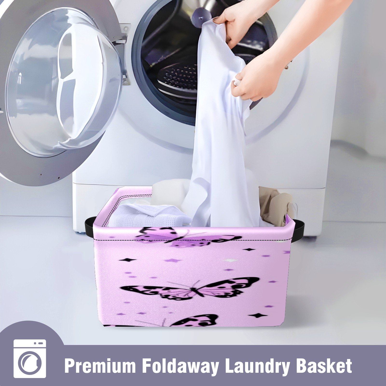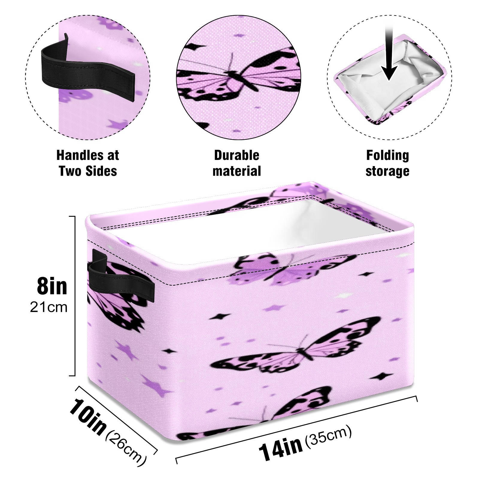 Foldable and Stackable Fabric Storage Basket for Home Organization with Handles, Decorative Closet Bins for Shelves, Laundry, and Toy Storage( Pink Leopard-print Butterflies)