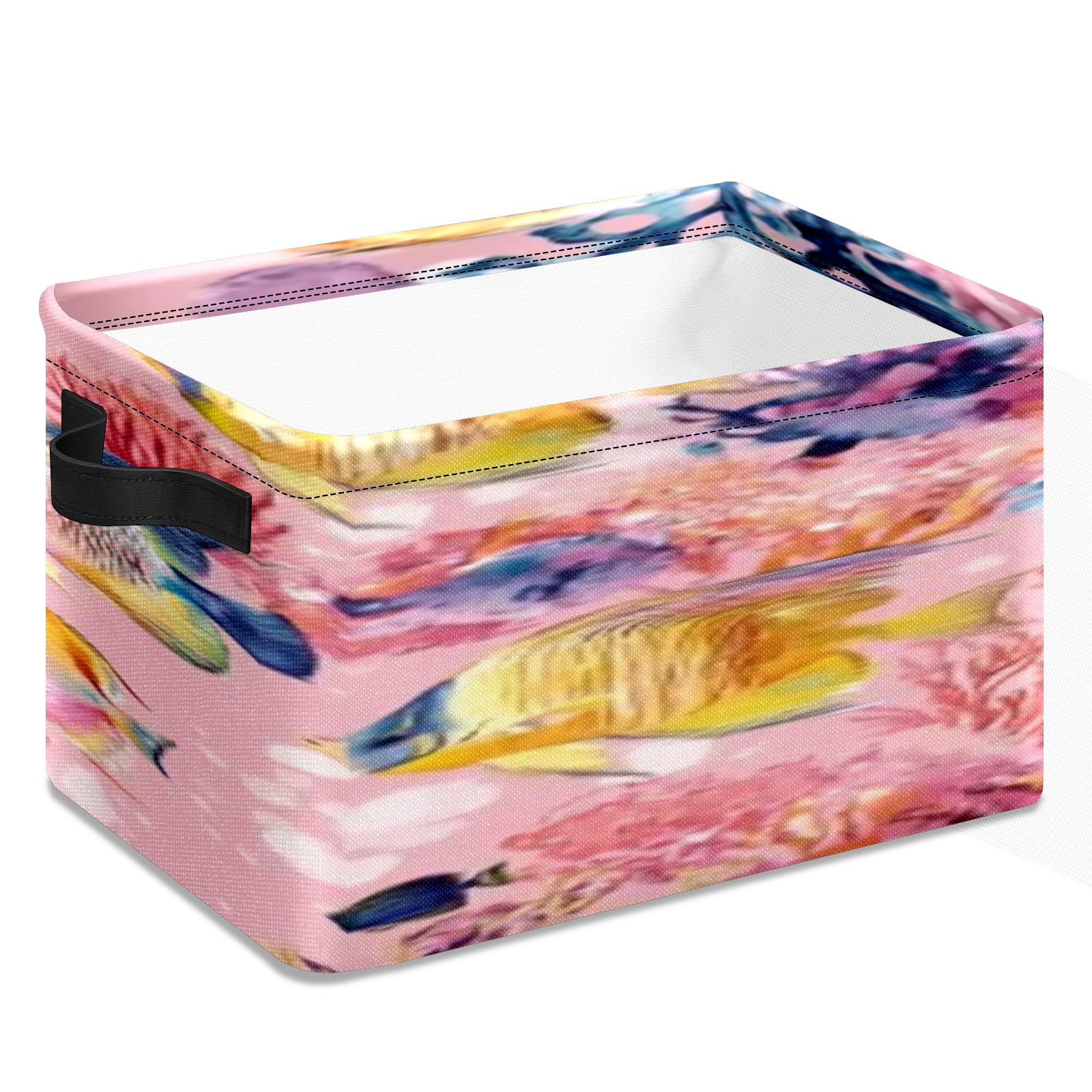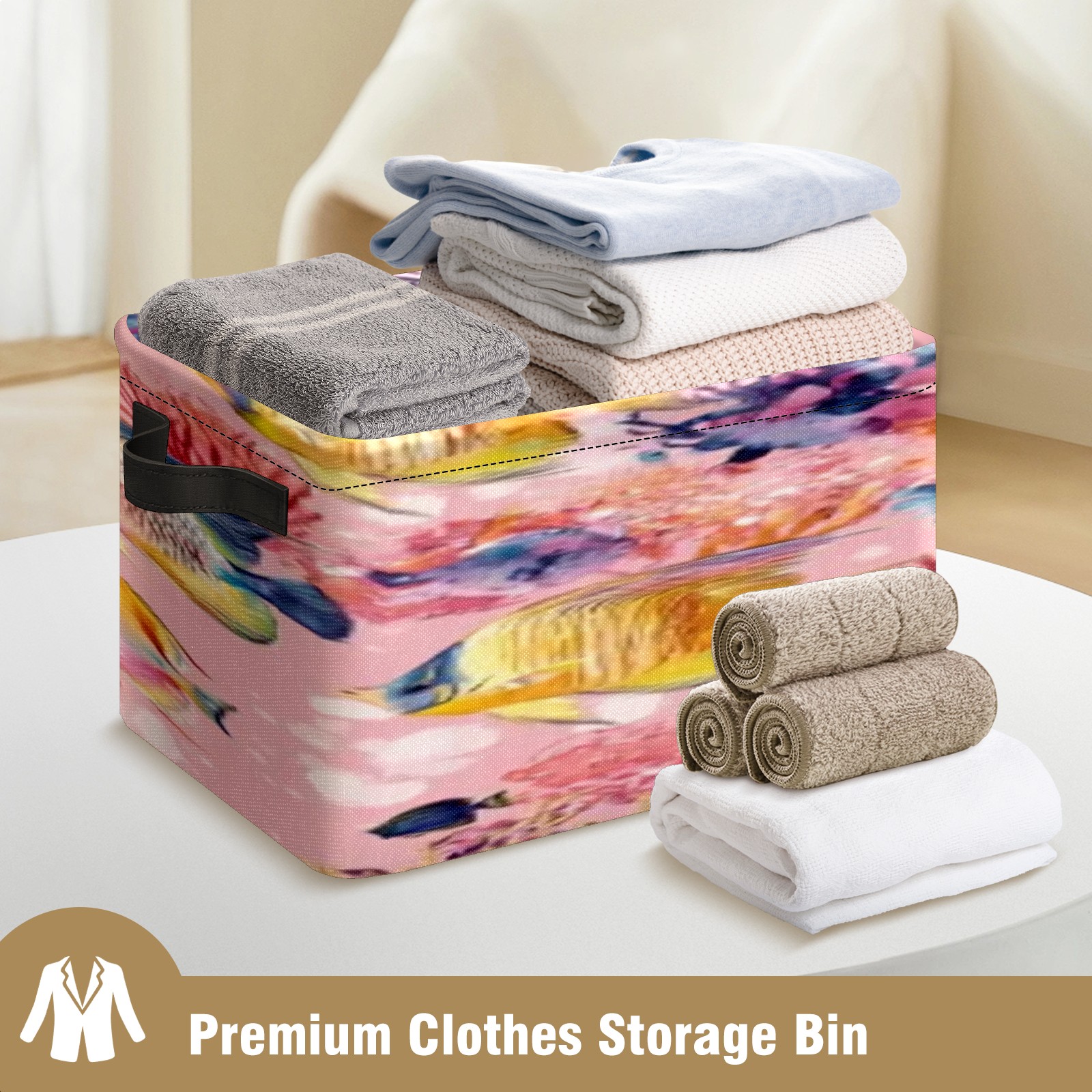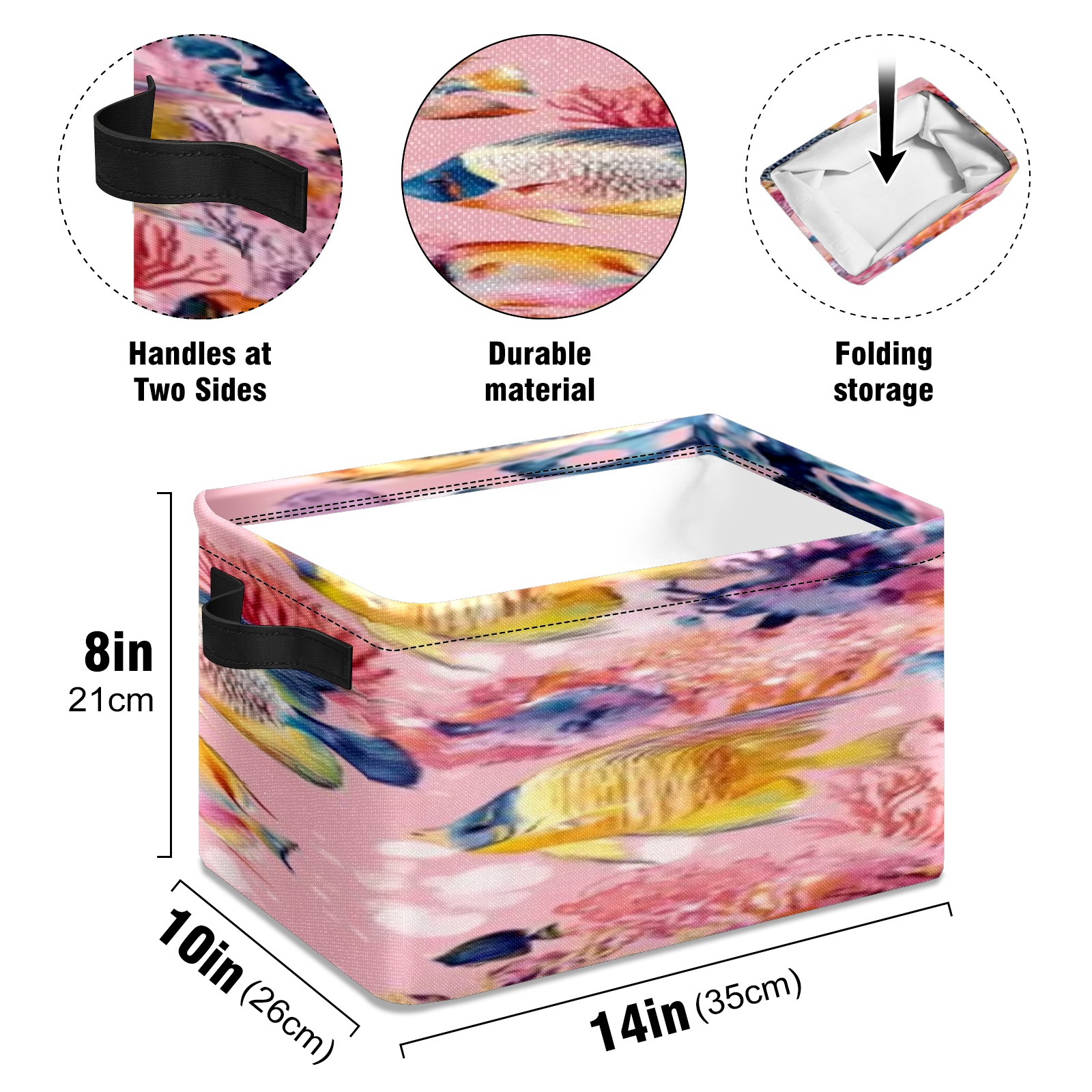 Foldable and Stackable Fabric Storage Basket for Home Organization with Handles, Decorative Closet Bins for Shelves, Laundry, and Toy Storage( Tropical Fish)