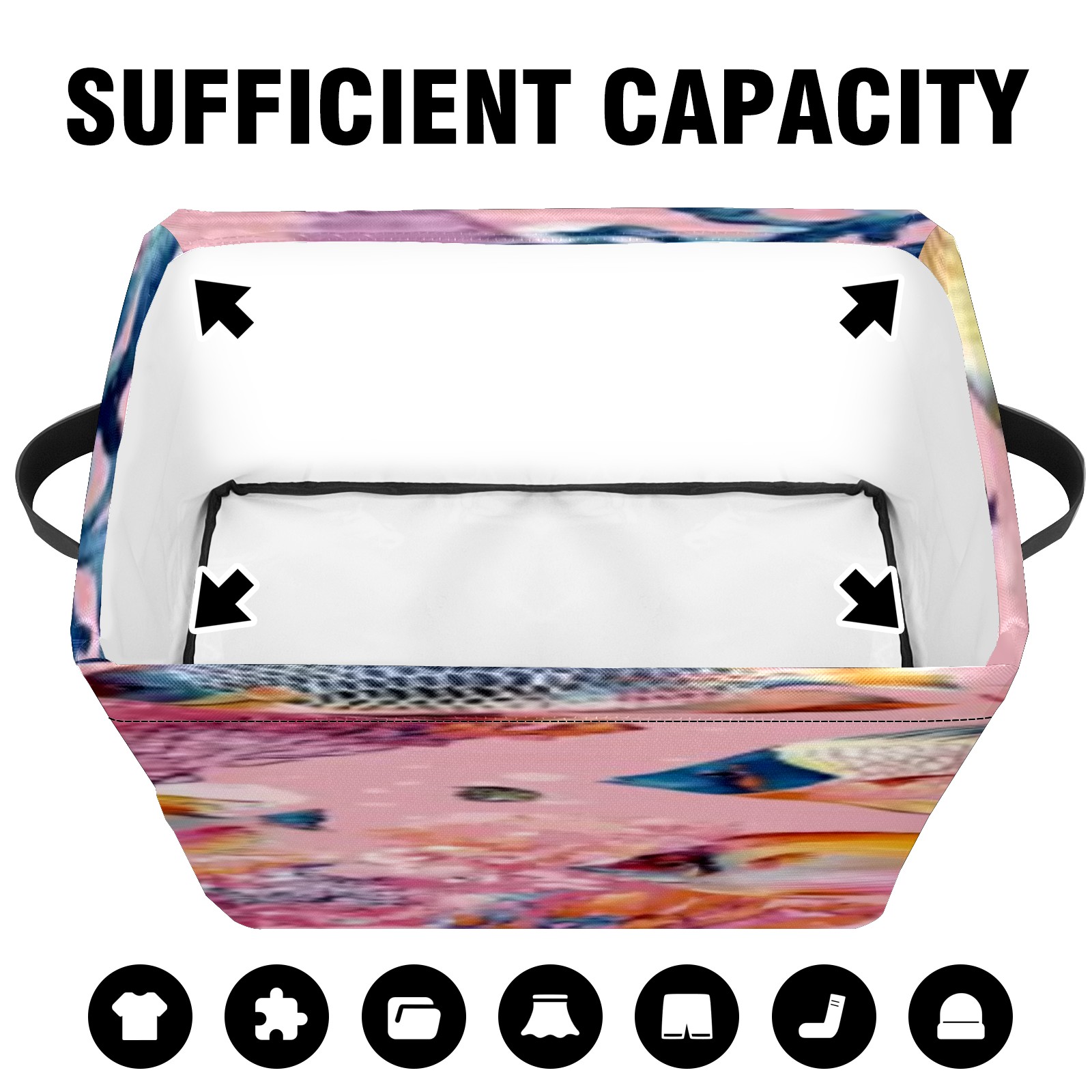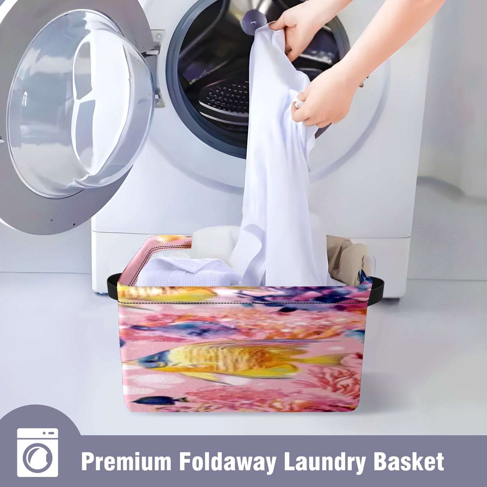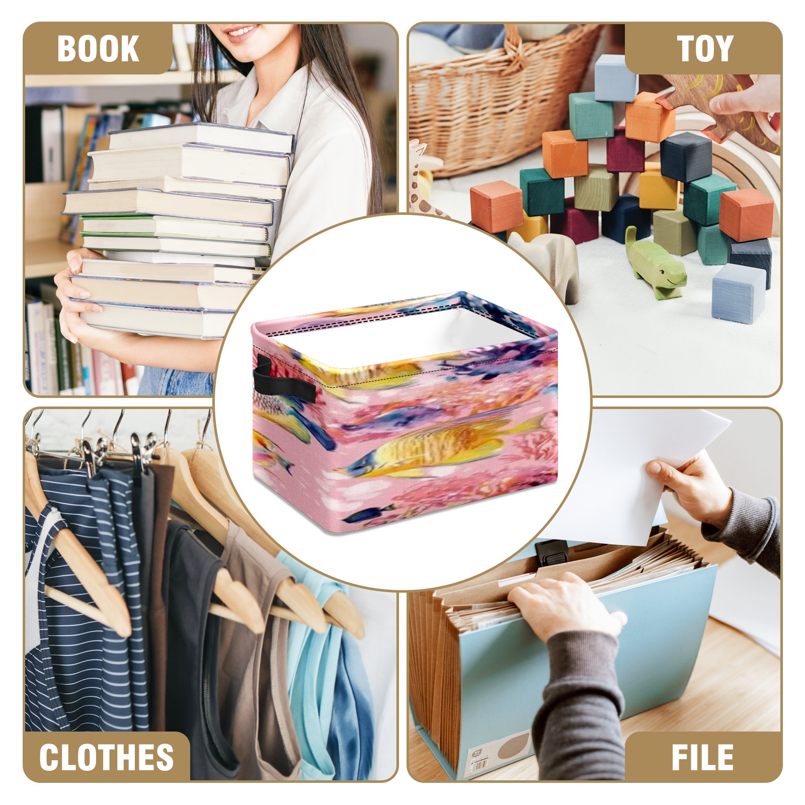 Foldable and Stackable Fabric Storage Basket for Home Organization with Handles, Decorative Closet Bins for Shelves, Laundry, and Toy Storage( Tropical Fish)
