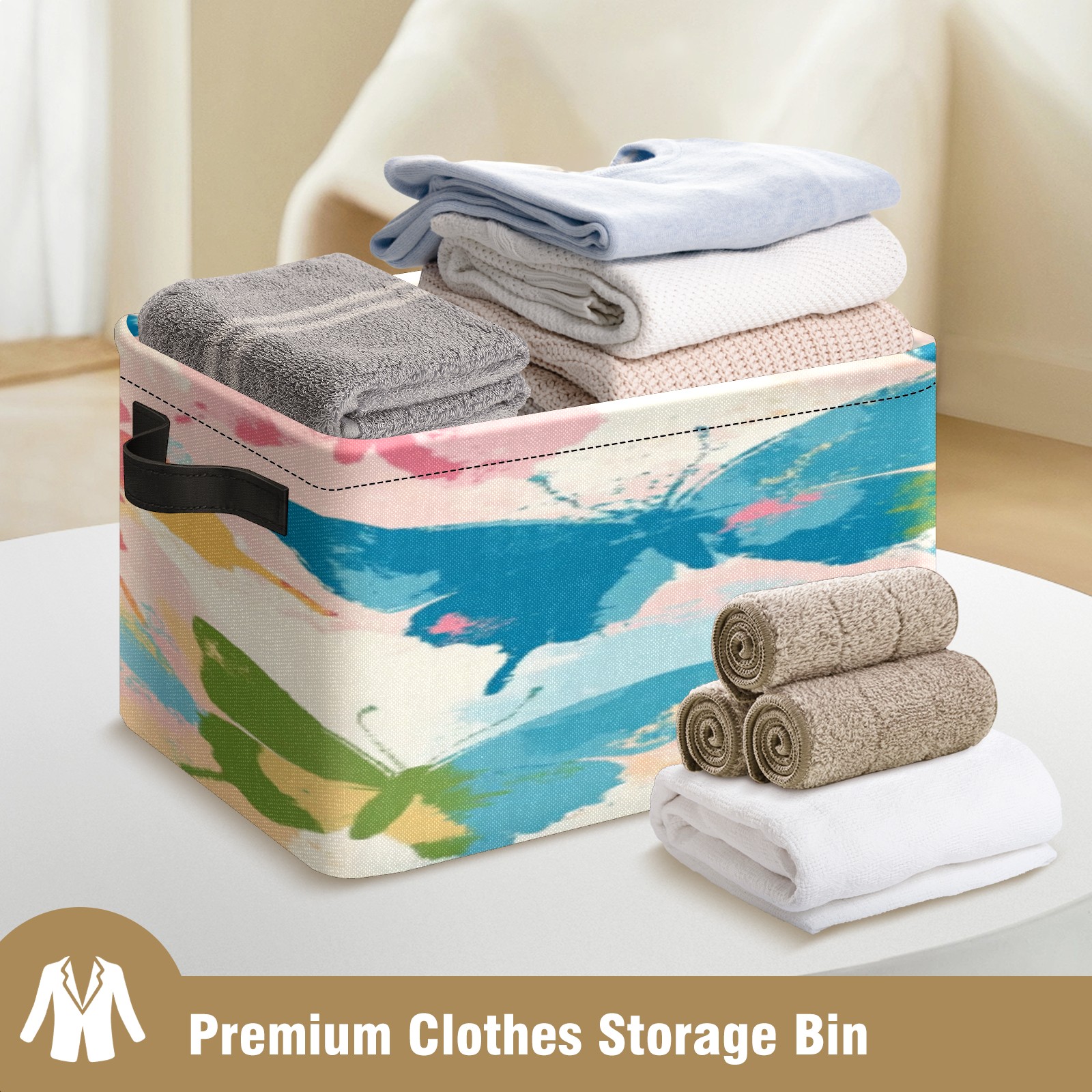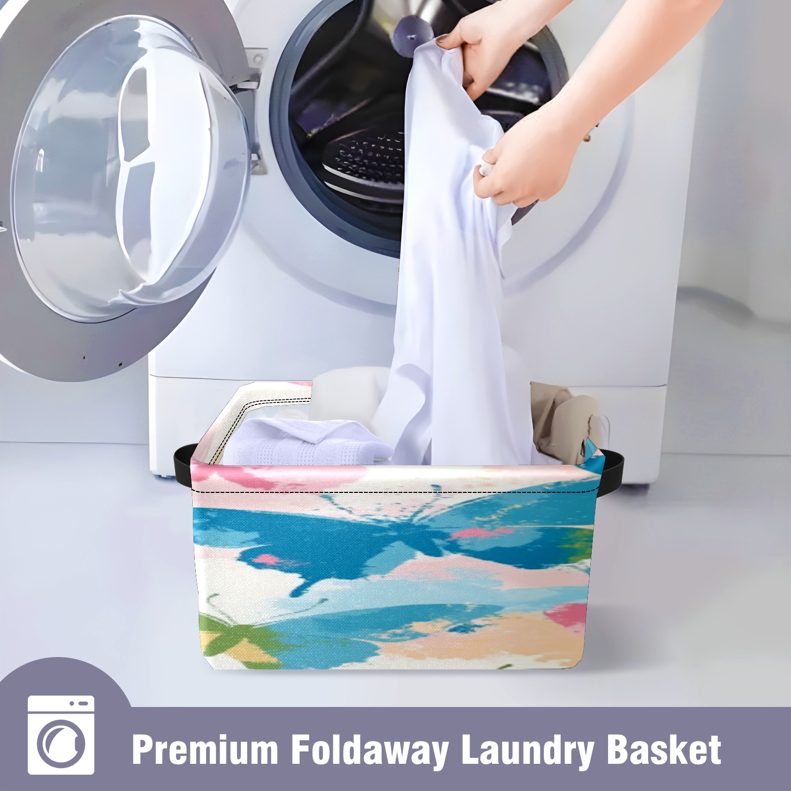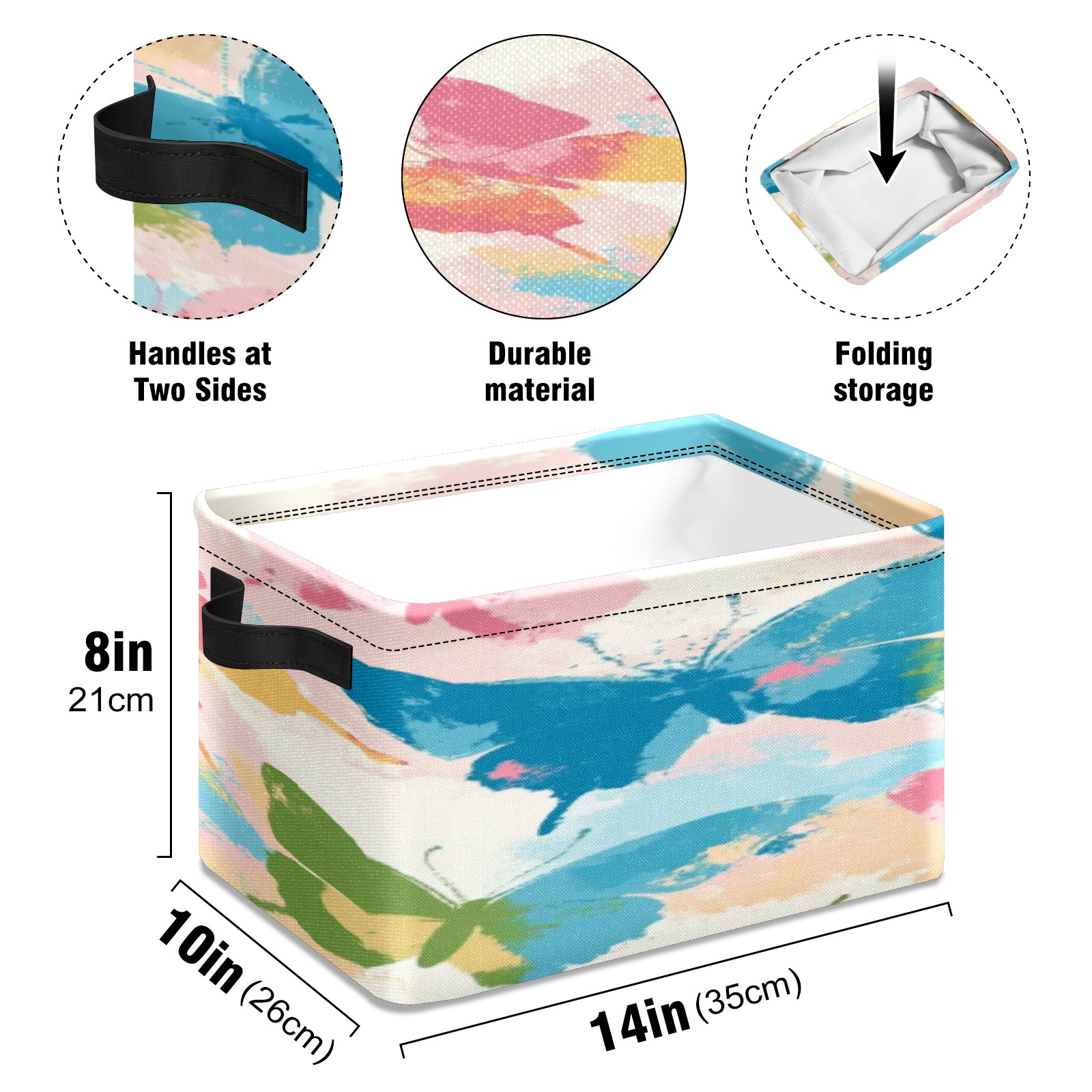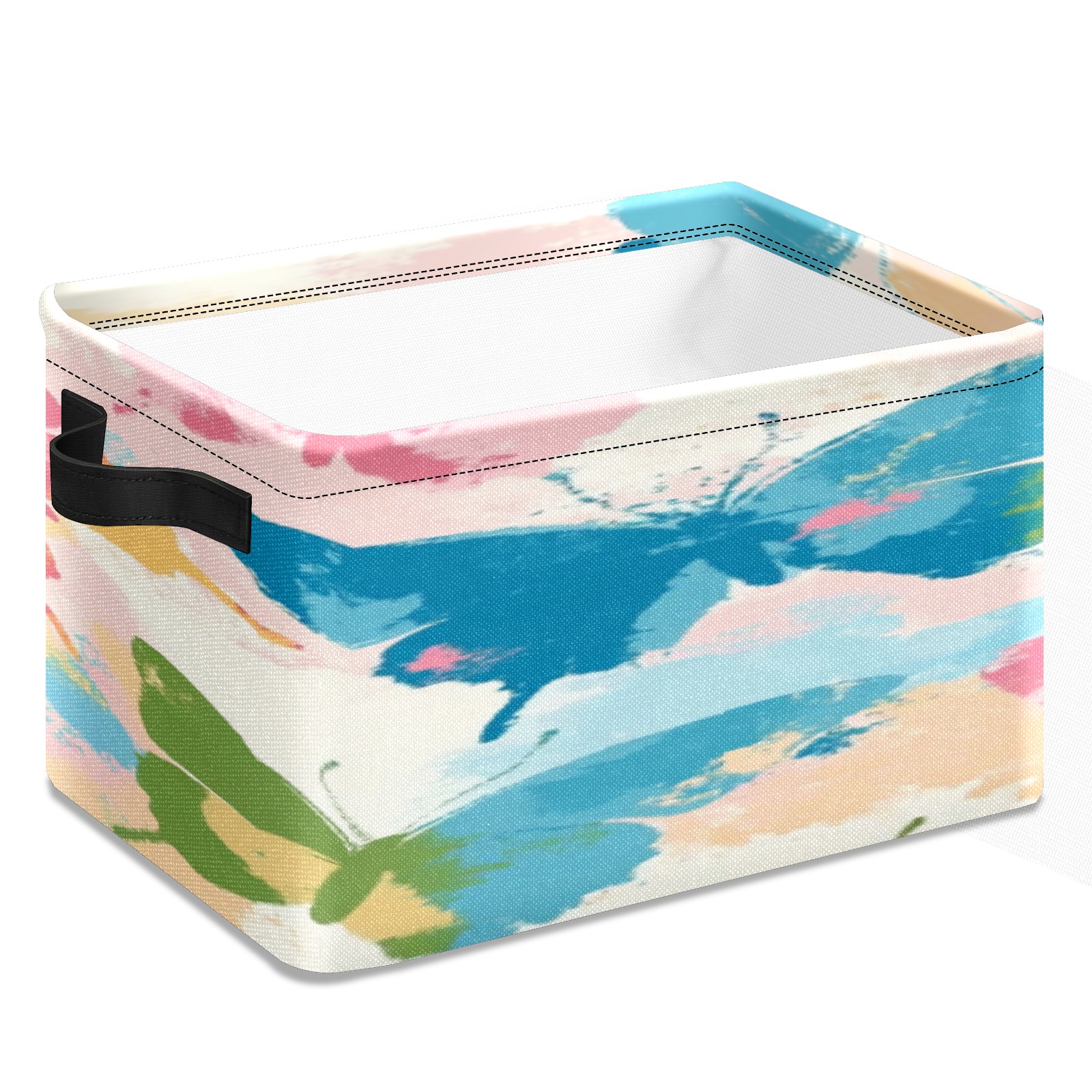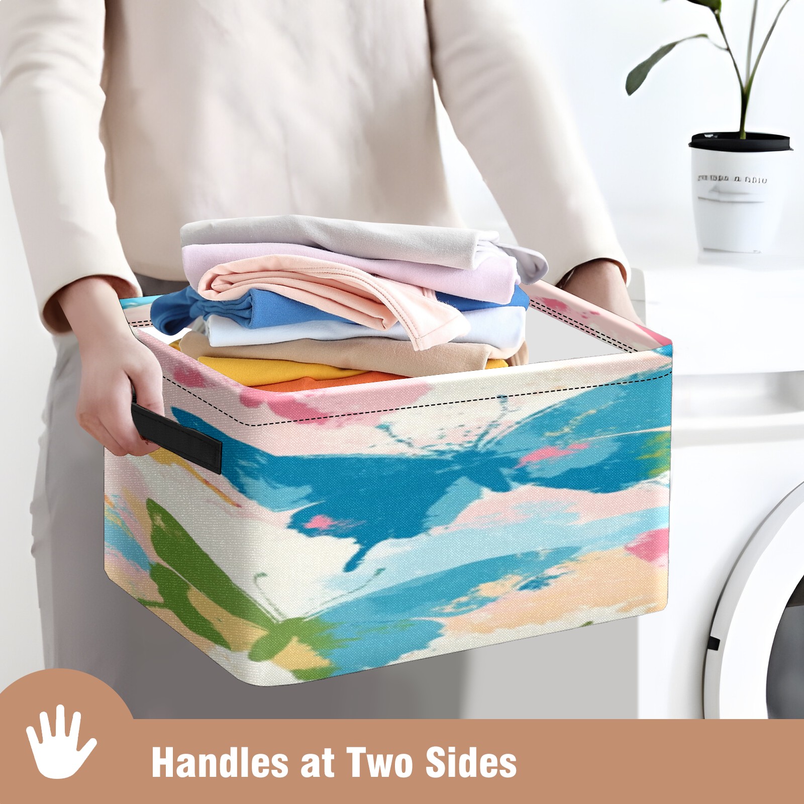 Foldable and Stackable Fabric Storage Basket for Home Organization with Handles, Decorative Closet Bins for Shelves, Laundry, and Toy Storage( Butterflies In Pastel Colors)