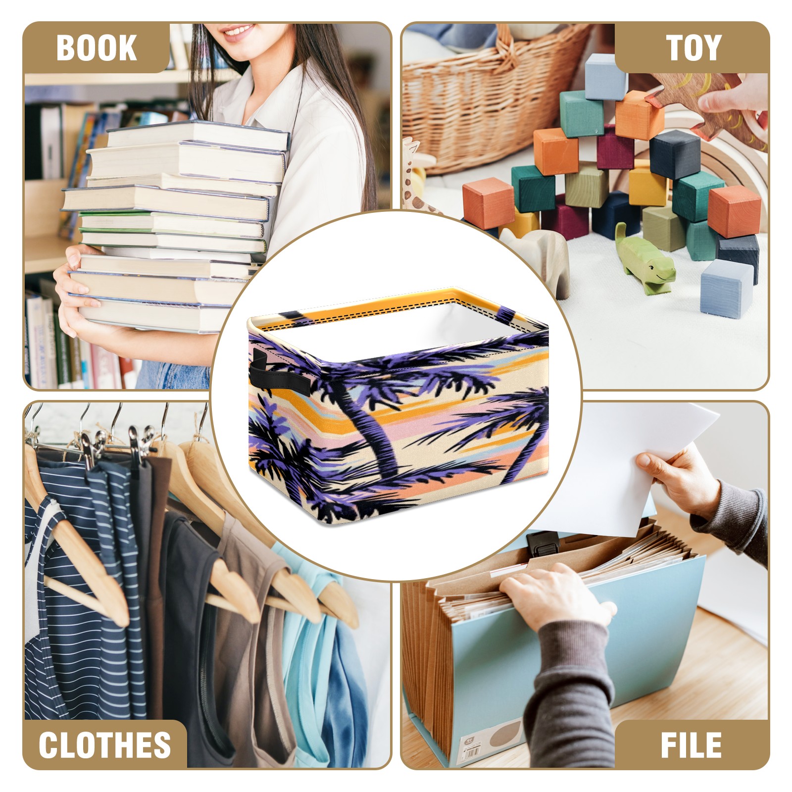Foldable and Stackable Fabric Storage Basket for Home Organization with Handles, Decorative Closet Bins for Shelves, Laundry, and Toy Storage( Retro Pattern)