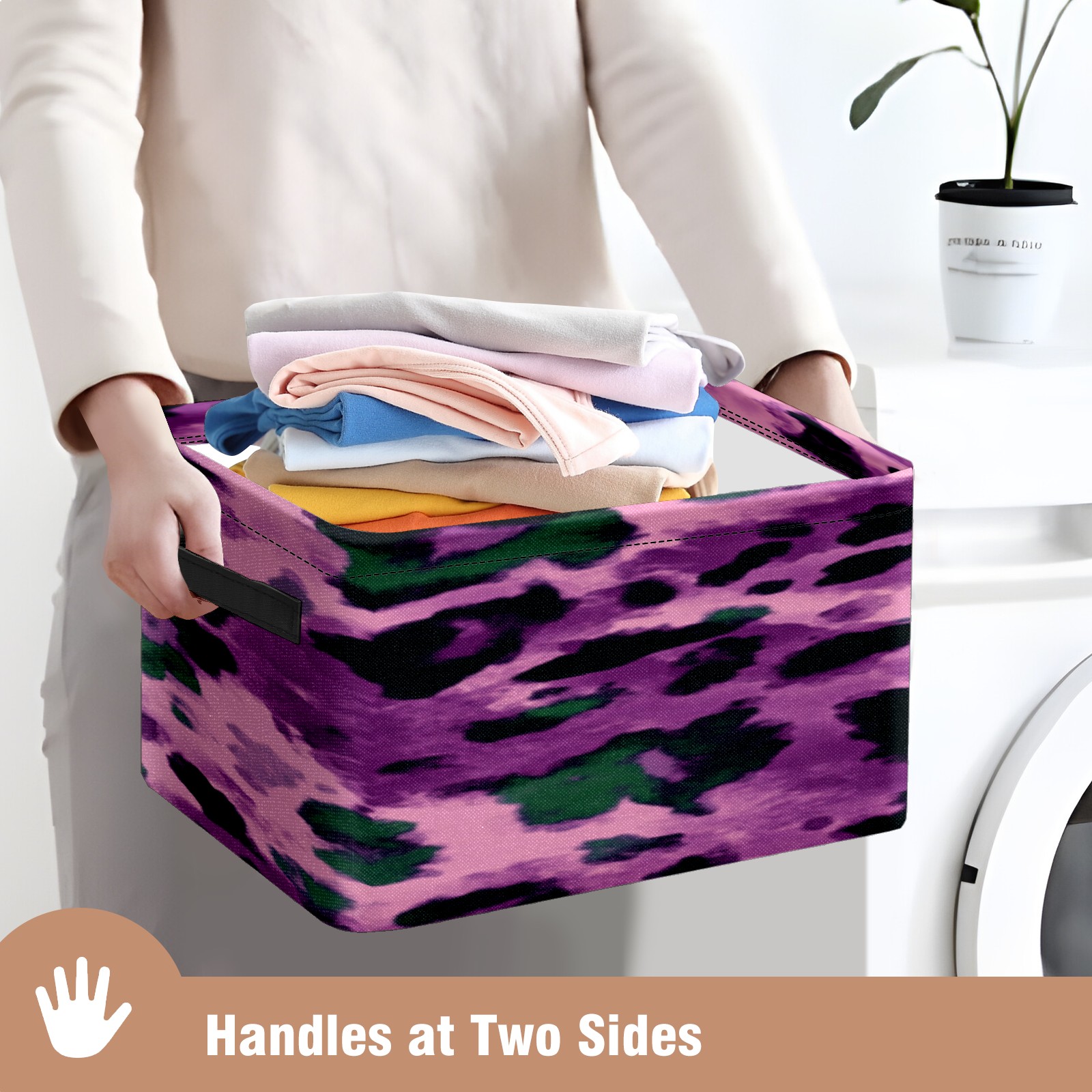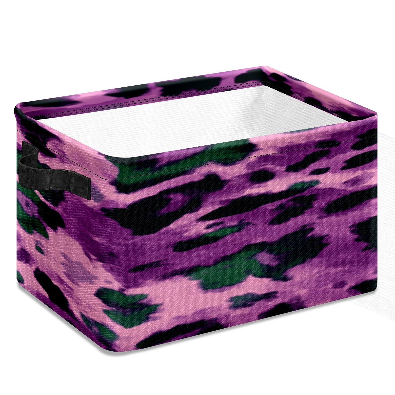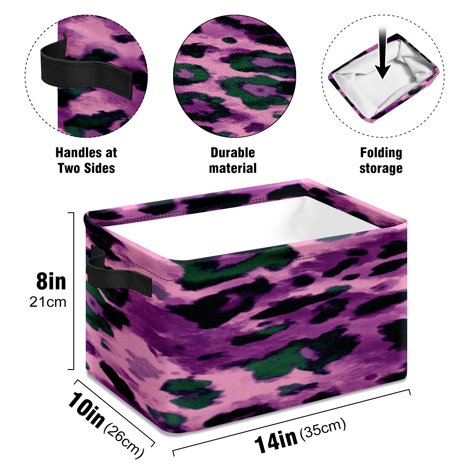 Foldable and Stackable Fabric Storage Basket for Home Organization with Handles, Decorative Closet Bins for Shelves, Laundry, and Toy Storage( Purple And Green Leopard Print)