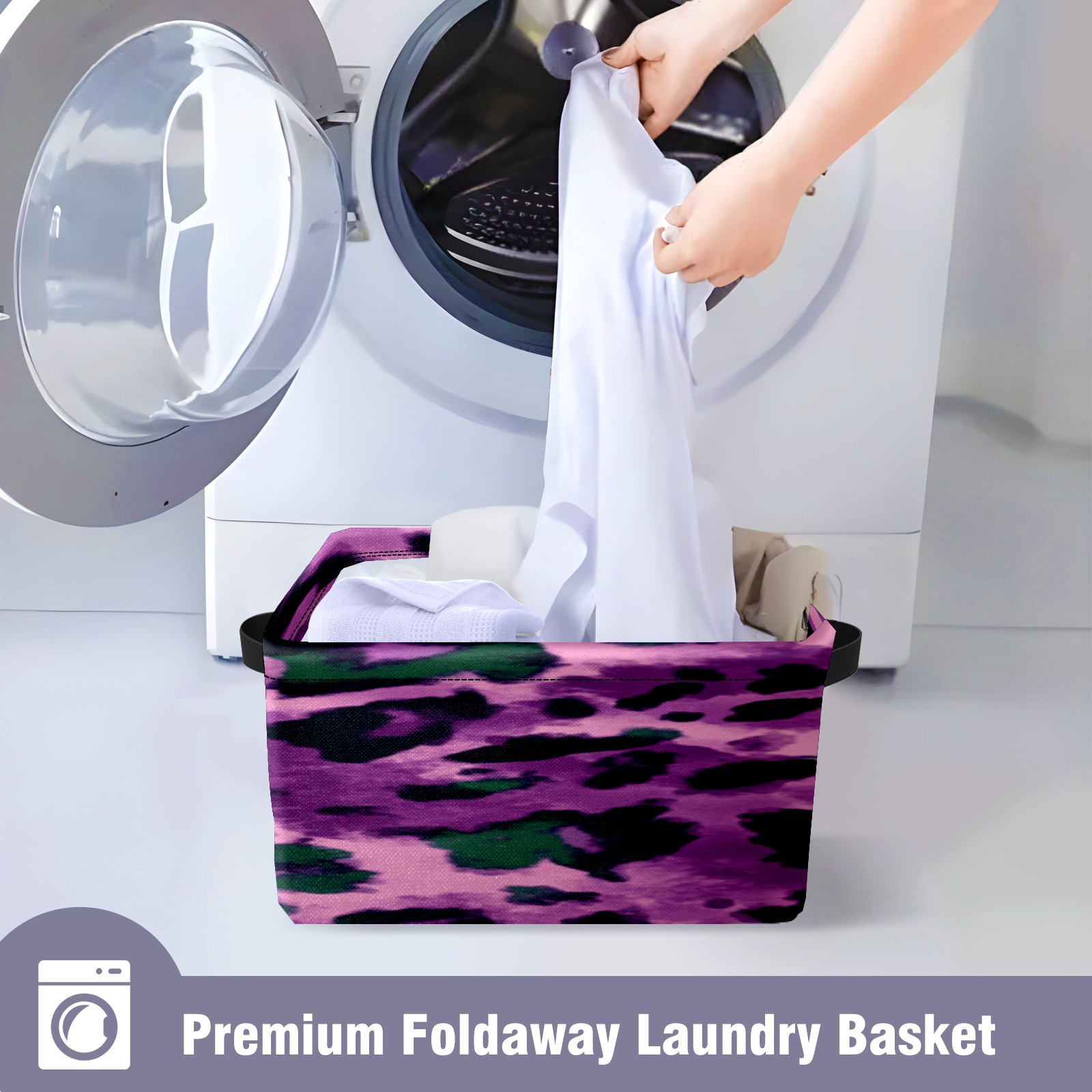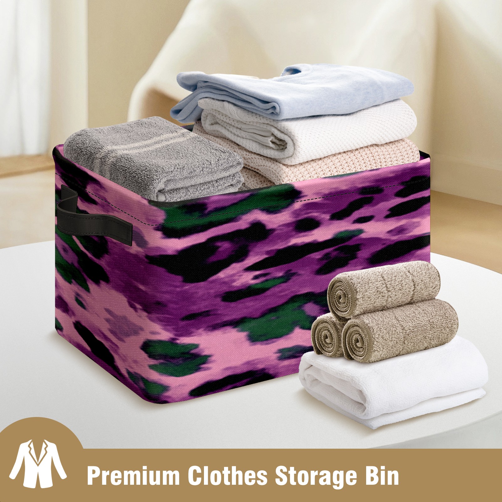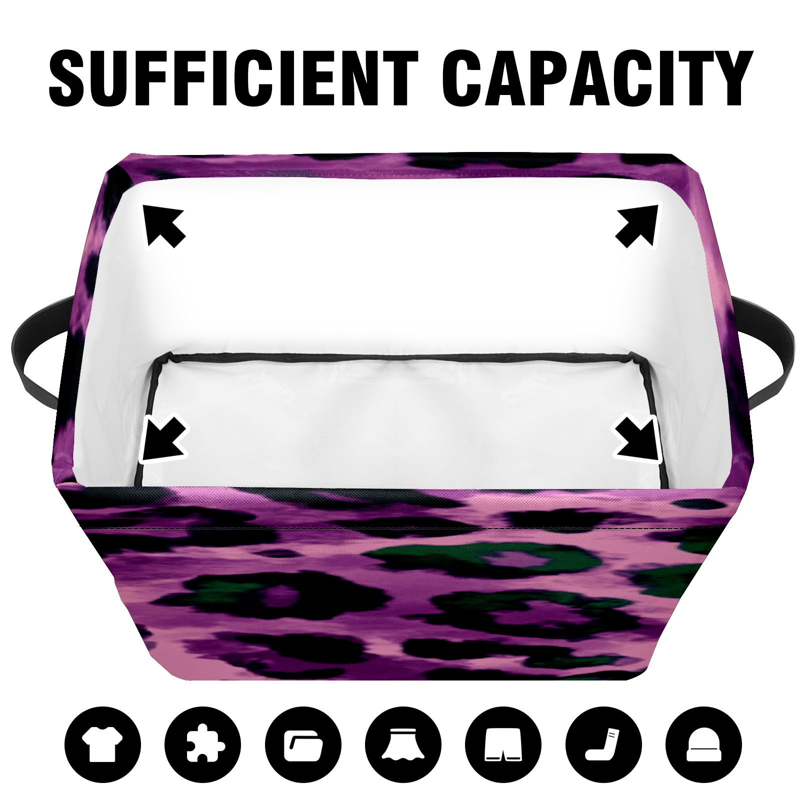 Foldable and Stackable Fabric Storage Basket for Home Organization with Handles, Decorative Closet Bins for Shelves, Laundry, and Toy Storage( Purple And Green Leopard Print)