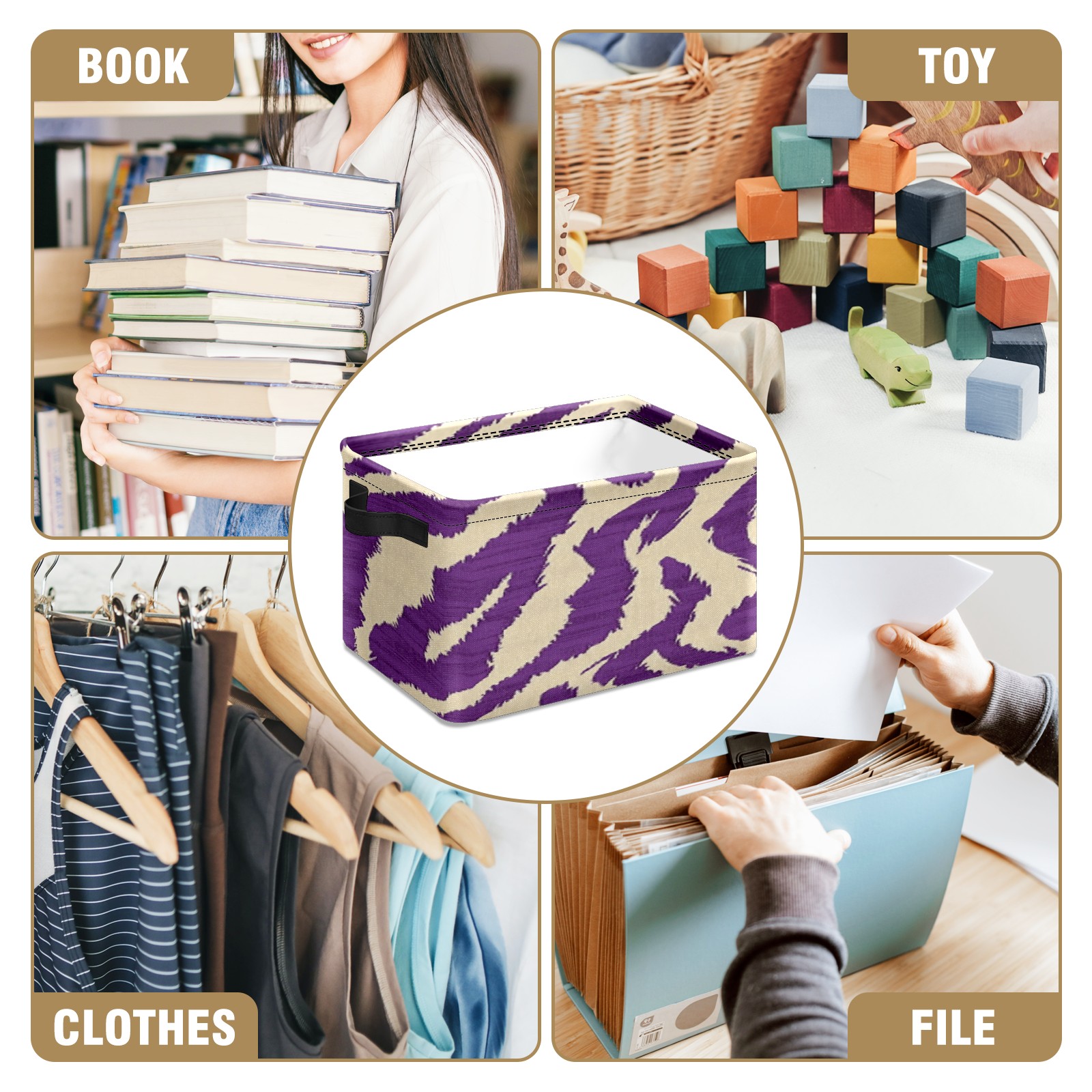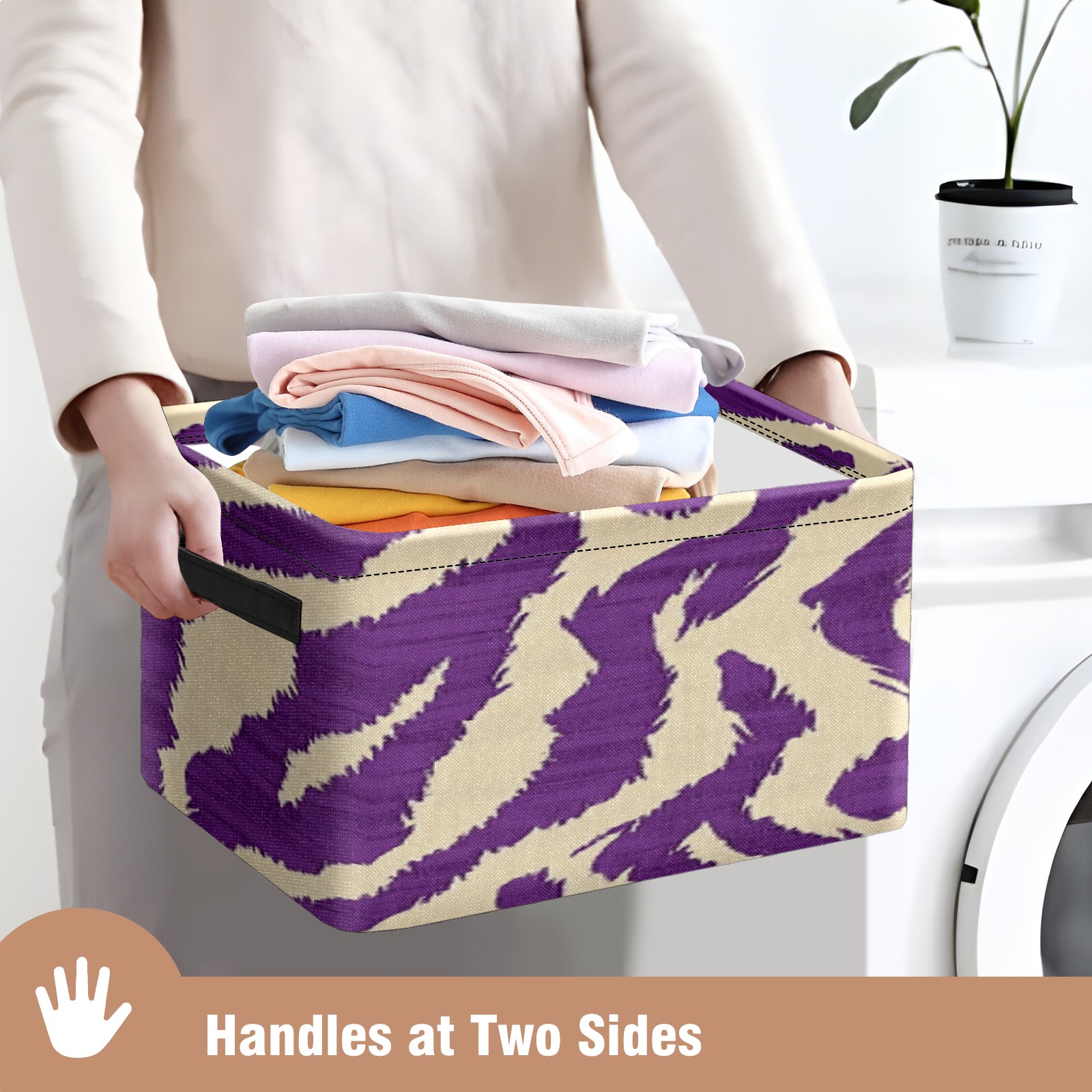 Foldable and Stackable Fabric Storage Basket for Home Organization with Handles, Decorative Closet Bins for Shelves, Laundry, and Toy Storage( Tiger Stripes)