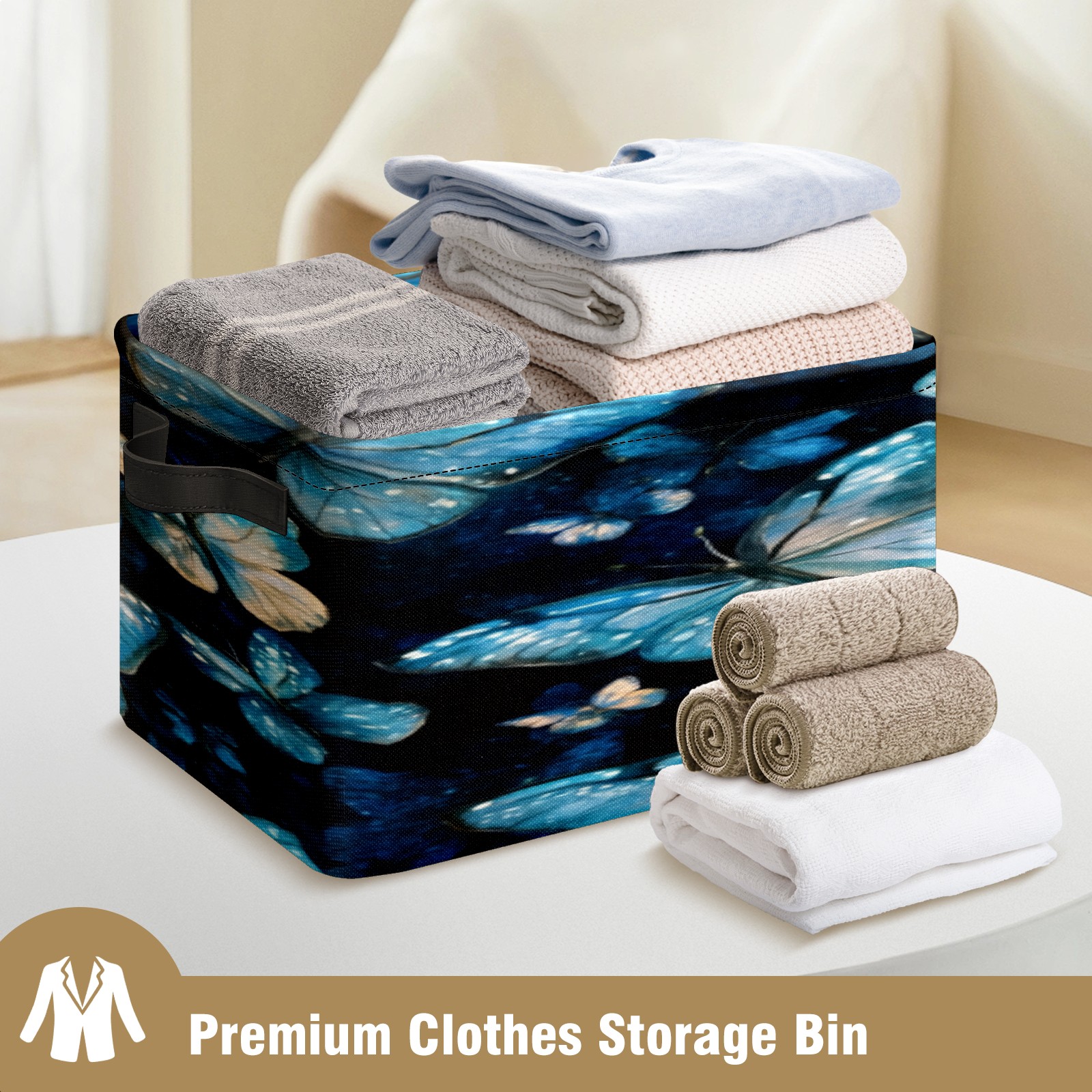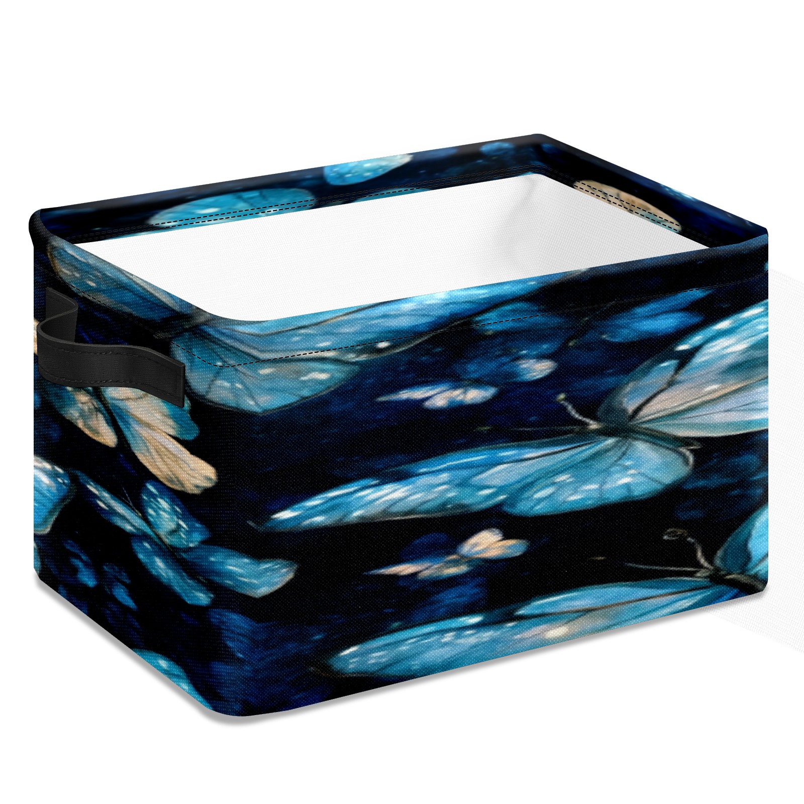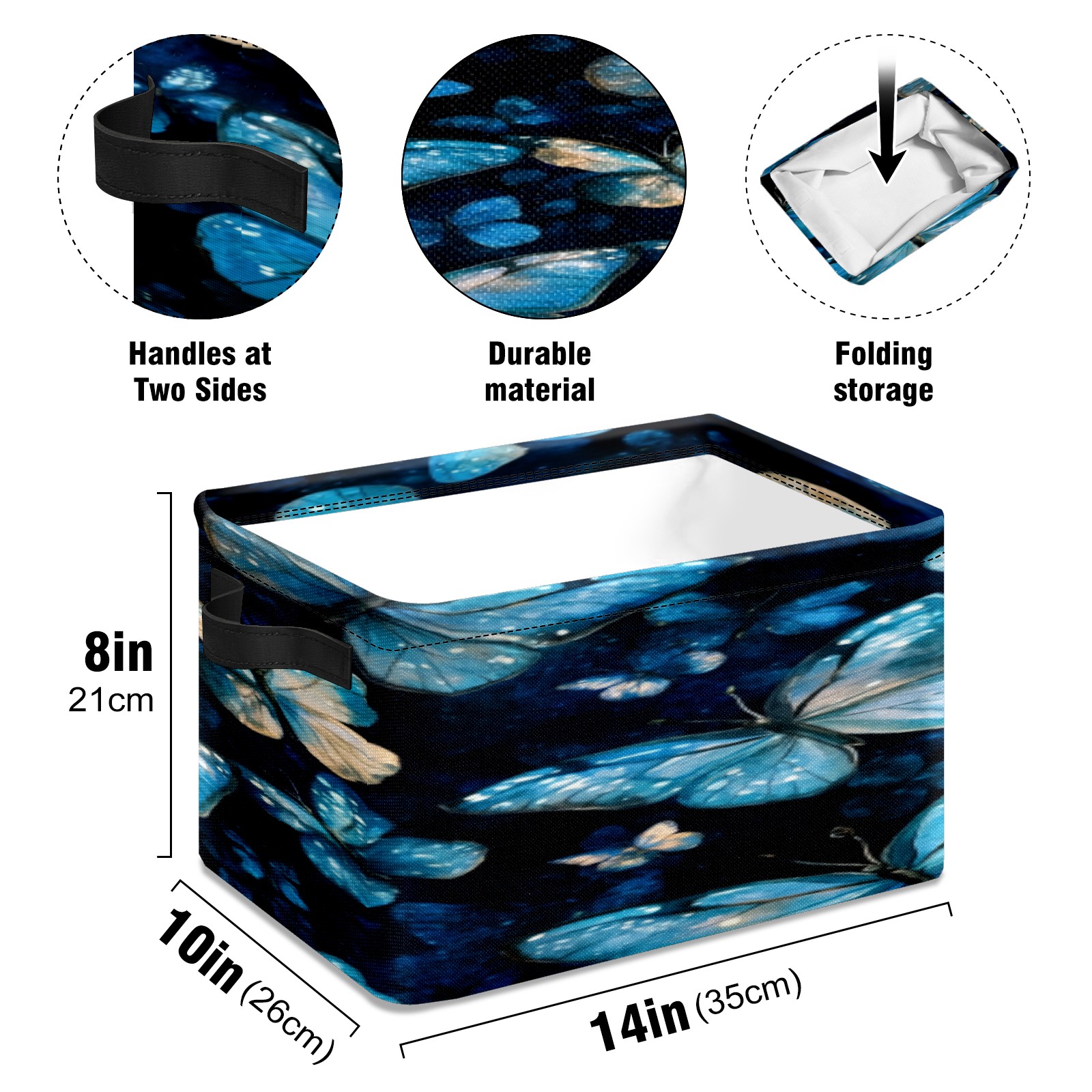 Foldable and Stackable Fabric Storage Basket for Home Organization with Handles, Decorative Closet Bins for Shelves, Laundry, and Toy Storage( Turquoise And Blue Butterflies)
