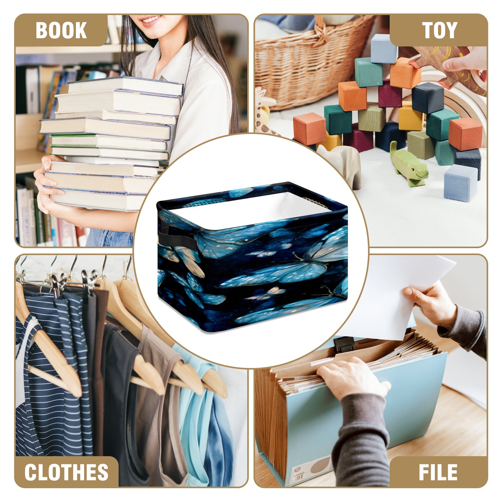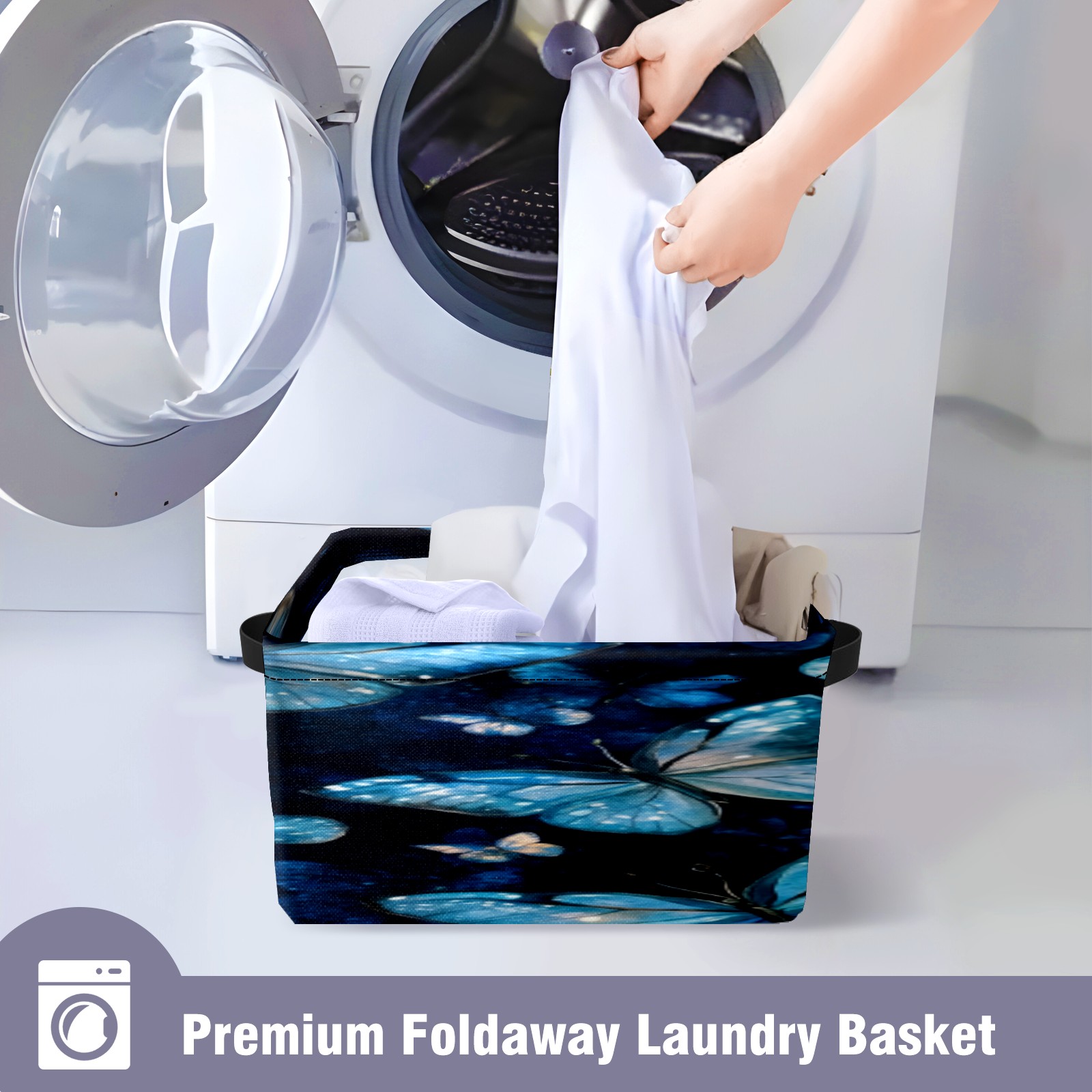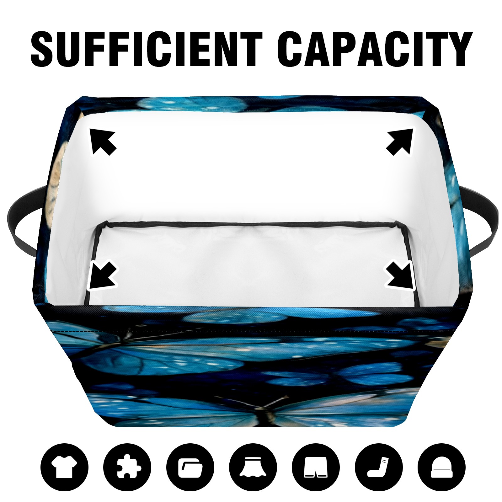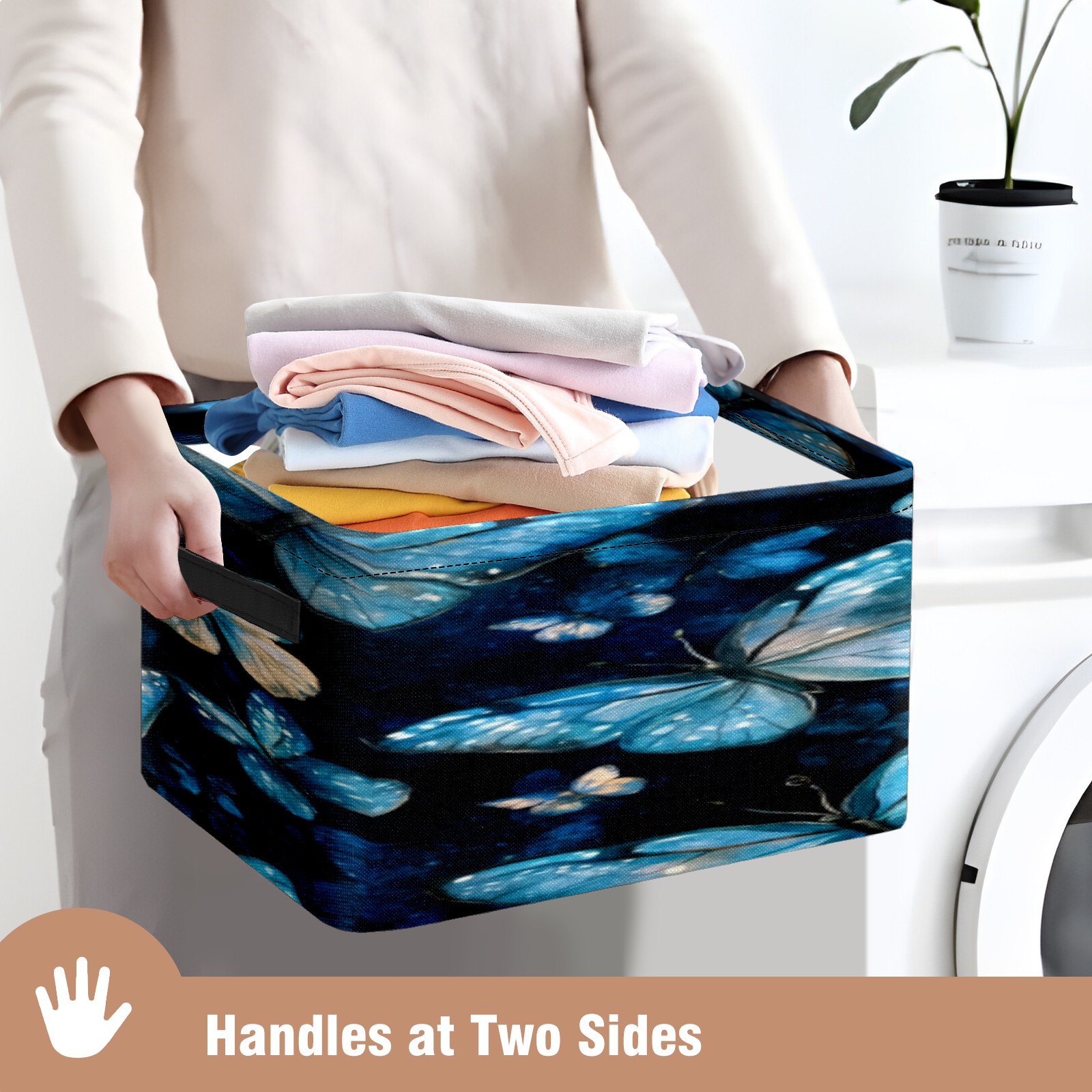 Foldable and Stackable Fabric Storage Basket for Home Organization with Handles, Decorative Closet Bins for Shelves, Laundry, and Toy Storage( Turquoise And Blue Butterflies)