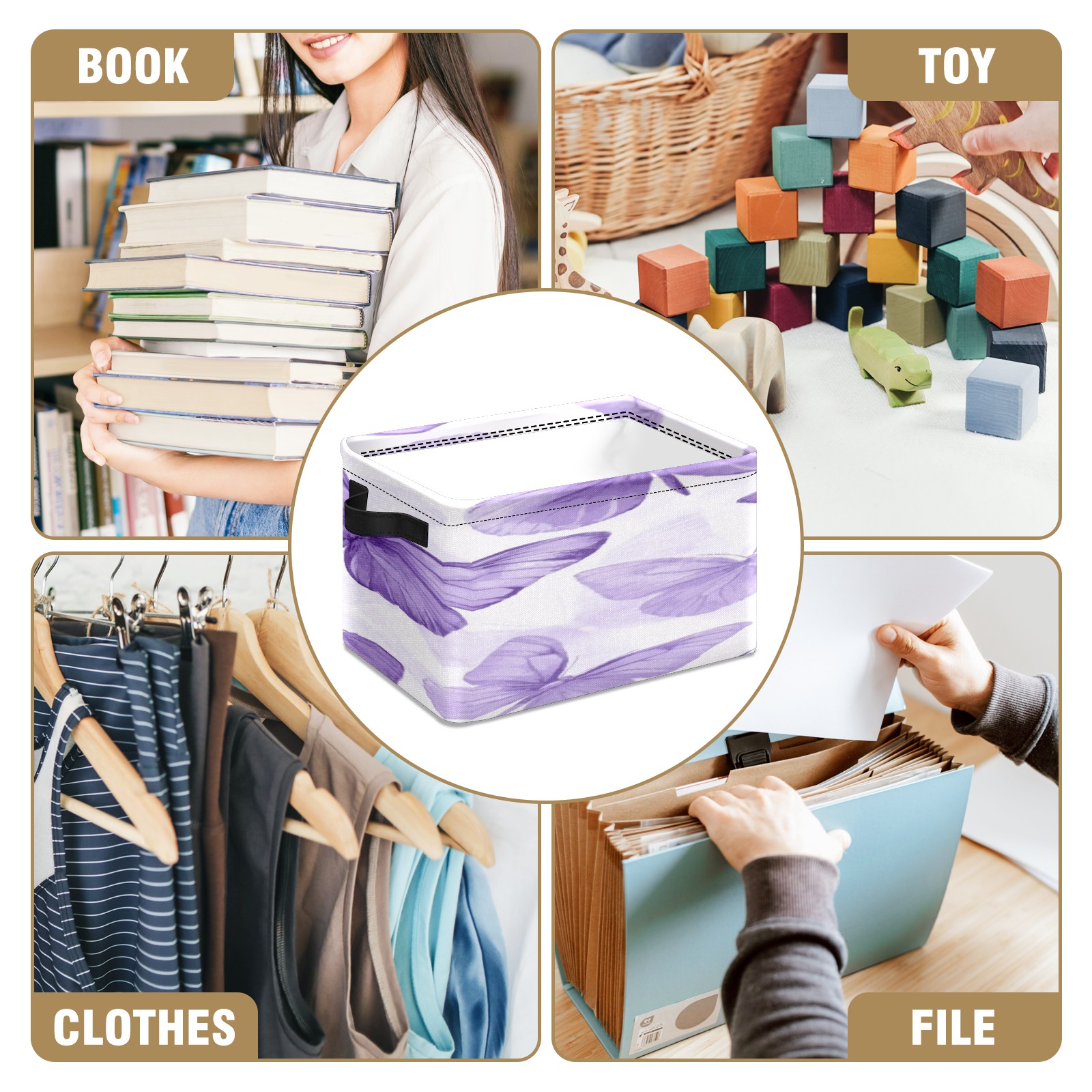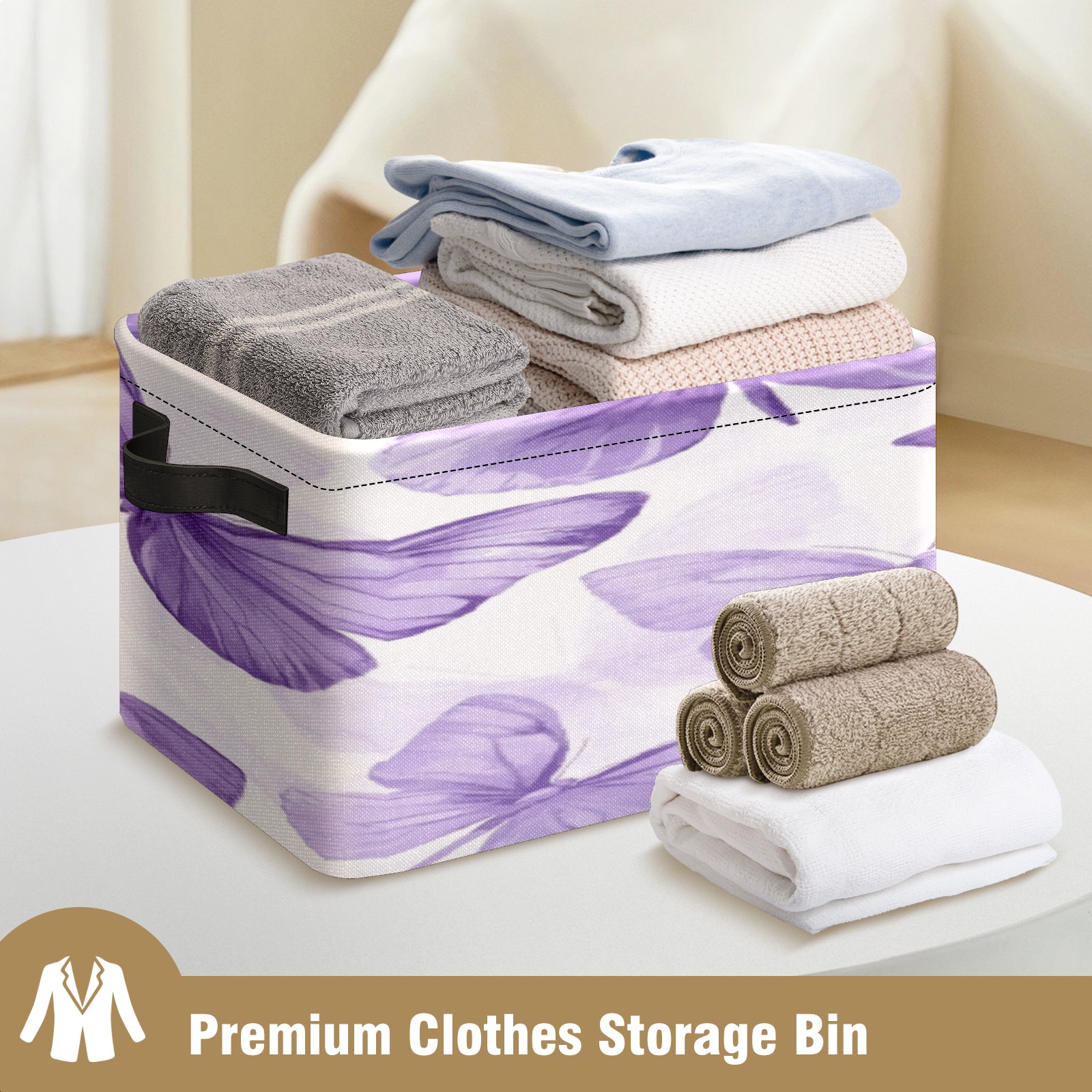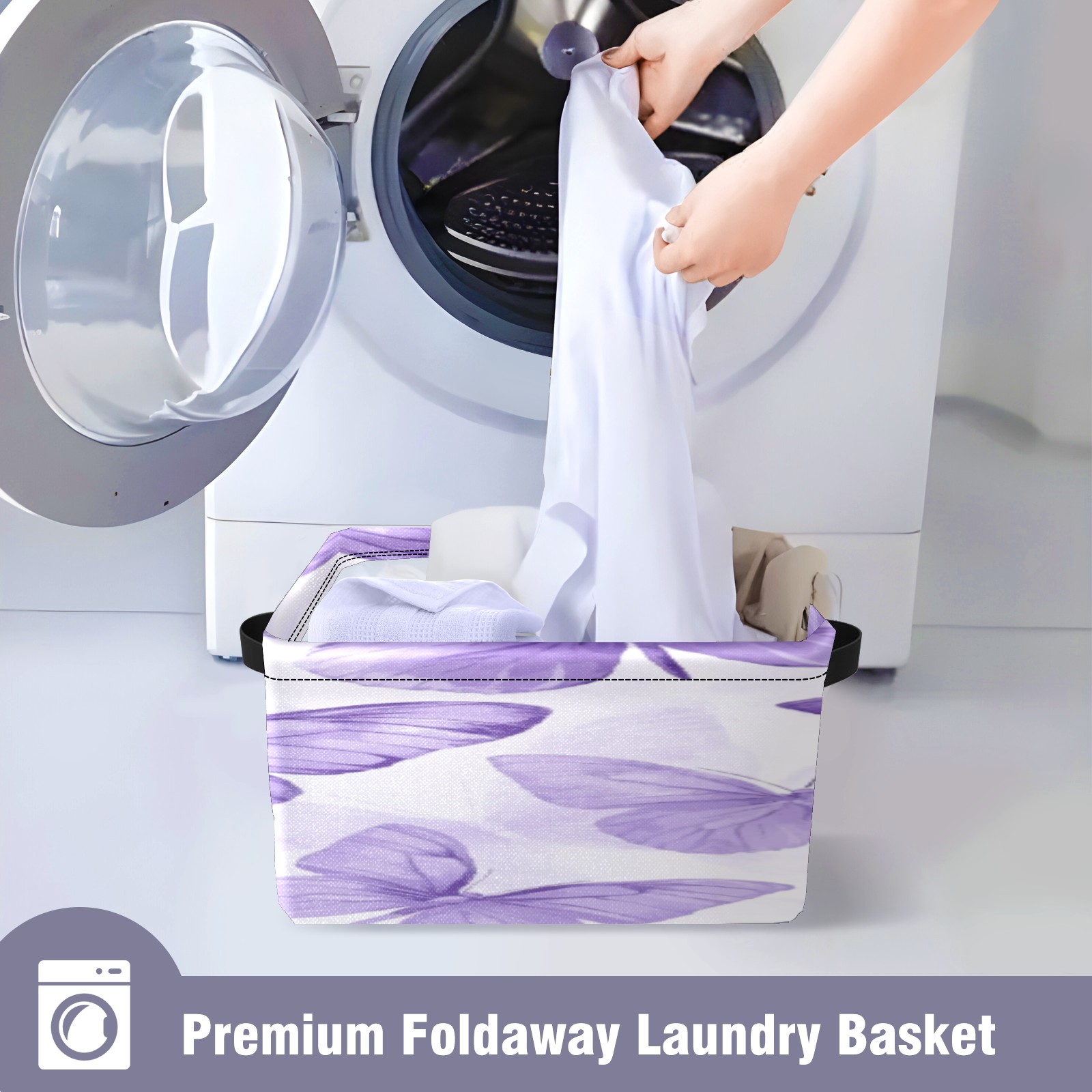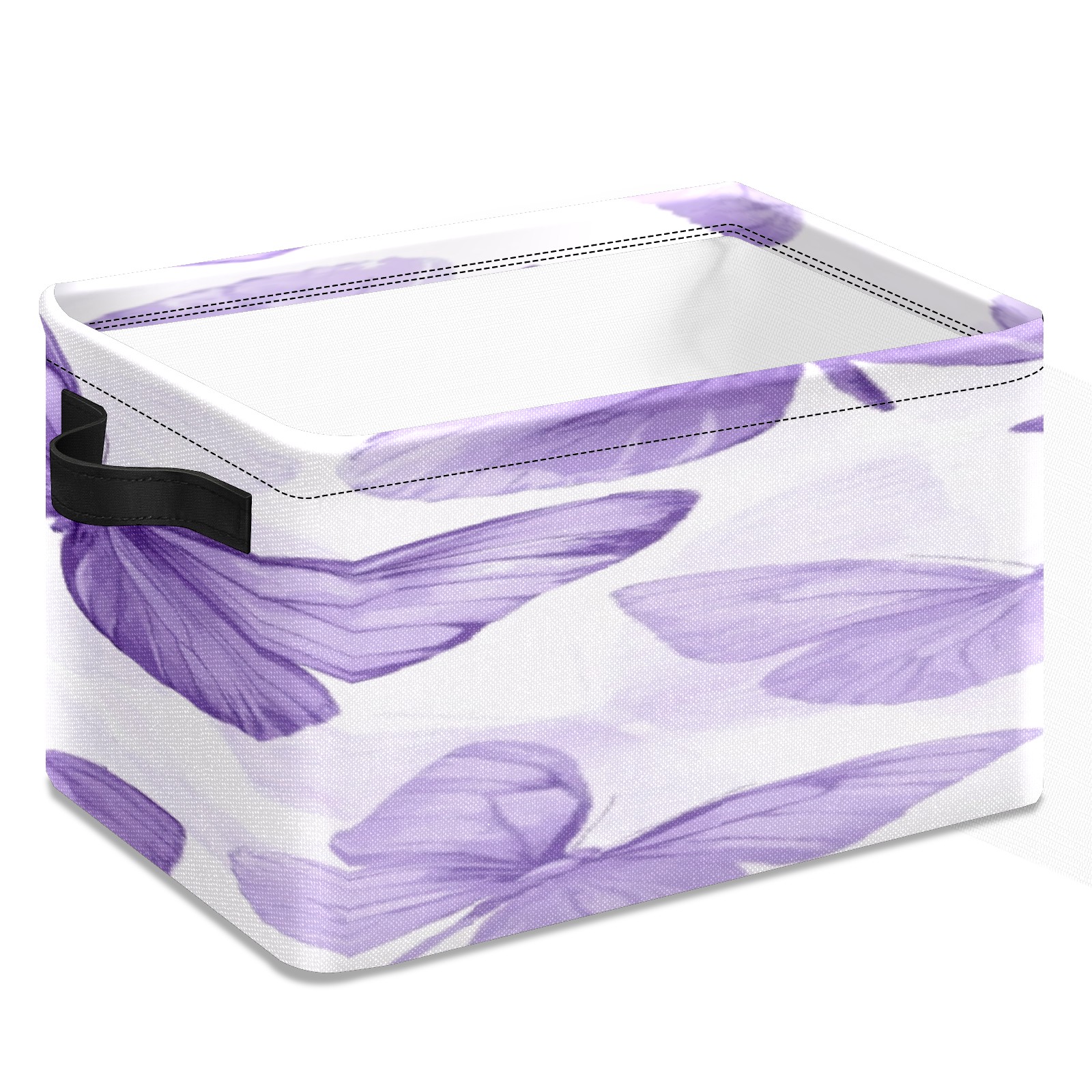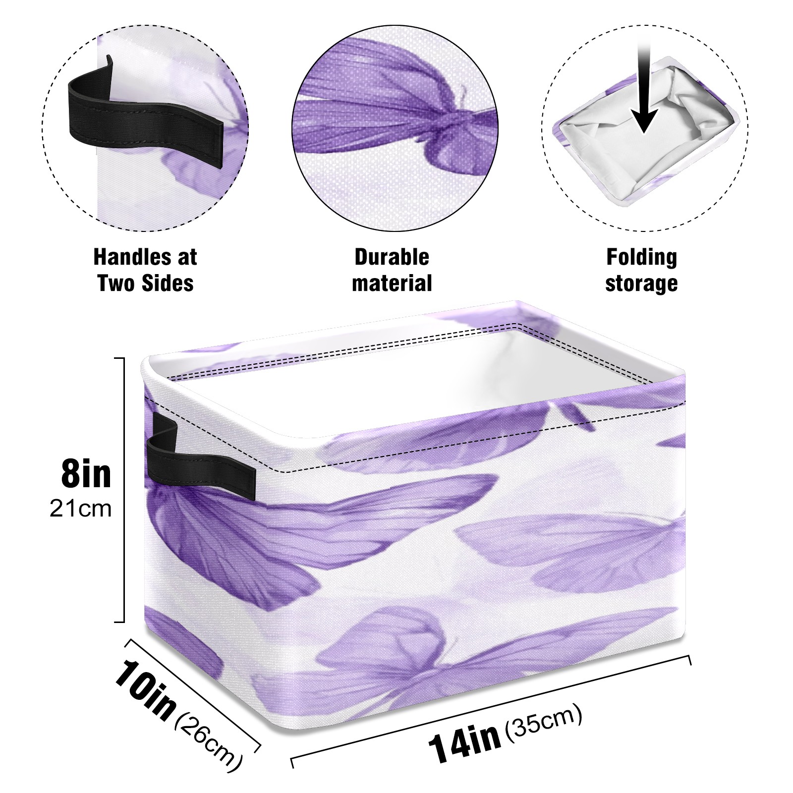 Foldable and Stackable Fabric Storage Basket for Home Organization with Handles, Decorative Closet Bins for Shelves, Laundry, and Toy Storage( Purple Butterflies)