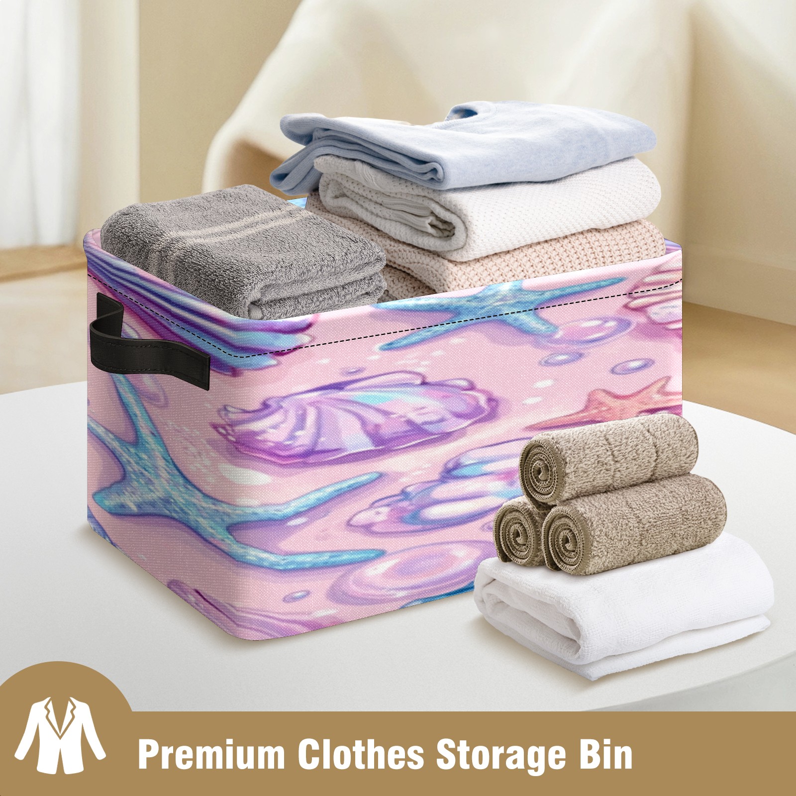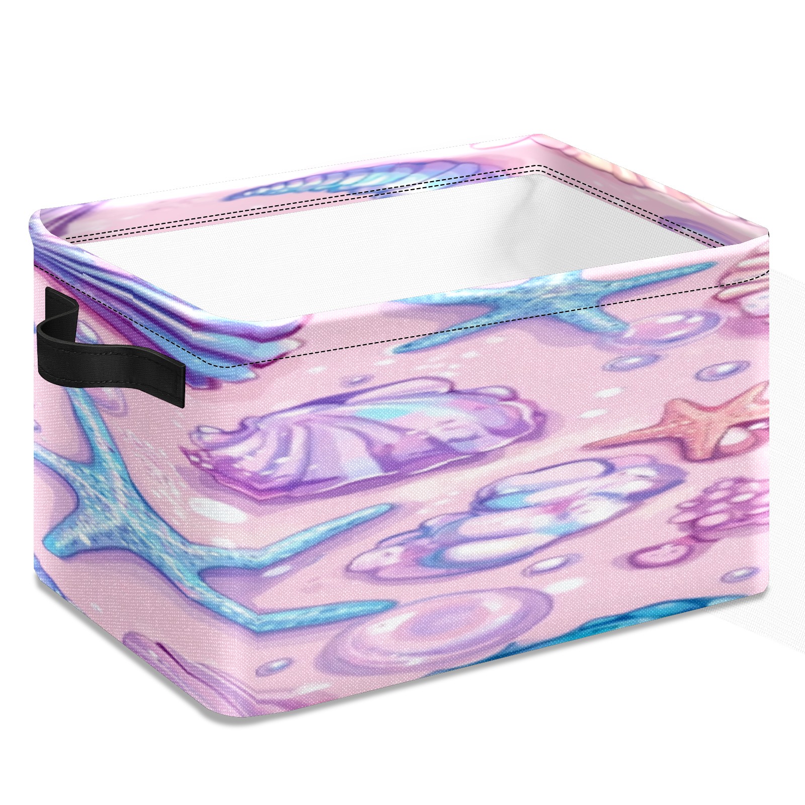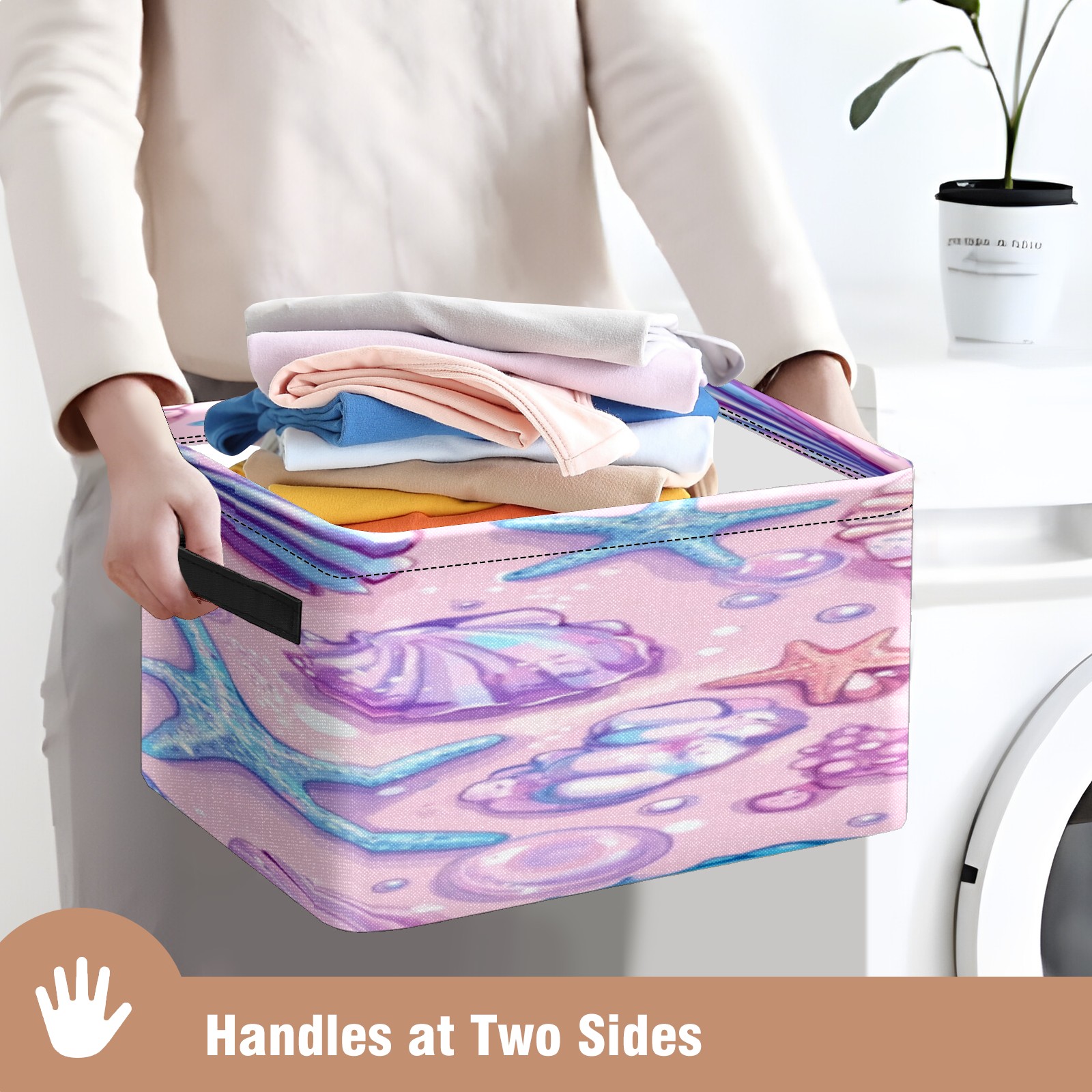 Foldable and Stackable Fabric Storage Basket for Home Organization with Handles, Decorative Closet Bins for Shelves, Laundry, and Toy Storage( Starfish)