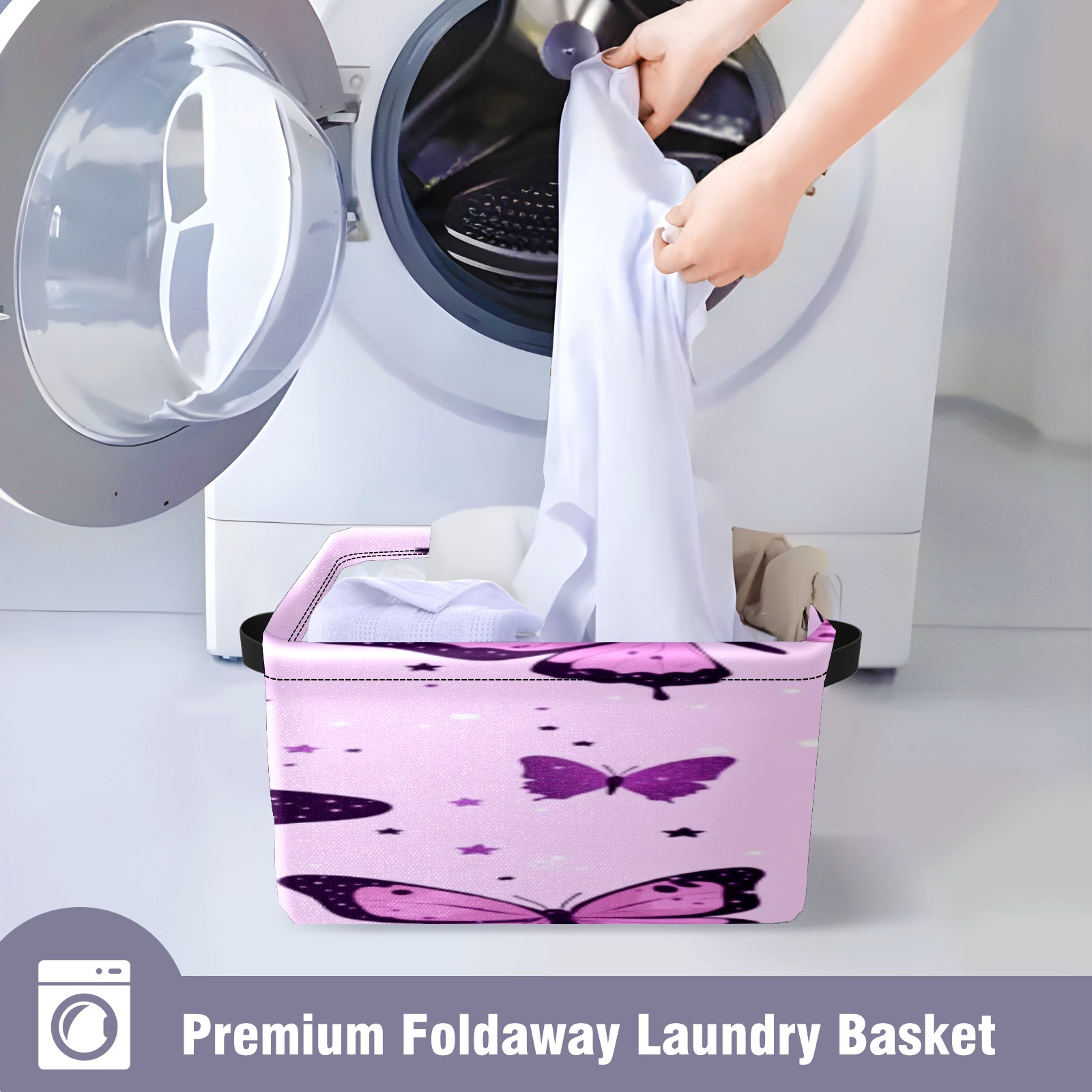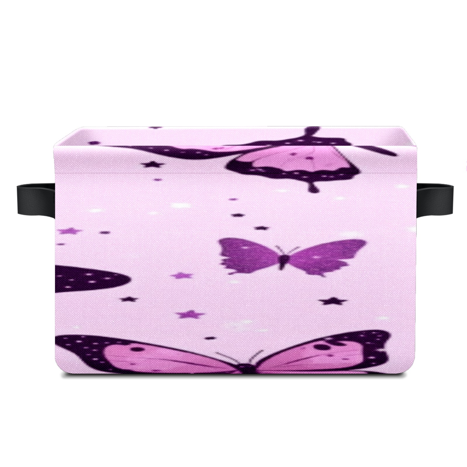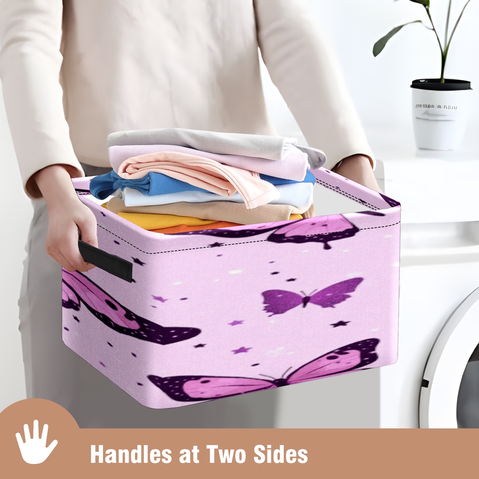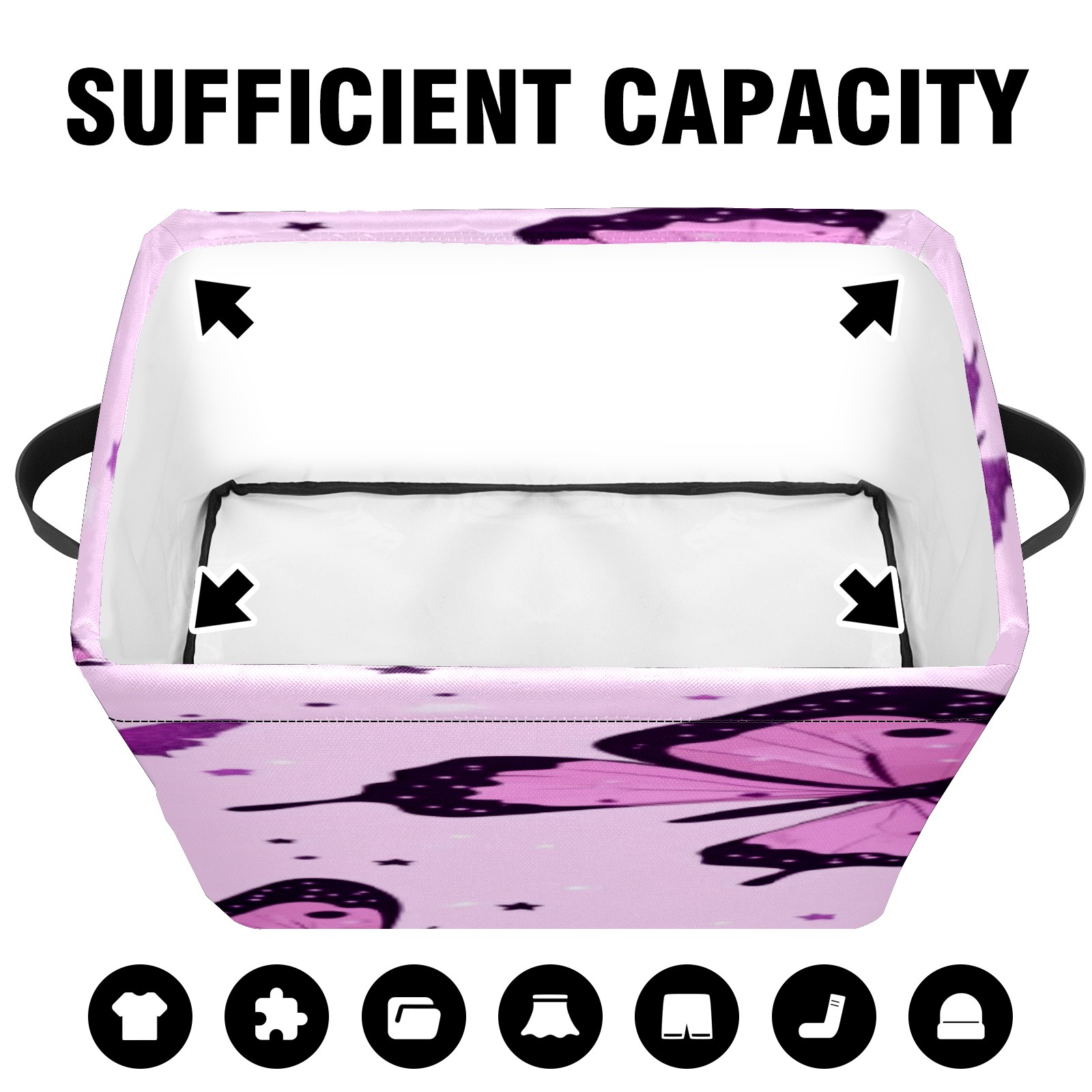 Foldable and Stackable Fabric Storage Basket for Home Organization with Handles, Decorative Closet Bins for Shelves, Laundry, and Toy Storage( Pink Leopard Butterflies)