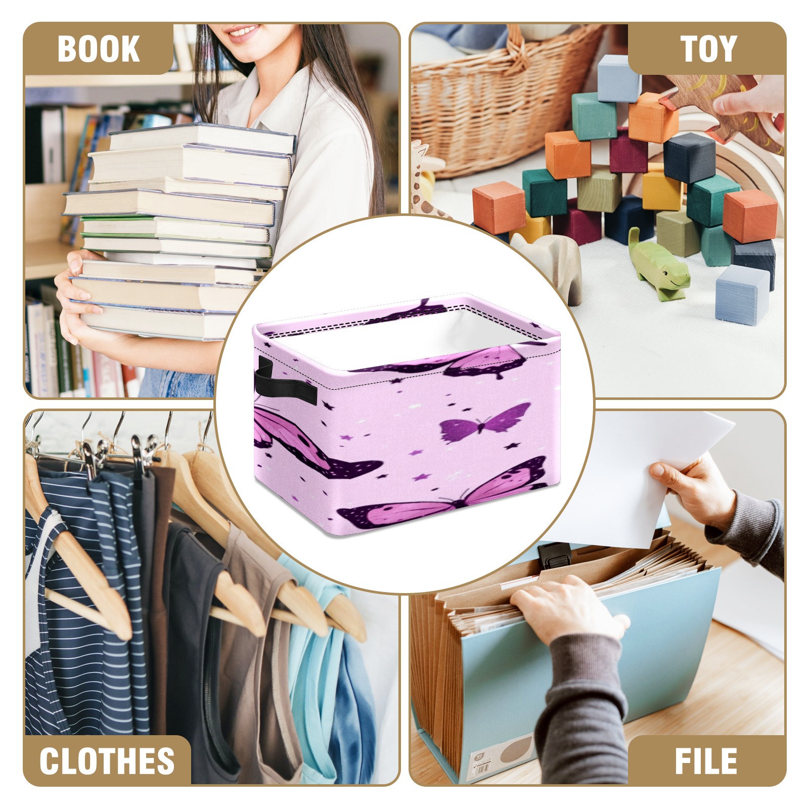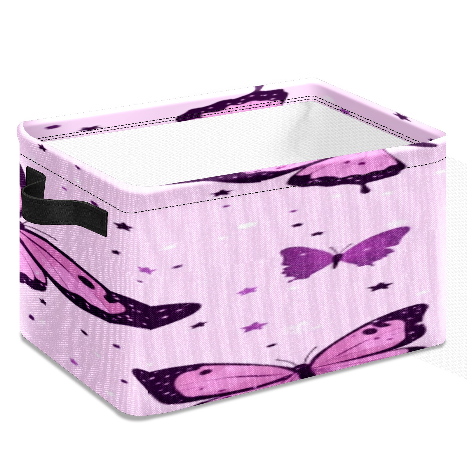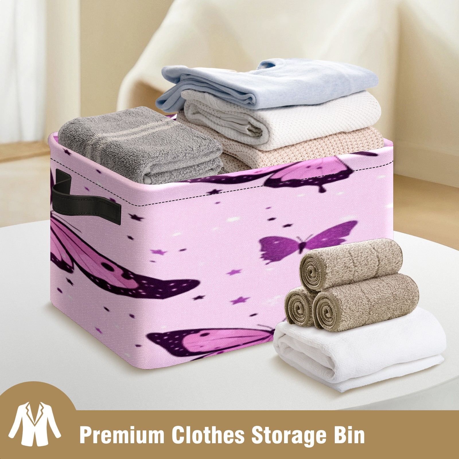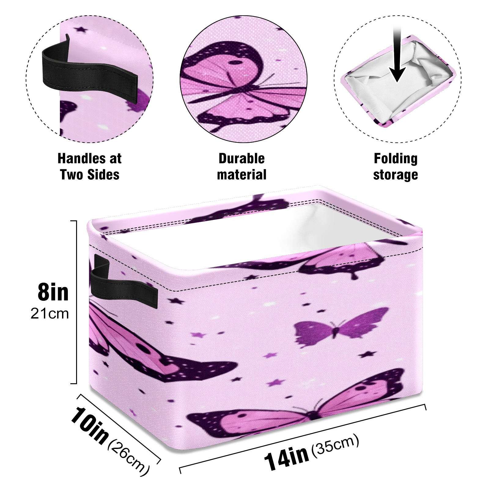 Foldable and Stackable Fabric Storage Basket for Home Organization with Handles, Decorative Closet Bins for Shelves, Laundry, and Toy Storage( Pink Leopard Butterflies)