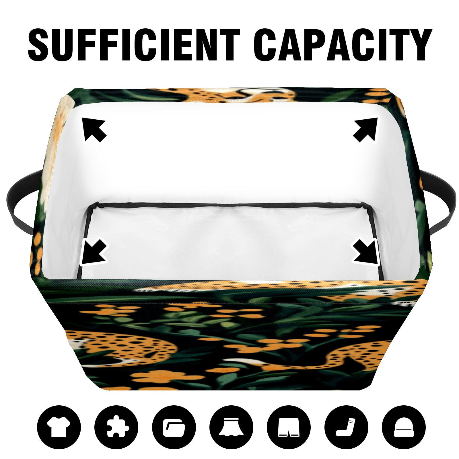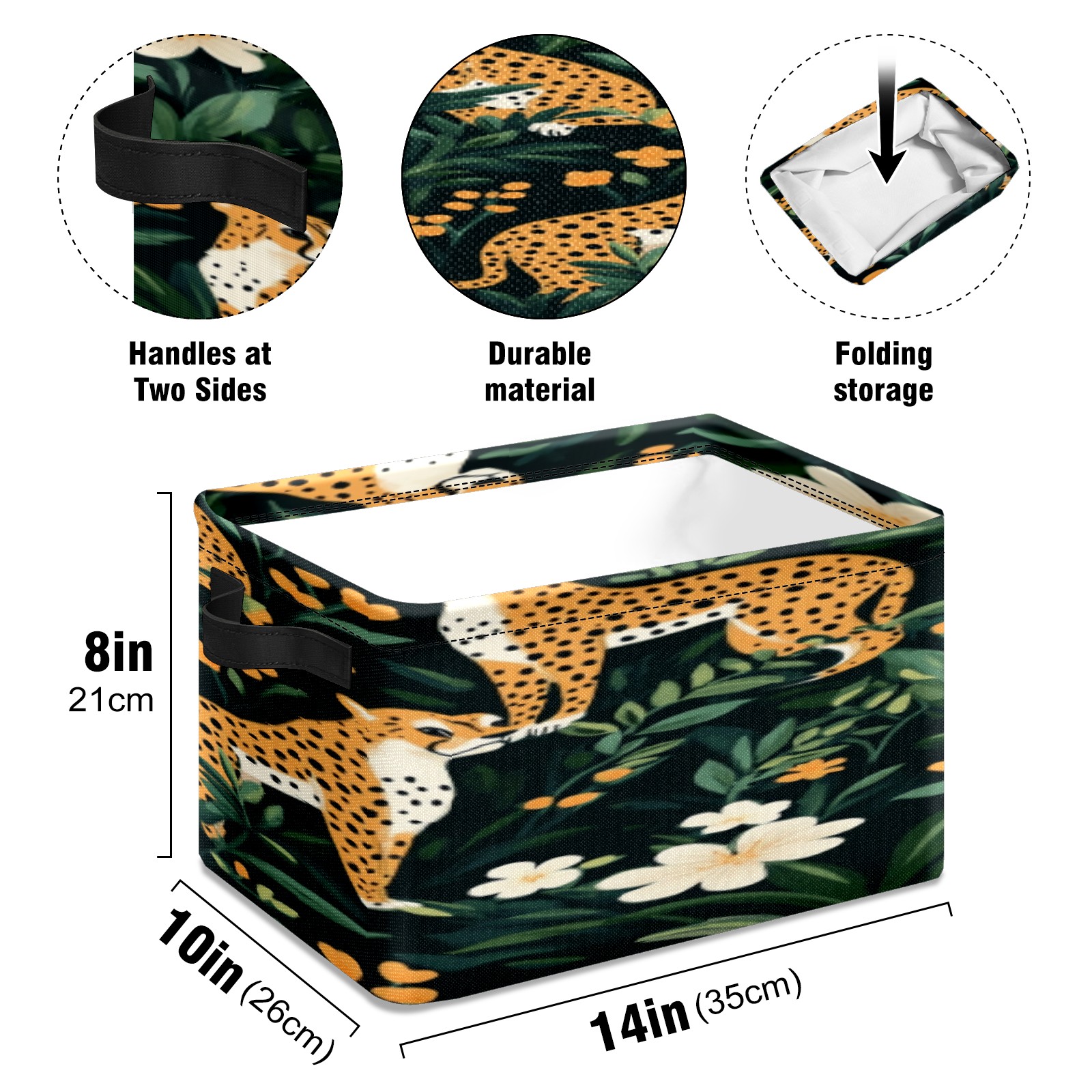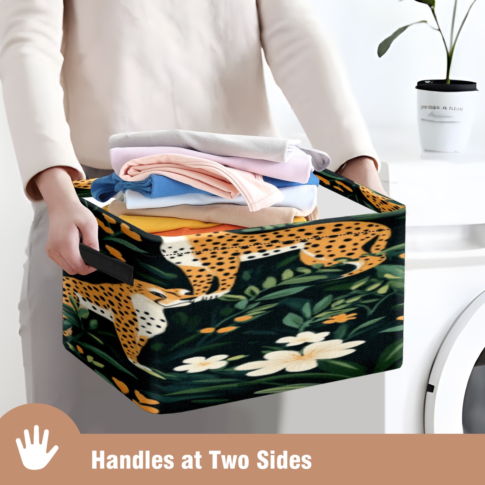 Foldable and Stackable Fabric Storage Basket for Home Organization with Handles, Decorative Closet Bins for Shelves, Laundry, and Toy Storage( Cheetahs)