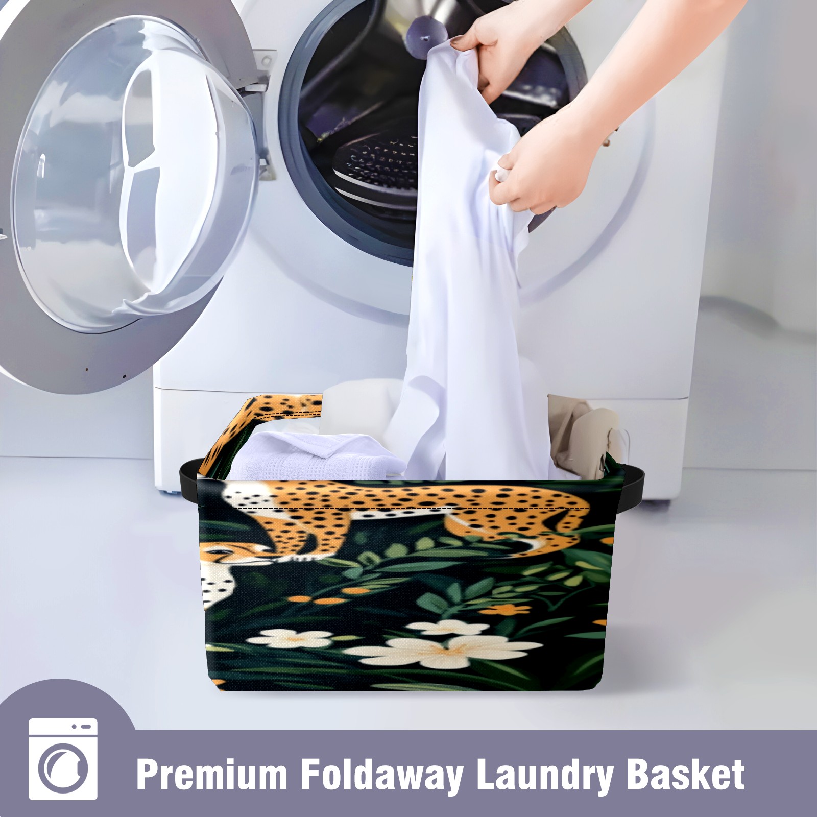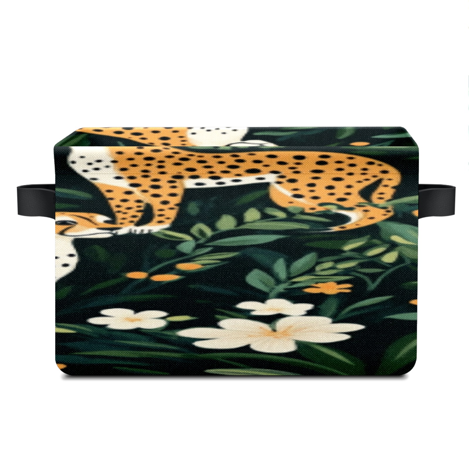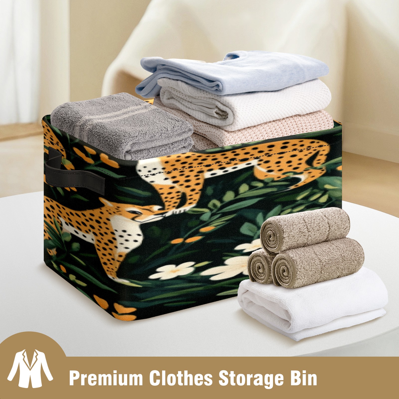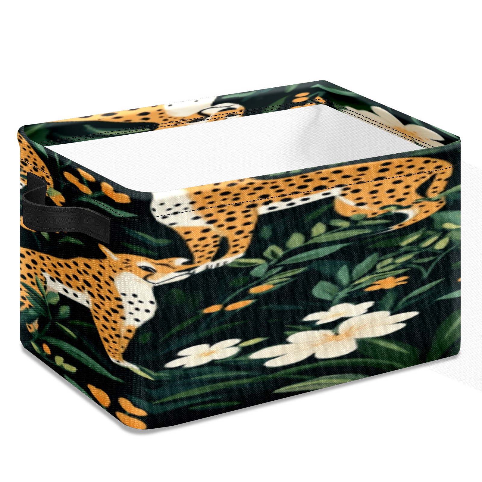 Foldable and Stackable Fabric Storage Basket for Home Organization with Handles, Decorative Closet Bins for Shelves, Laundry, and Toy Storage( Cheetahs)
