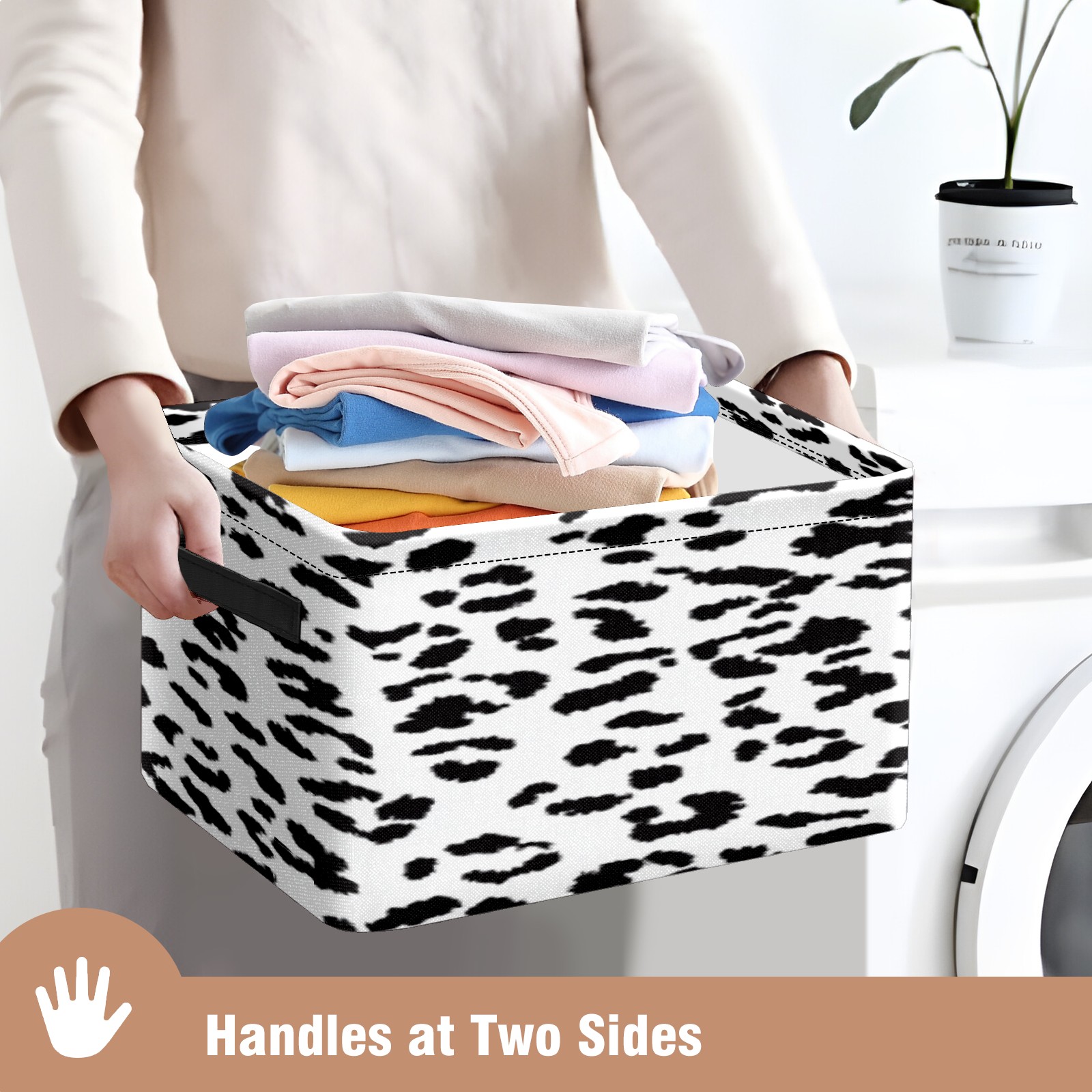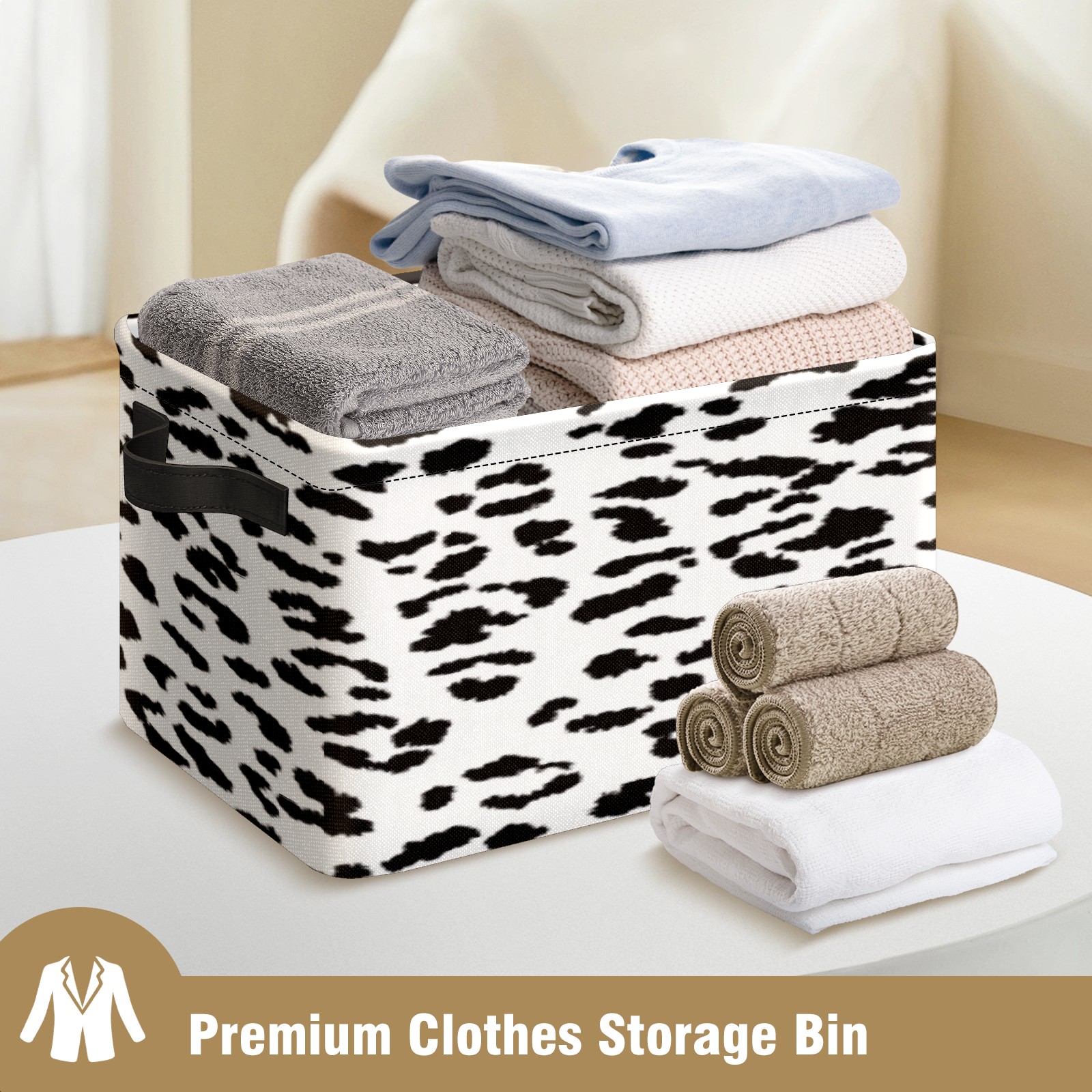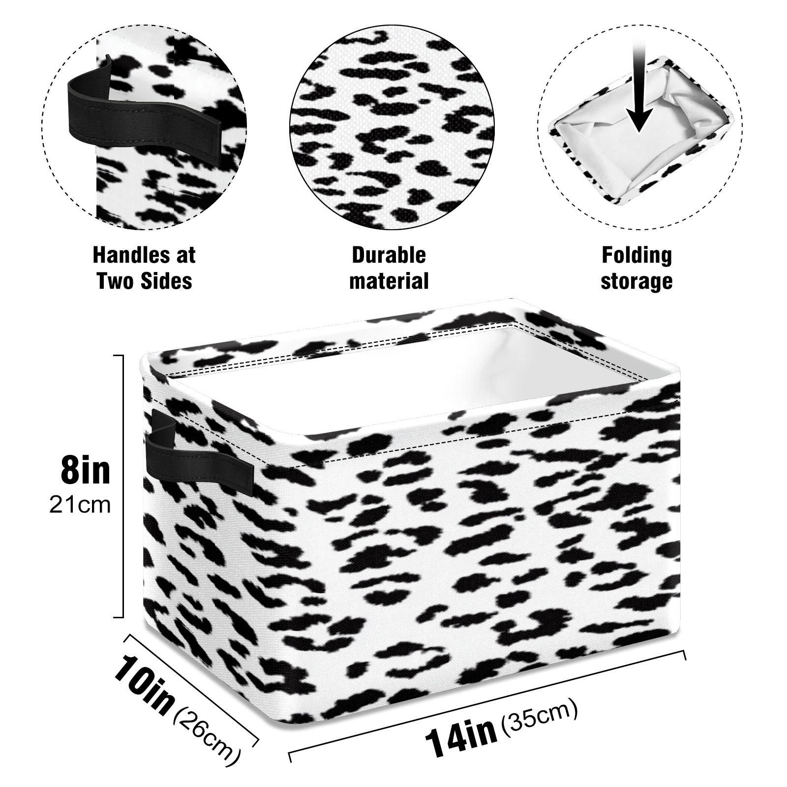 Foldable and Stackable Fabric Storage Basket for Home Organization with Handles, Decorative Closet Bins for Shelves, Laundry, and Toy Storage( Leopard Print Pattern)