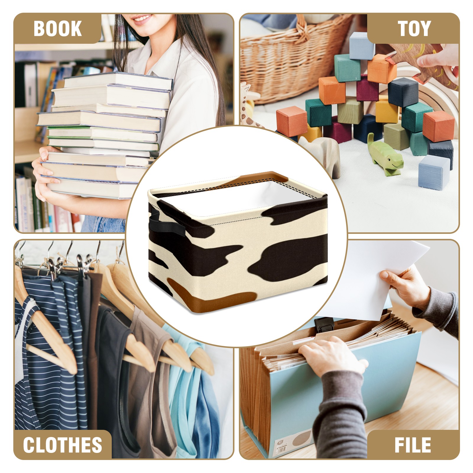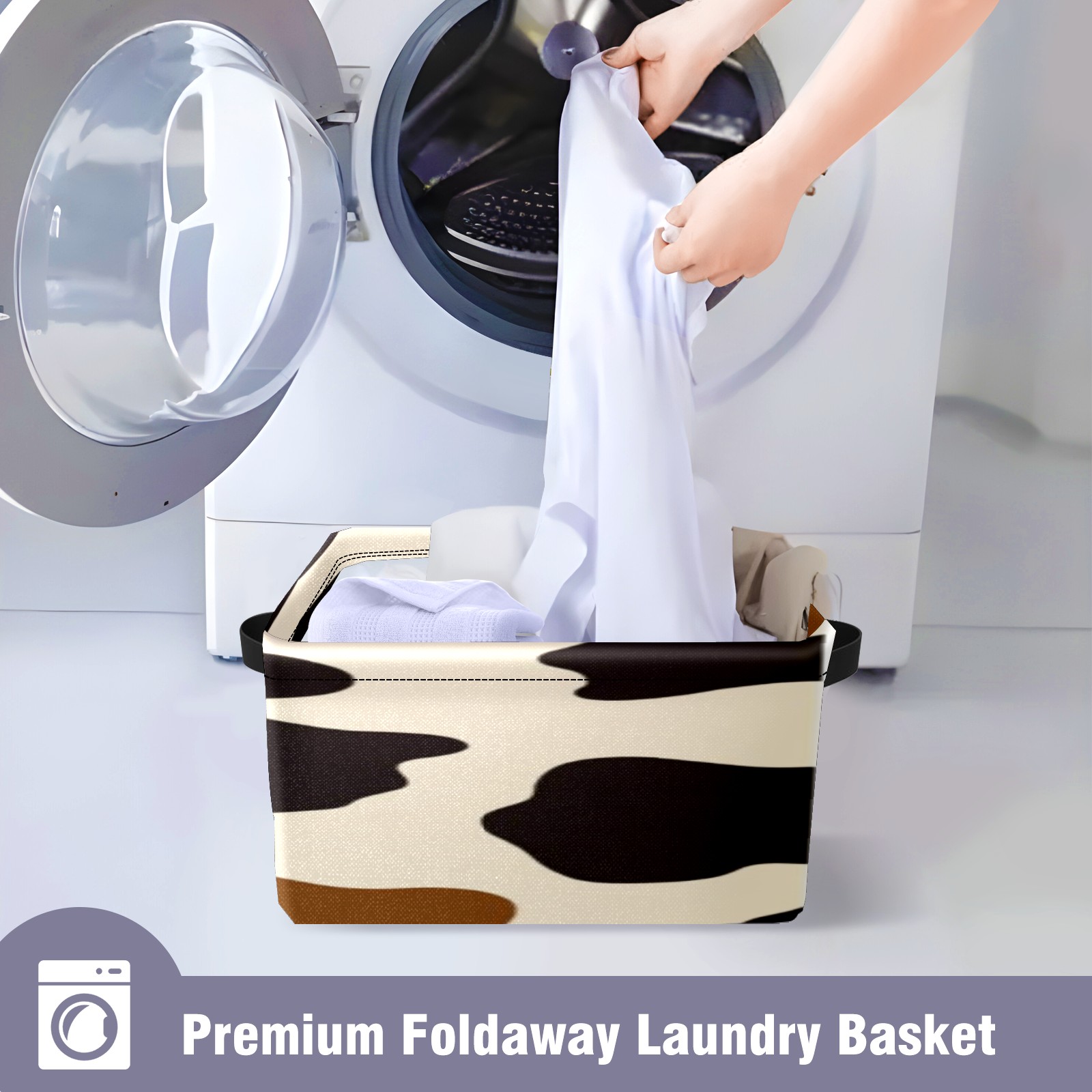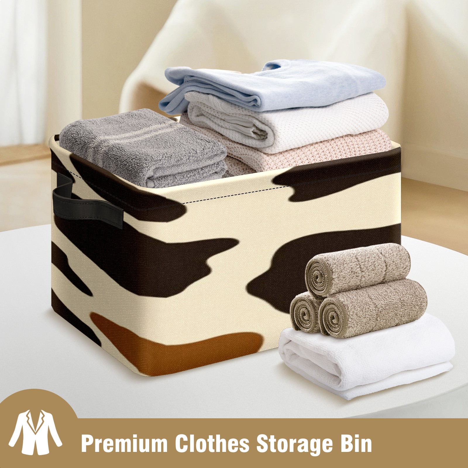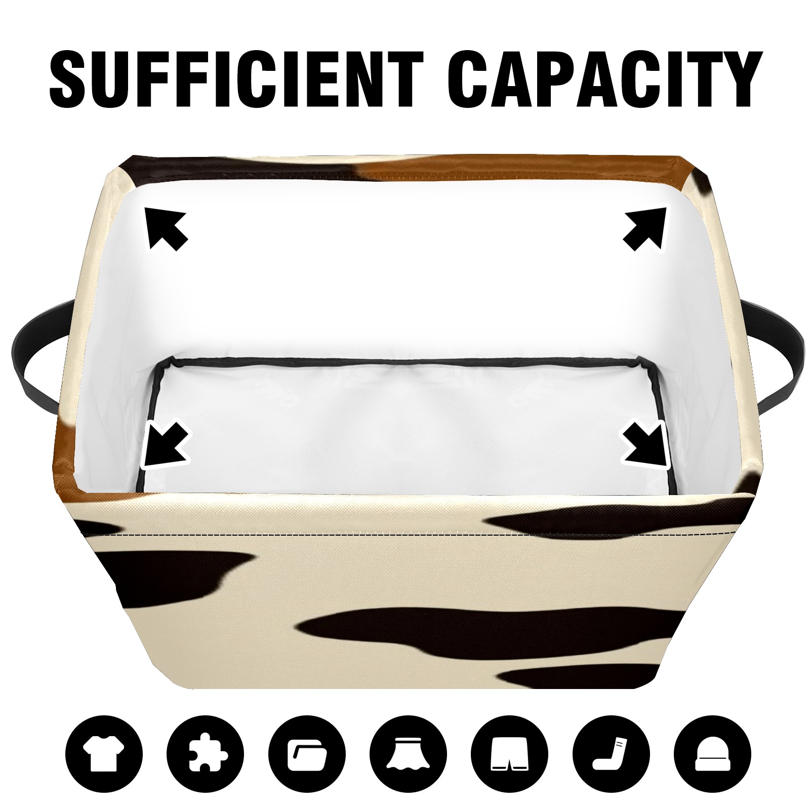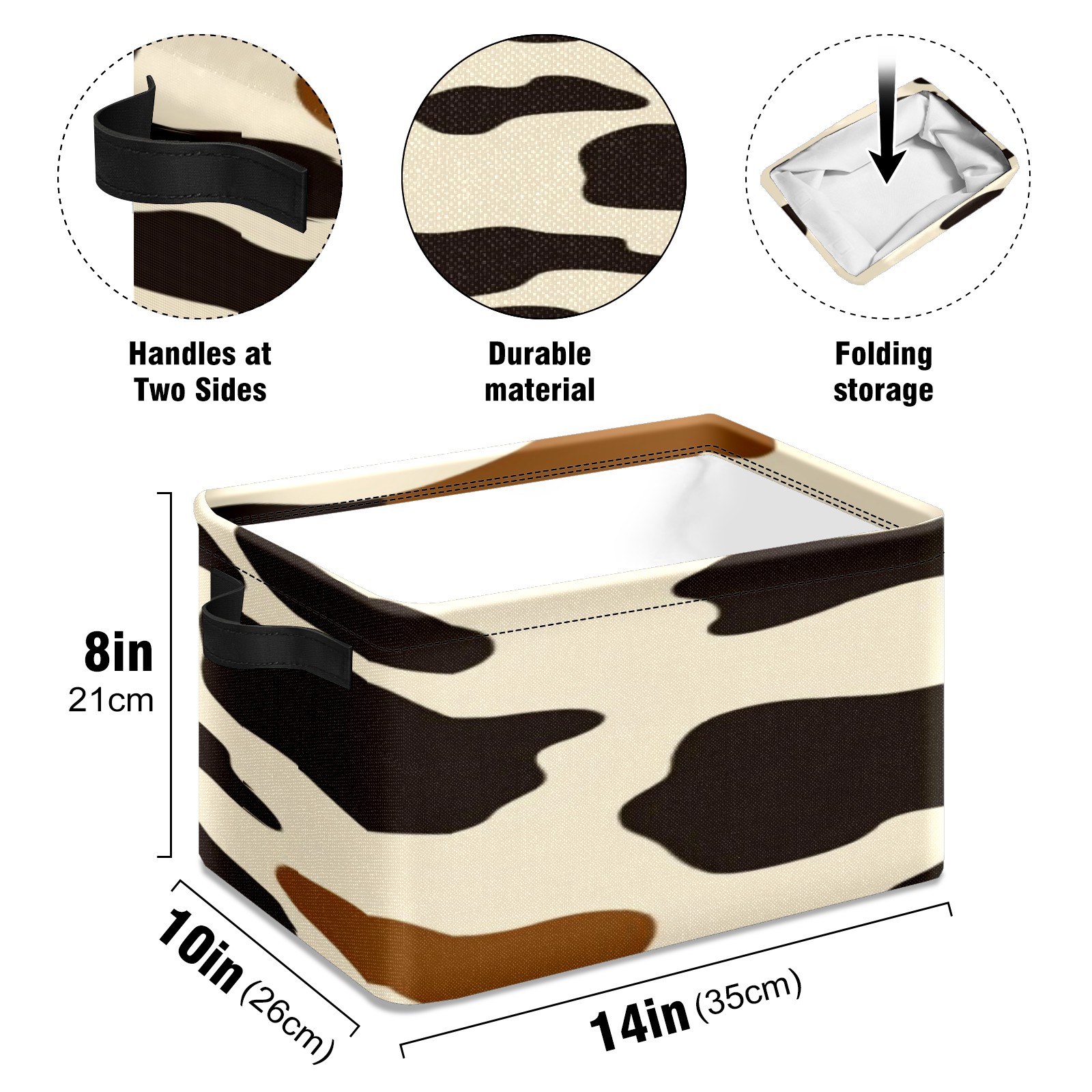 Foldable and Stackable Fabric Storage Basket for Home Organization with Handles, Decorative Closet Bins for Shelves, Laundry, and Toy Storage( Cow Print Pattern)