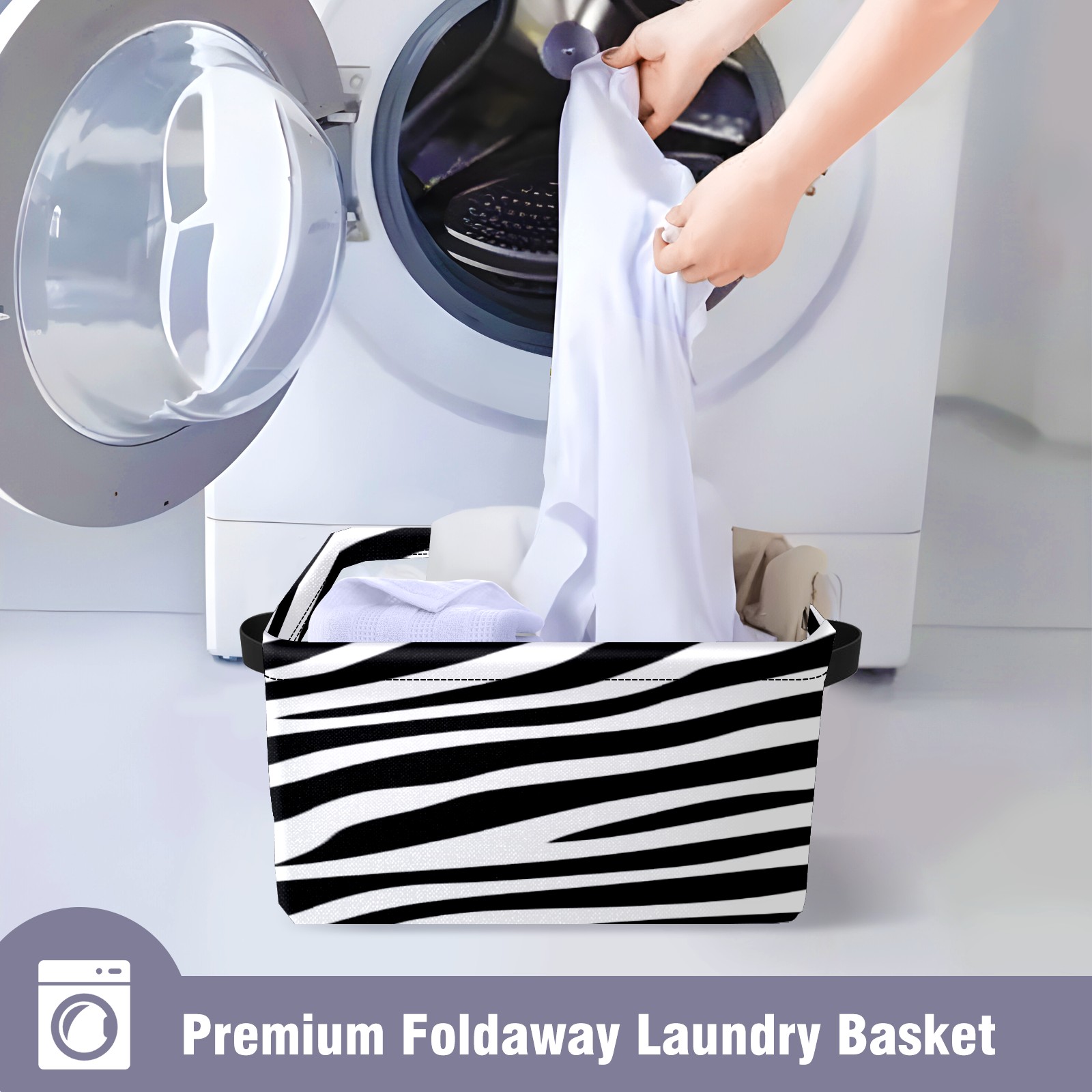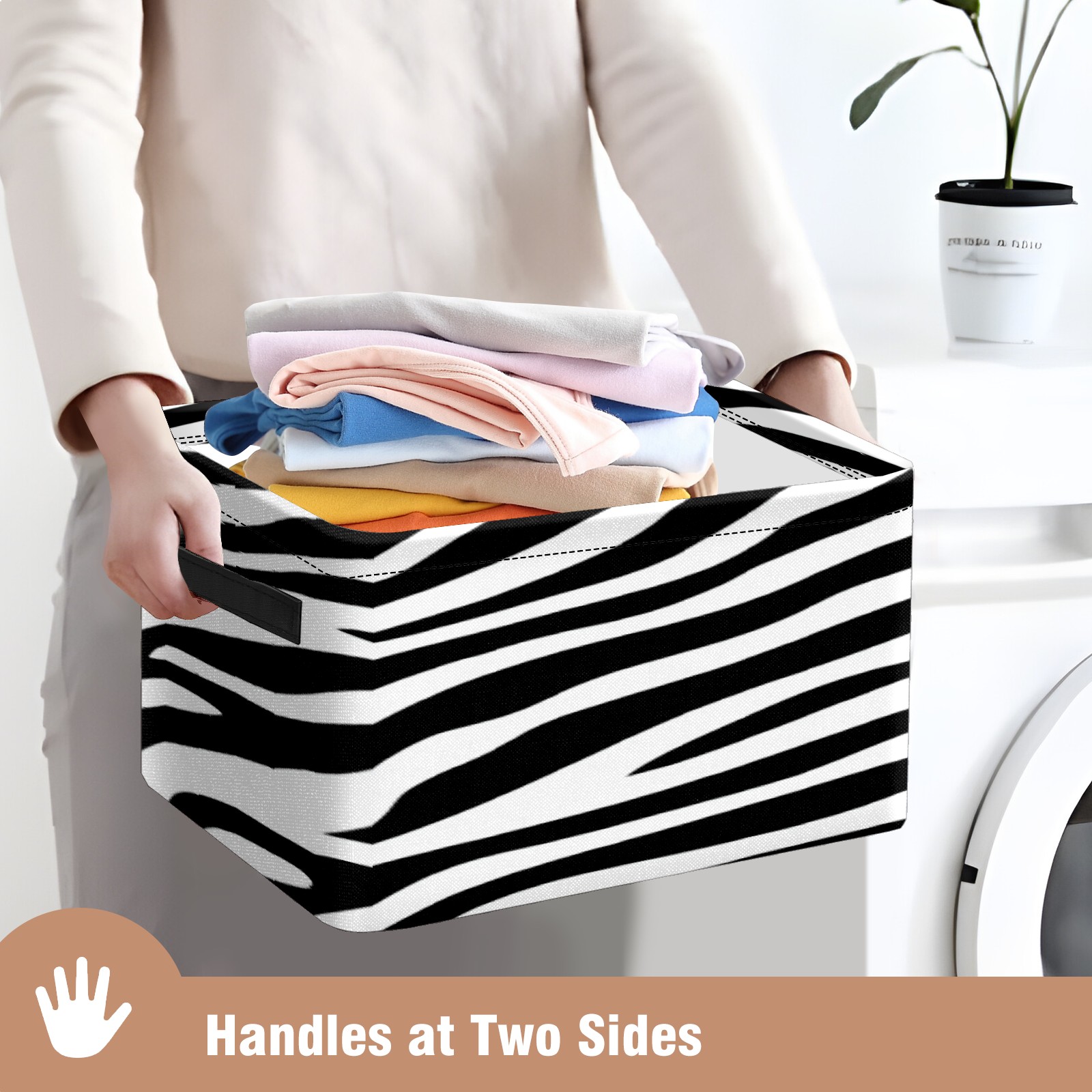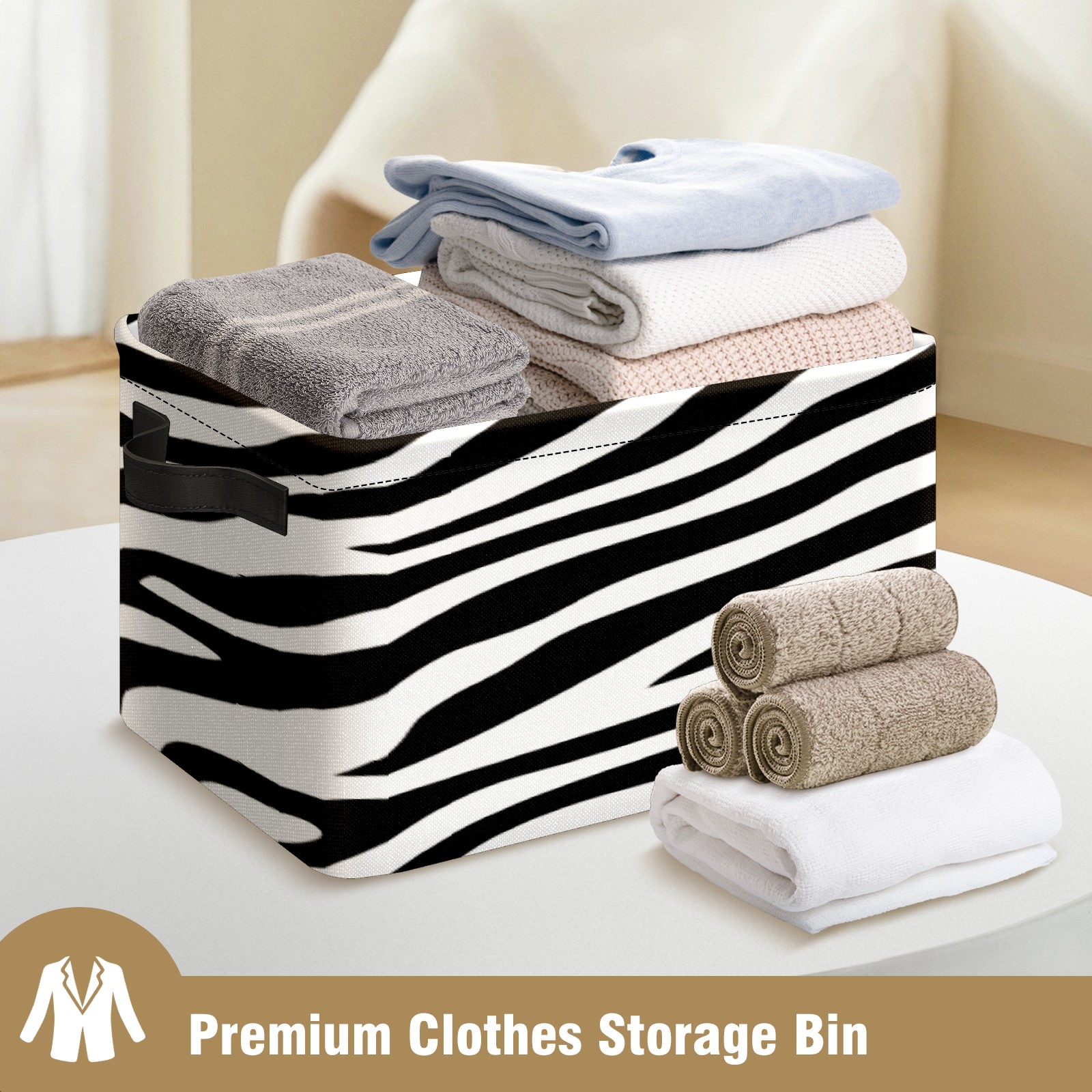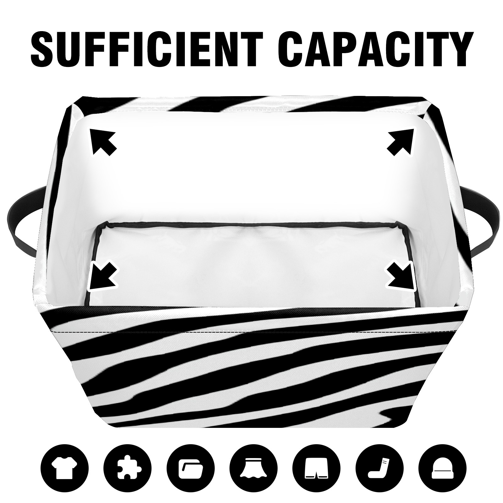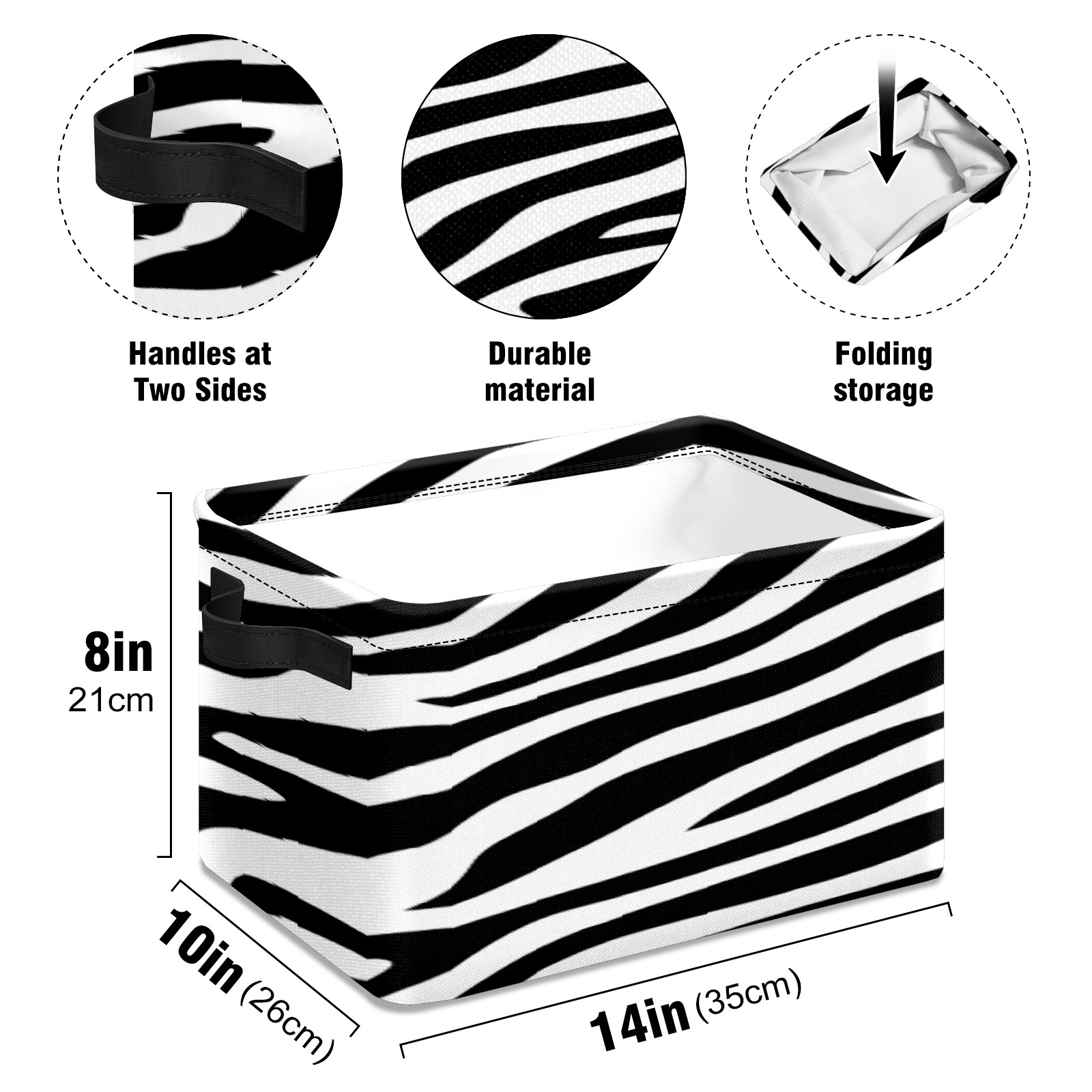 Foldable and Stackable Fabric Storage Basket for Home Organization with Handles, Decorative Closet Bins for Shelves, Laundry, and Toy Storage( Black And White Zebra Print)