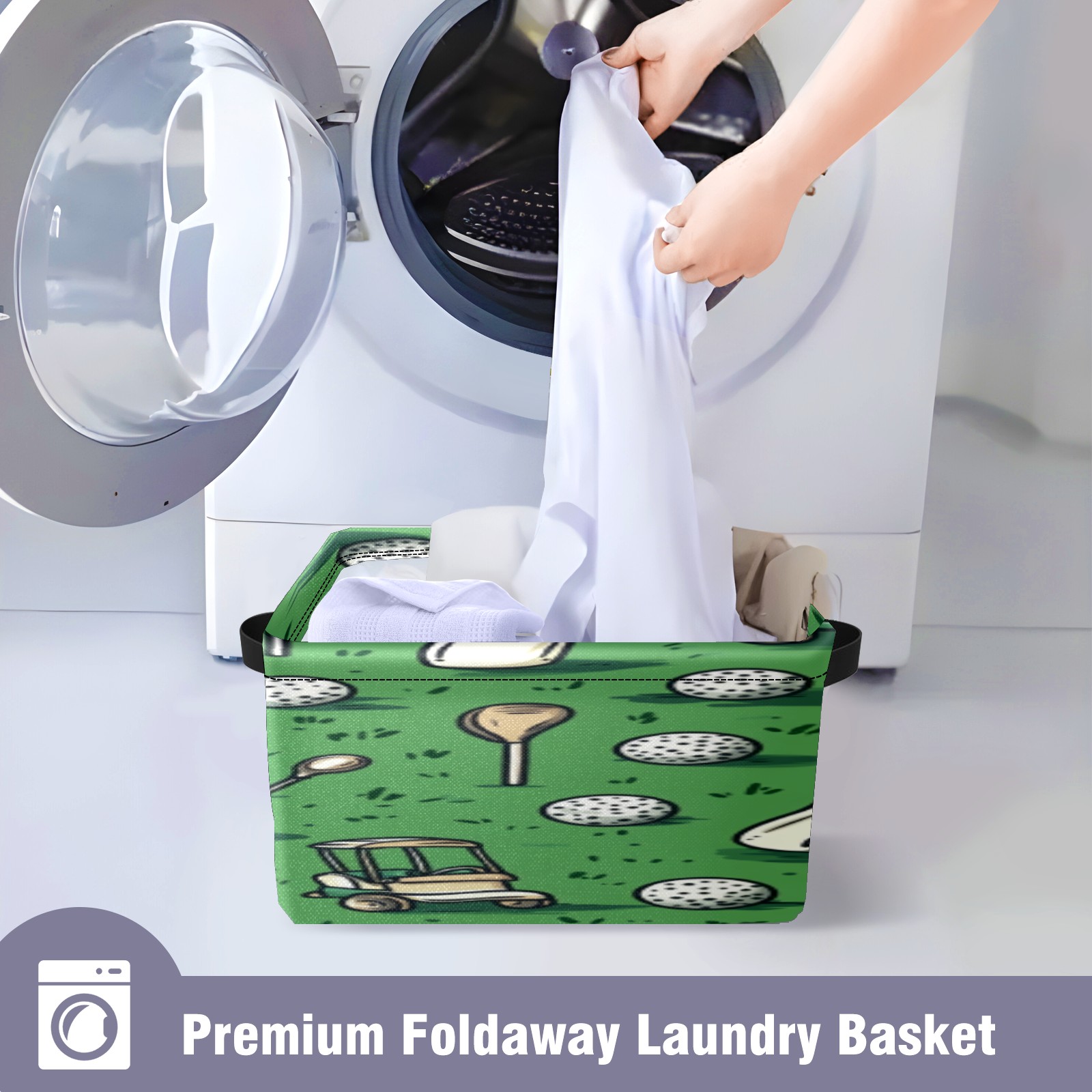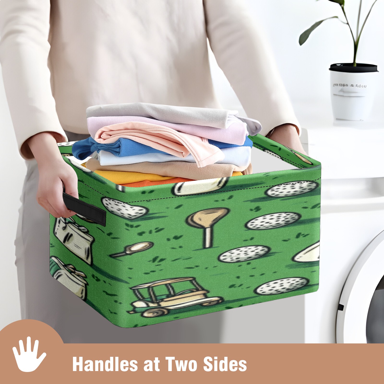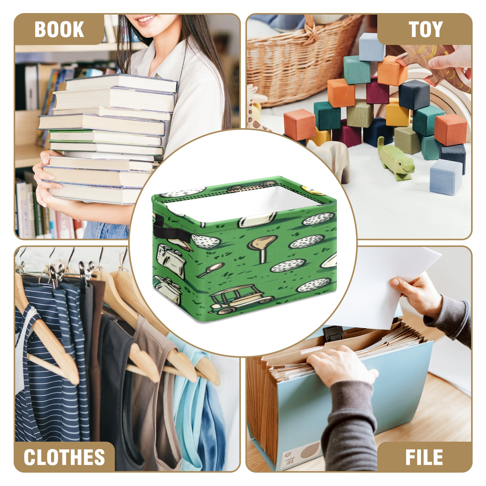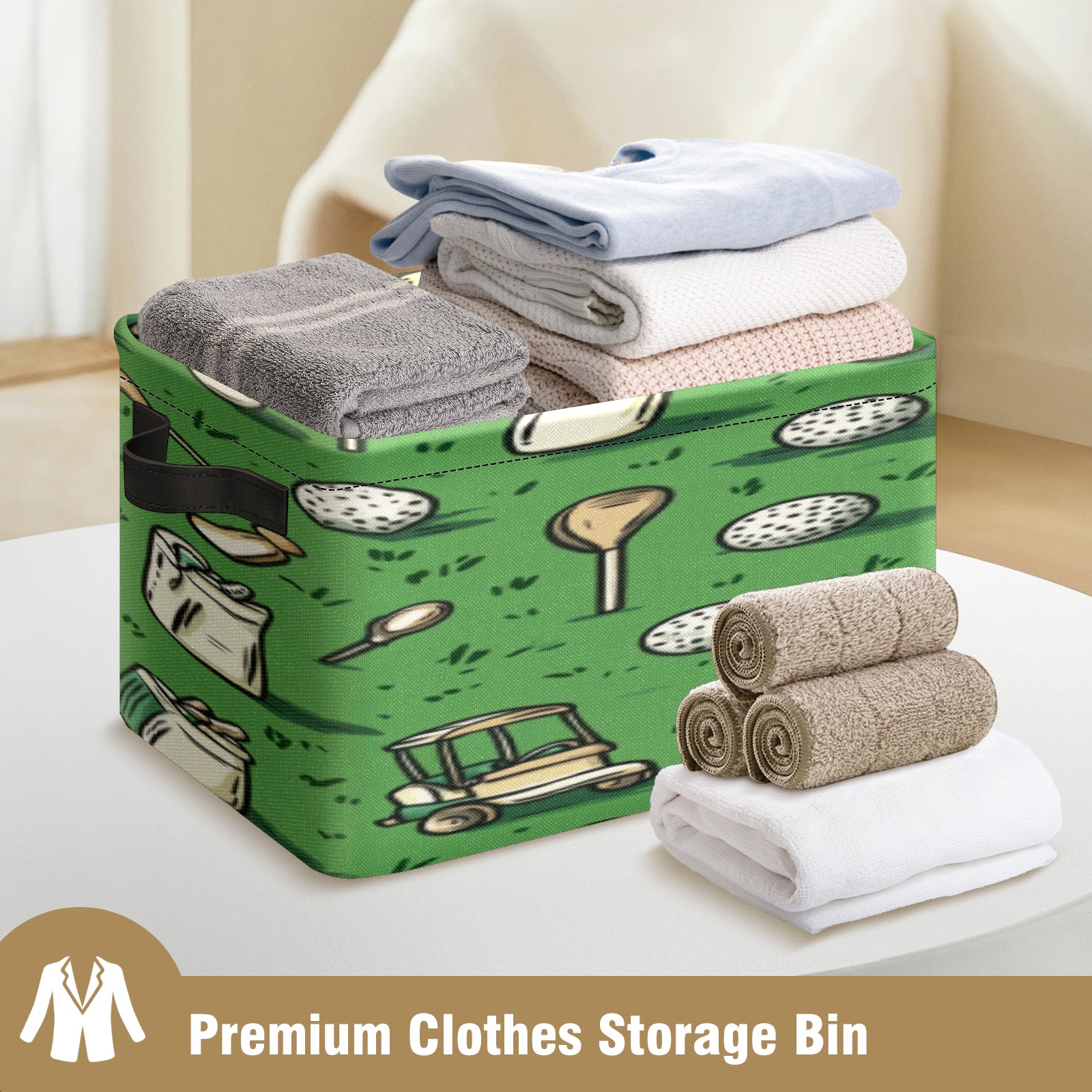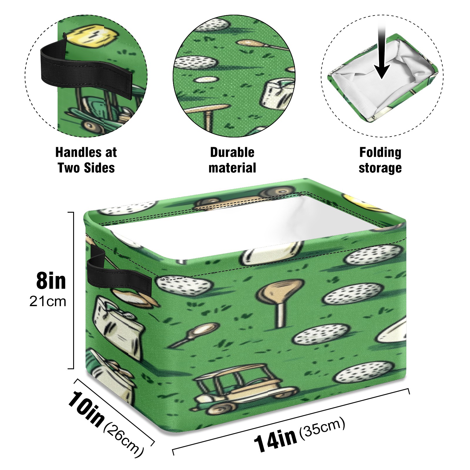 Foldable and Stackable Fabric Storage Basket for Home Organization with Handles, Decorative Closet Bins for Shelves, Laundry, and Toy Storage( Golf Balls And Club Bags)