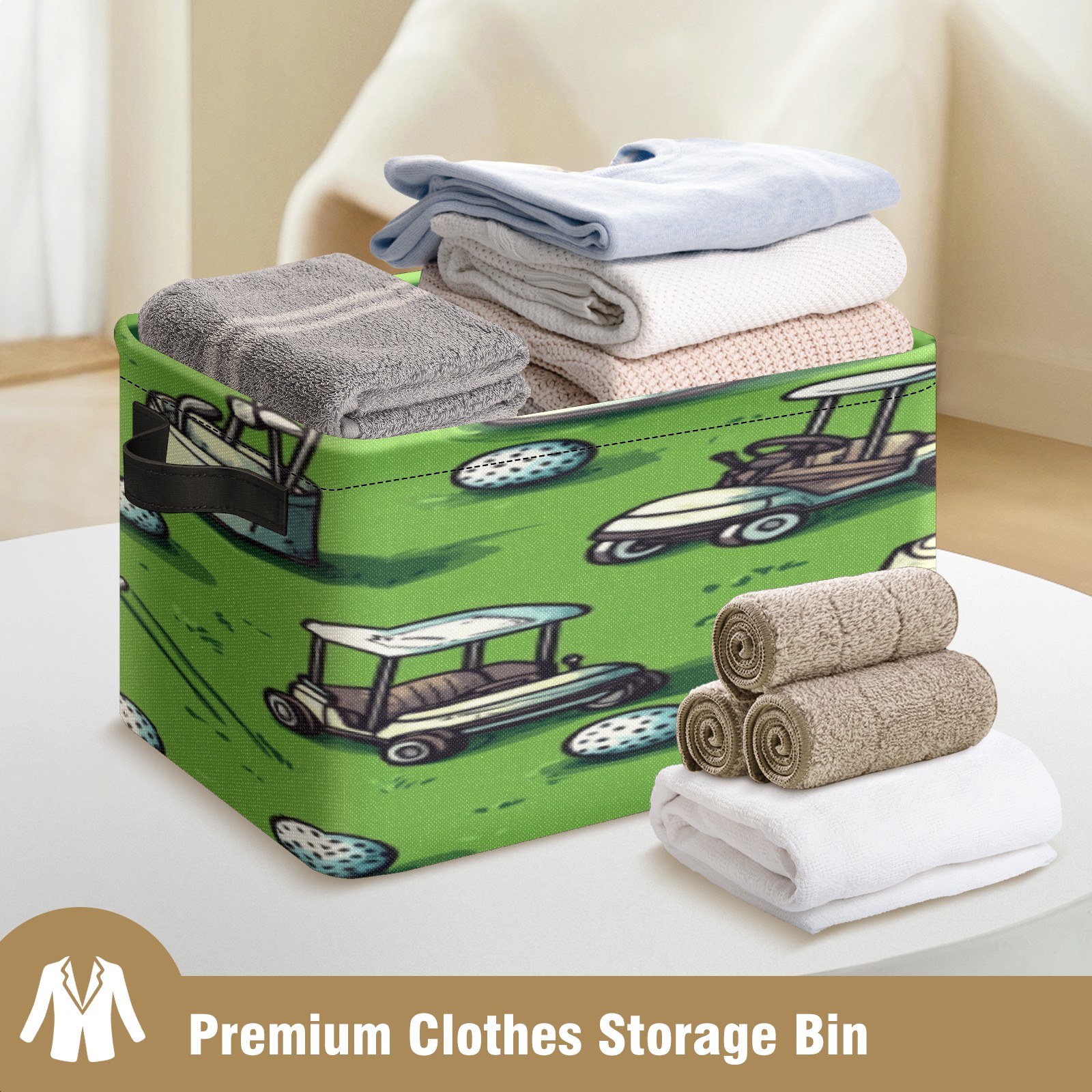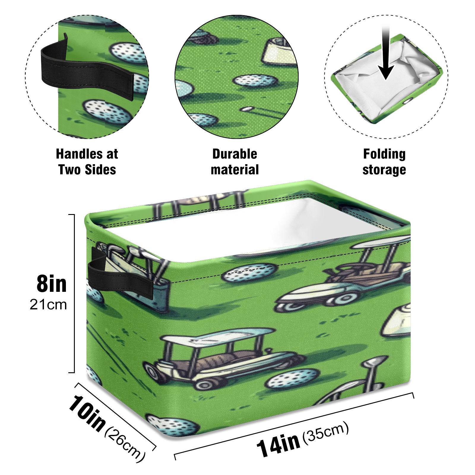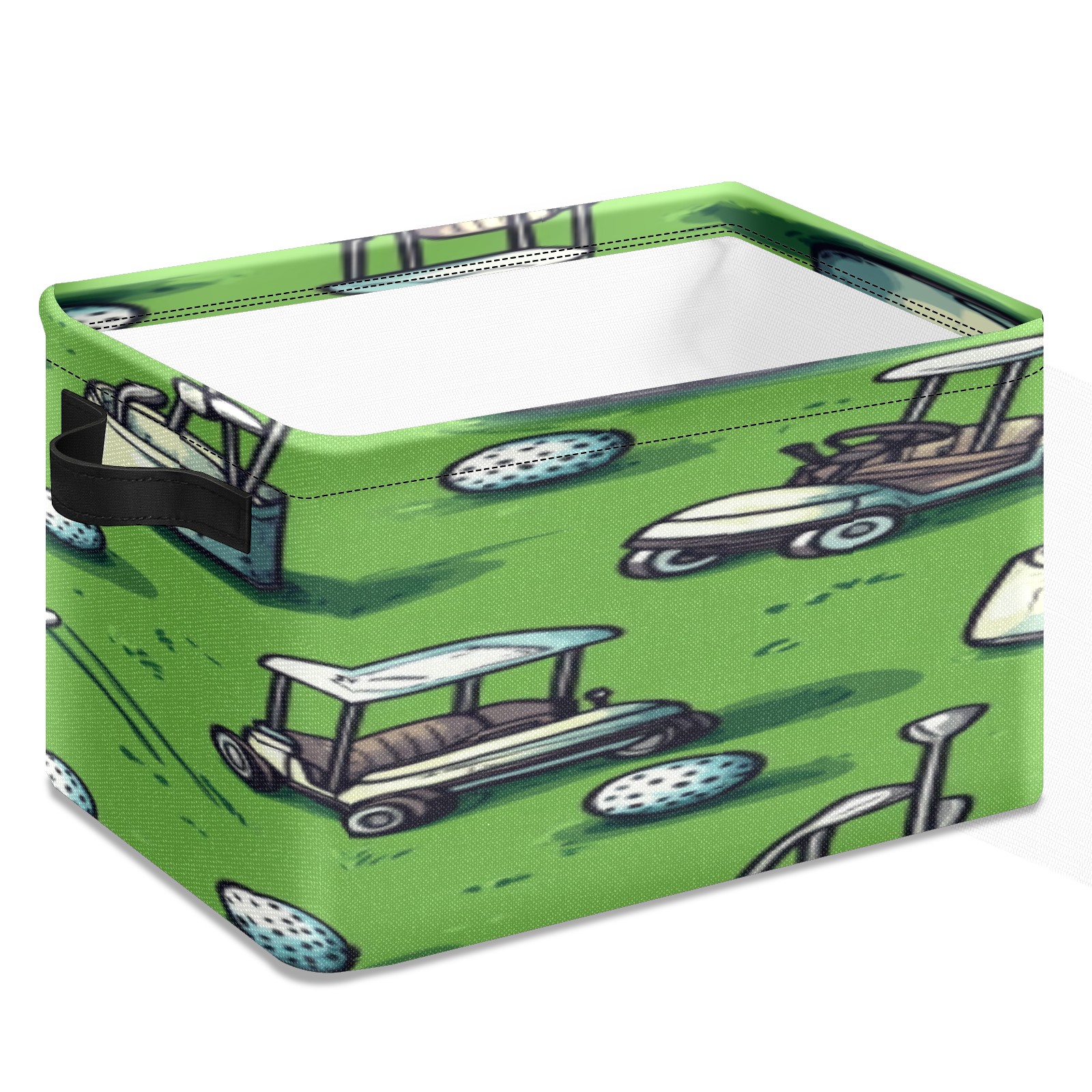 Foldable and Stackable Fabric Storage Basket for Home Organization with Handles, Decorative Closet Bins for Shelves, Laundry, and Toy Storage( Golf Balls And Carts)