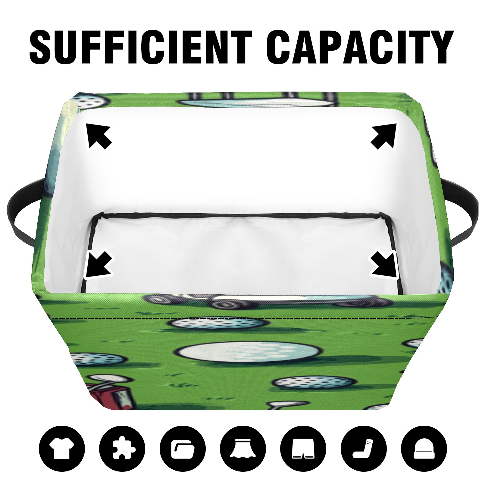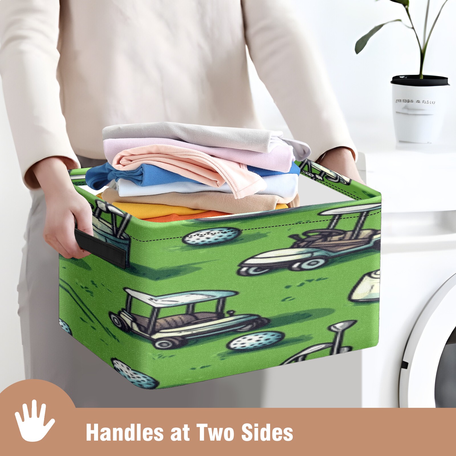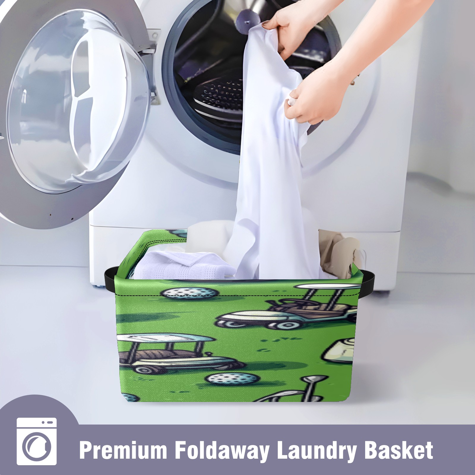 Foldable and Stackable Fabric Storage Basket for Home Organization with Handles, Decorative Closet Bins for Shelves, Laundry, and Toy Storage( Golf Balls And Carts)