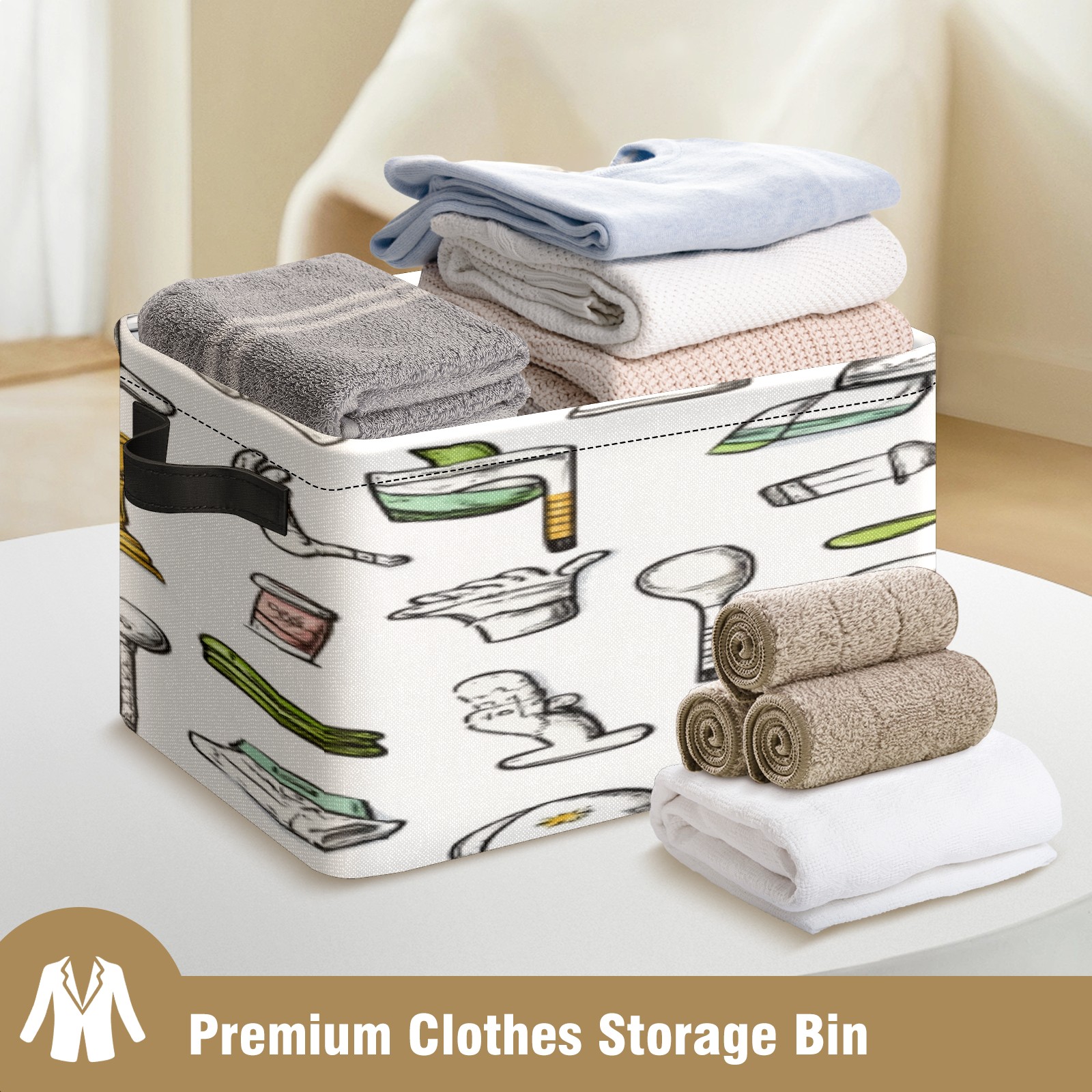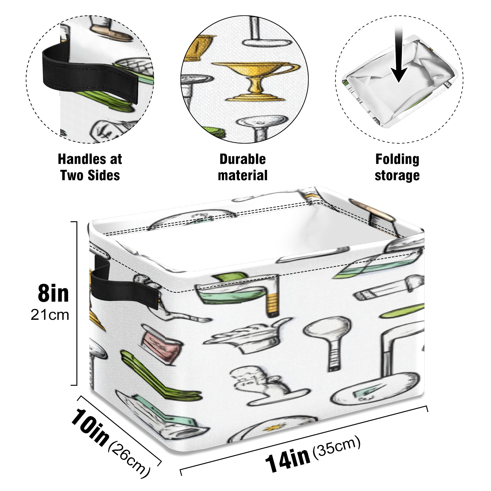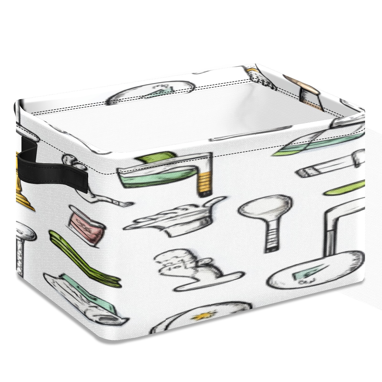Foldable and Stackable Fabric Storage Basket for Home Organization with Handles, Decorative Closet Bins for Shelves, Laundry, and Toy Storage( Hand-drawn Golf Pattern)