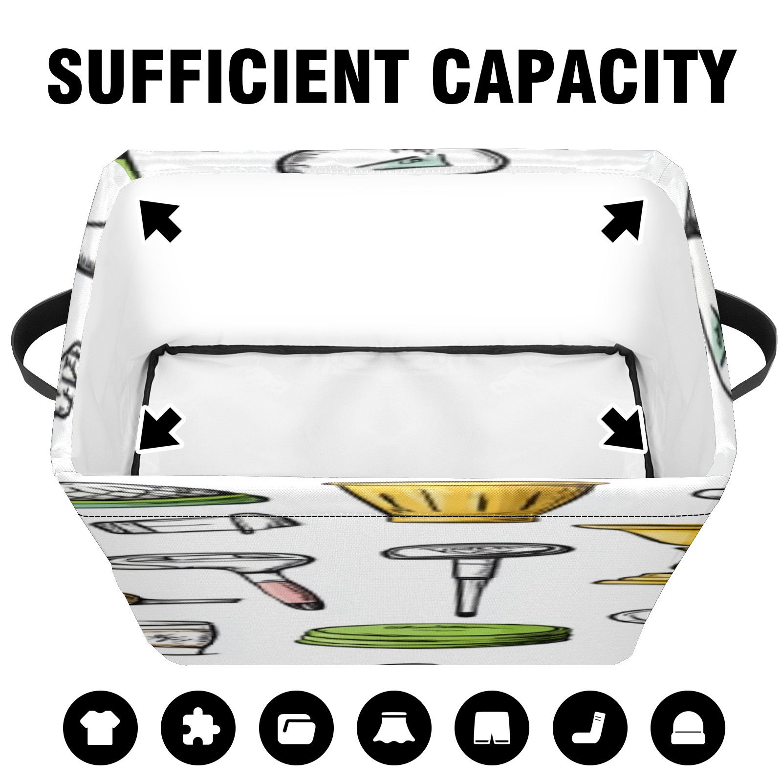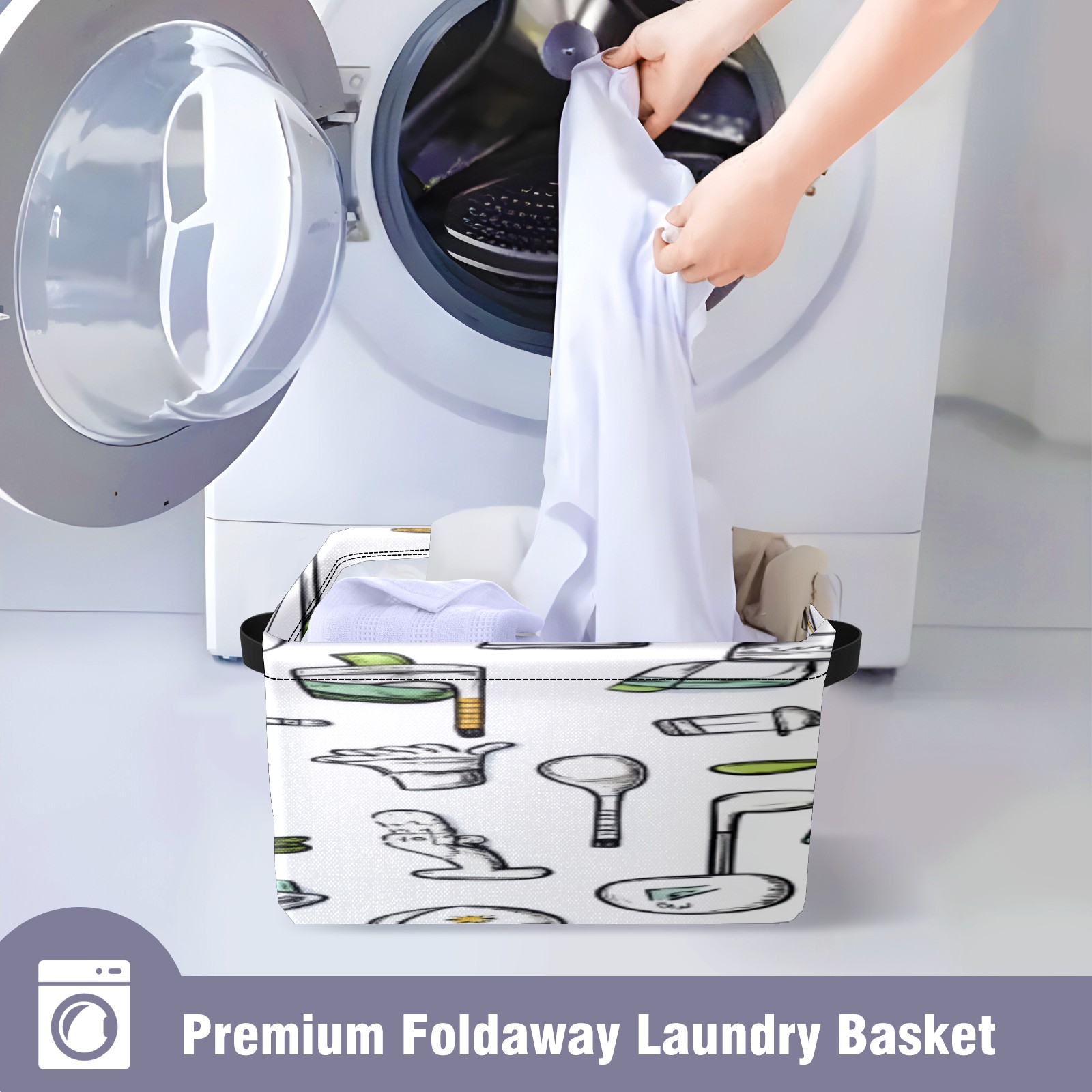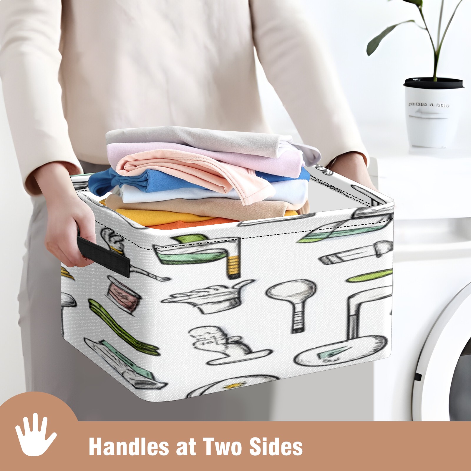 Foldable and Stackable Fabric Storage Basket for Home Organization with Handles, Decorative Closet Bins for Shelves, Laundry, and Toy Storage( Hand-drawn Golf Pattern)