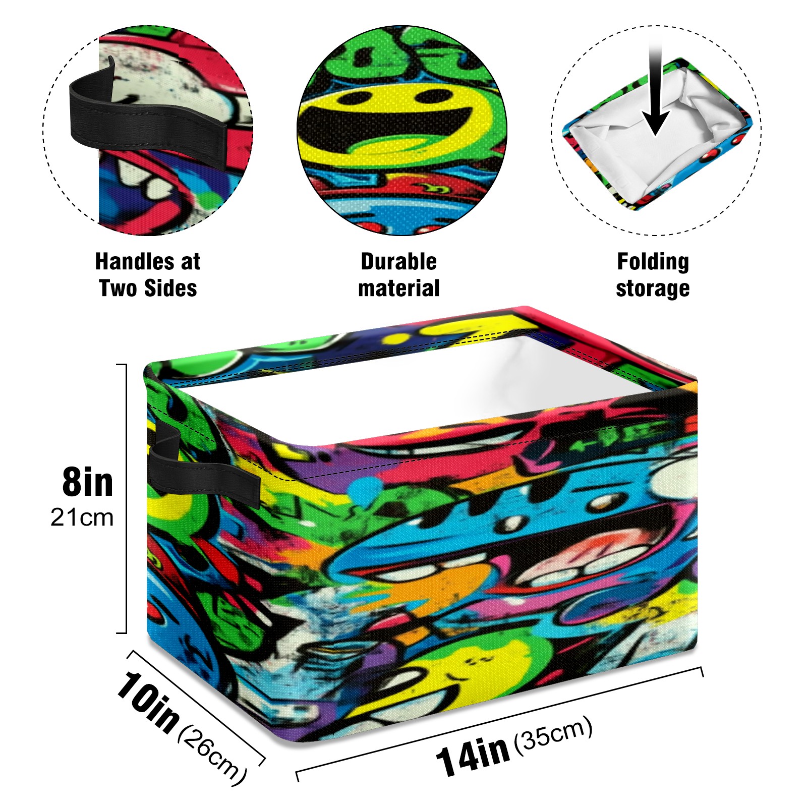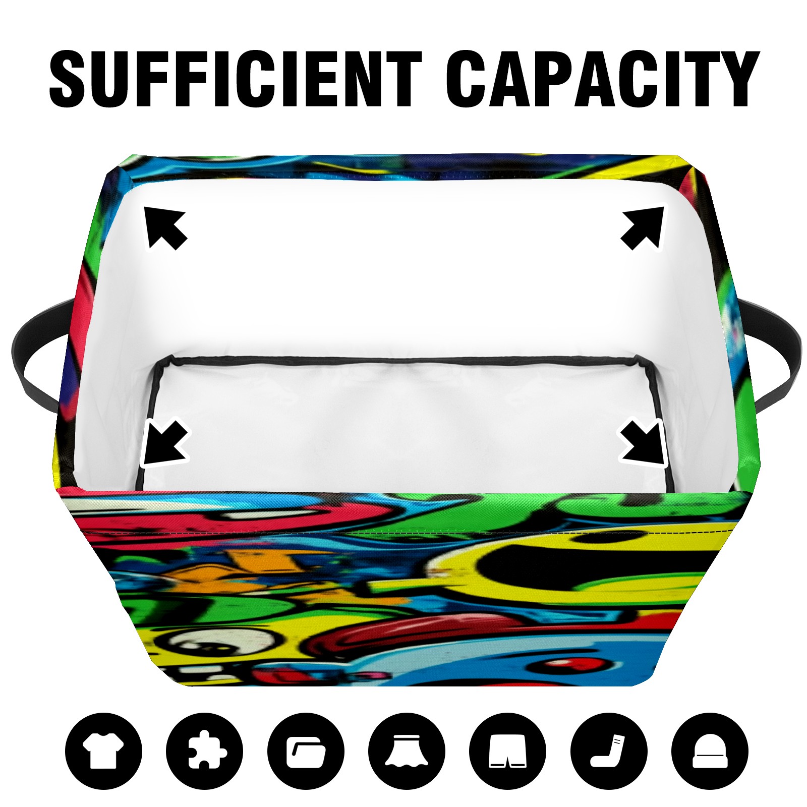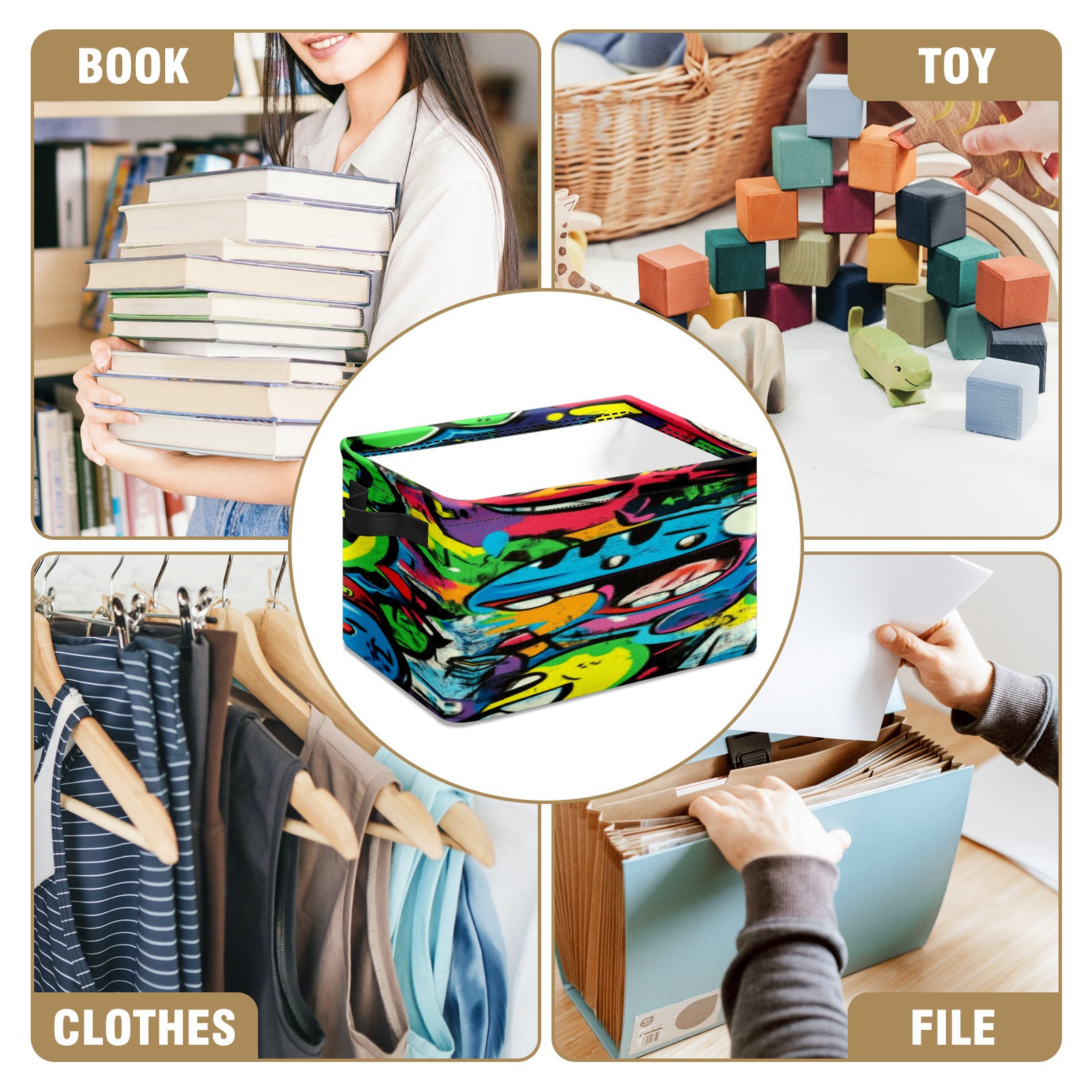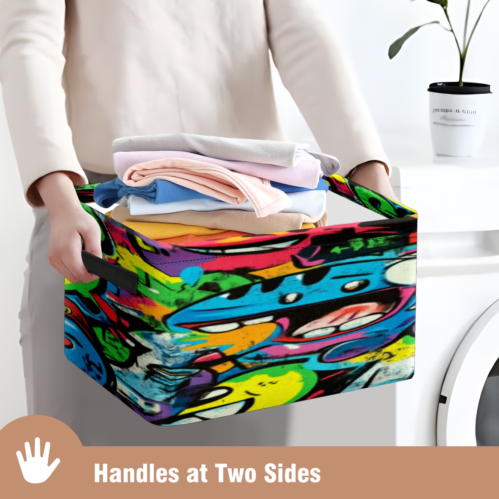 Foldable and Stackable Fabric Storage Basket for Home Organization with Handles, Decorative Closet Bins for Shelves, Laundry, and Toy Storage( Vibrant Cartoon-style Pattern)