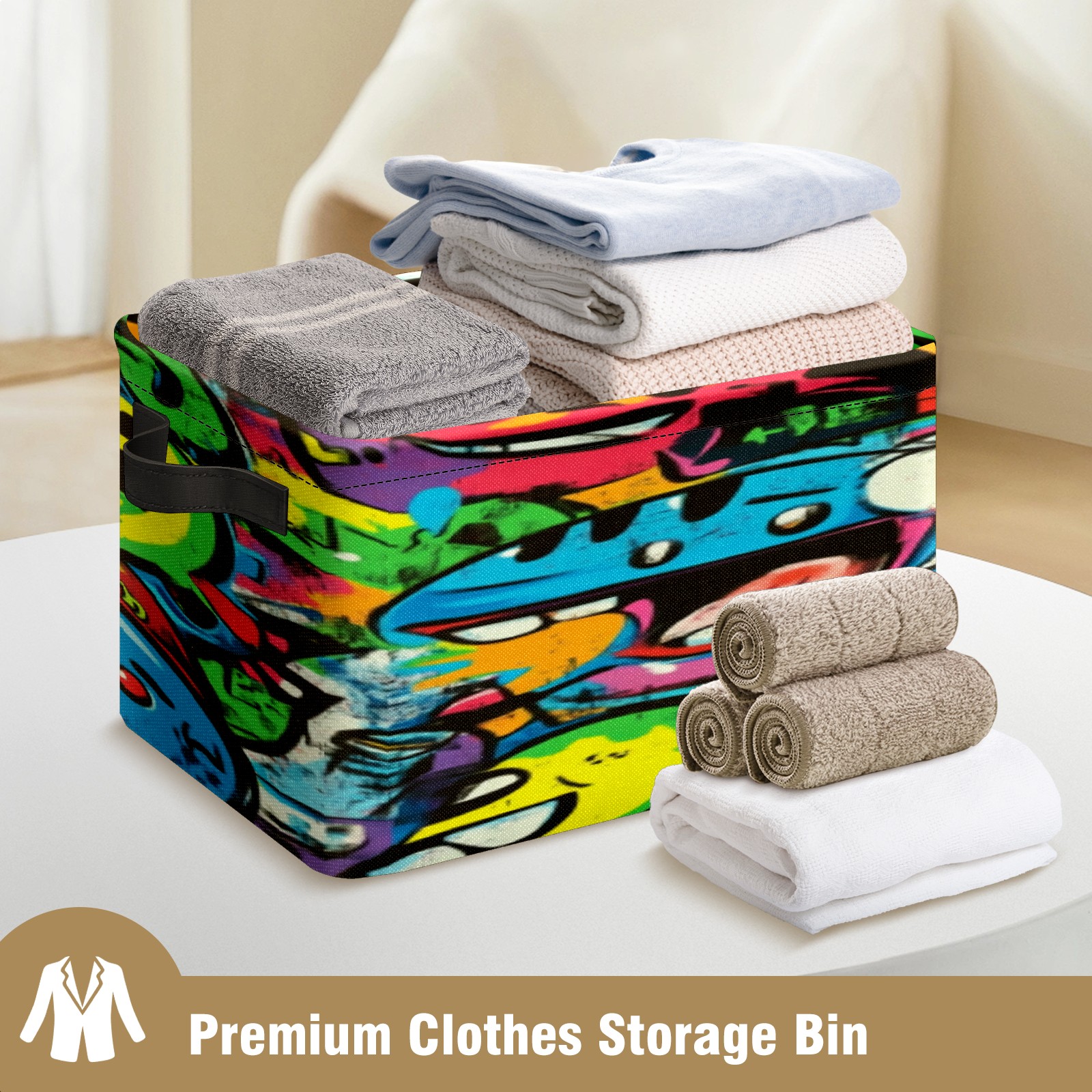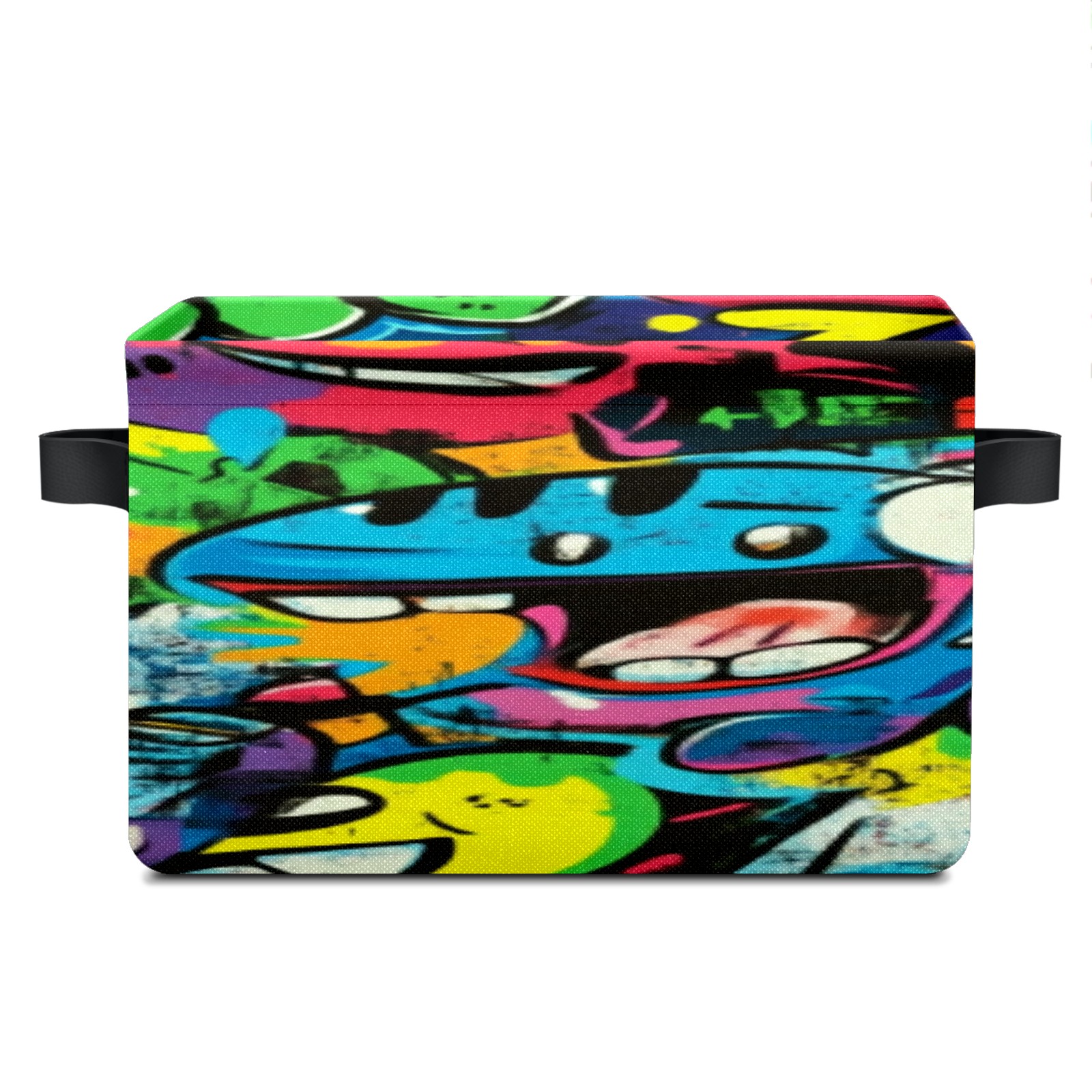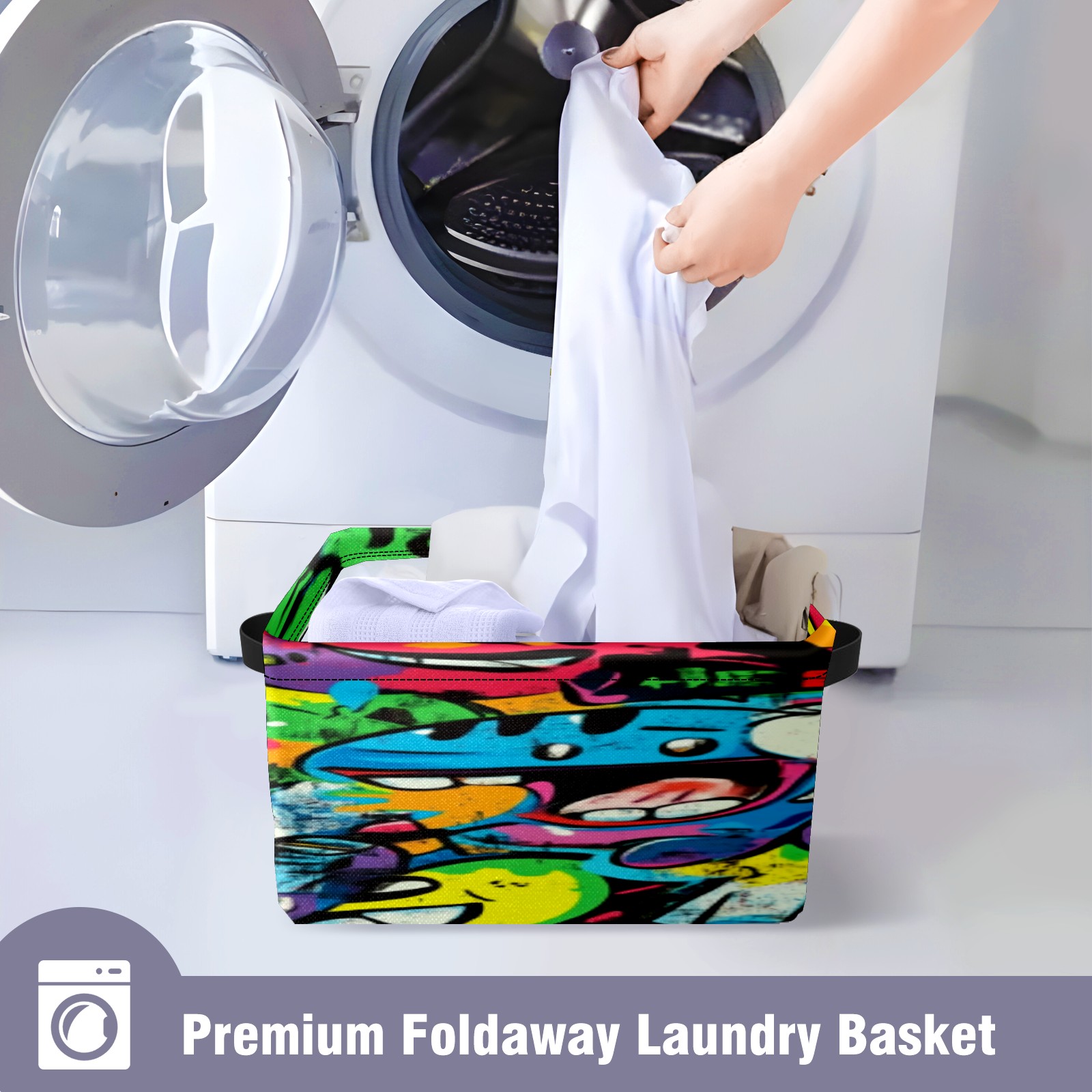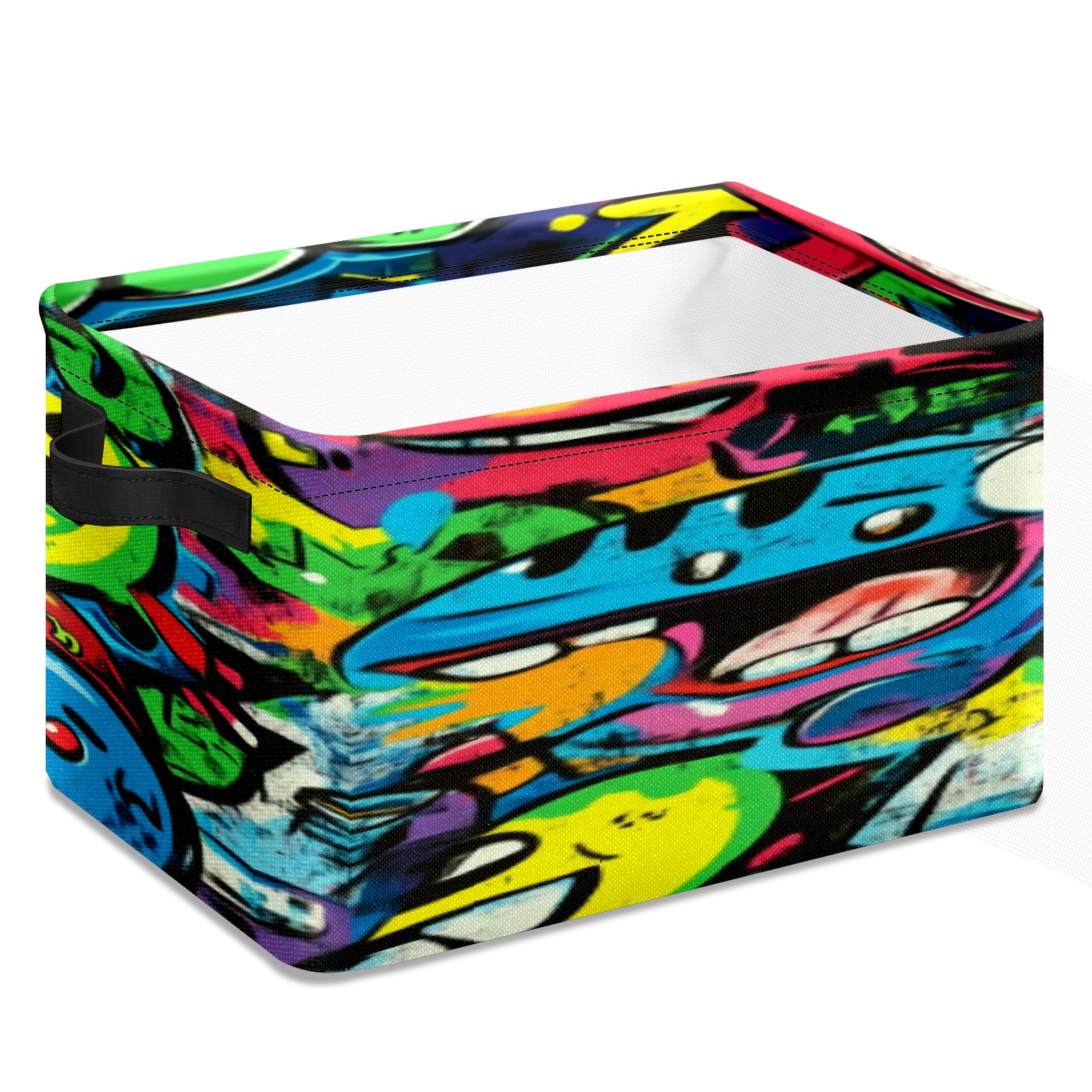 Foldable and Stackable Fabric Storage Basket for Home Organization with Handles, Decorative Closet Bins for Shelves, Laundry, and Toy Storage( Vibrant Cartoon-style Pattern)