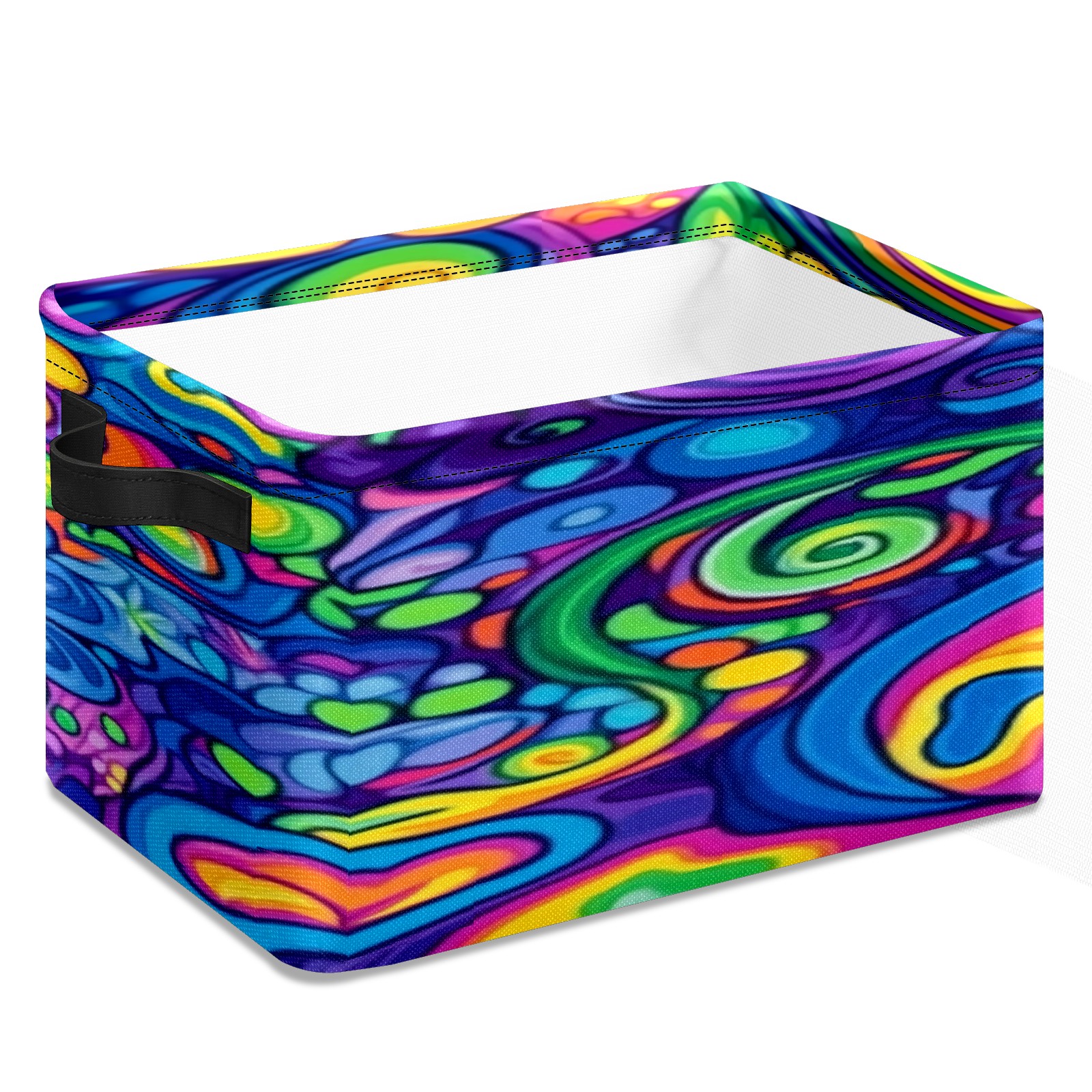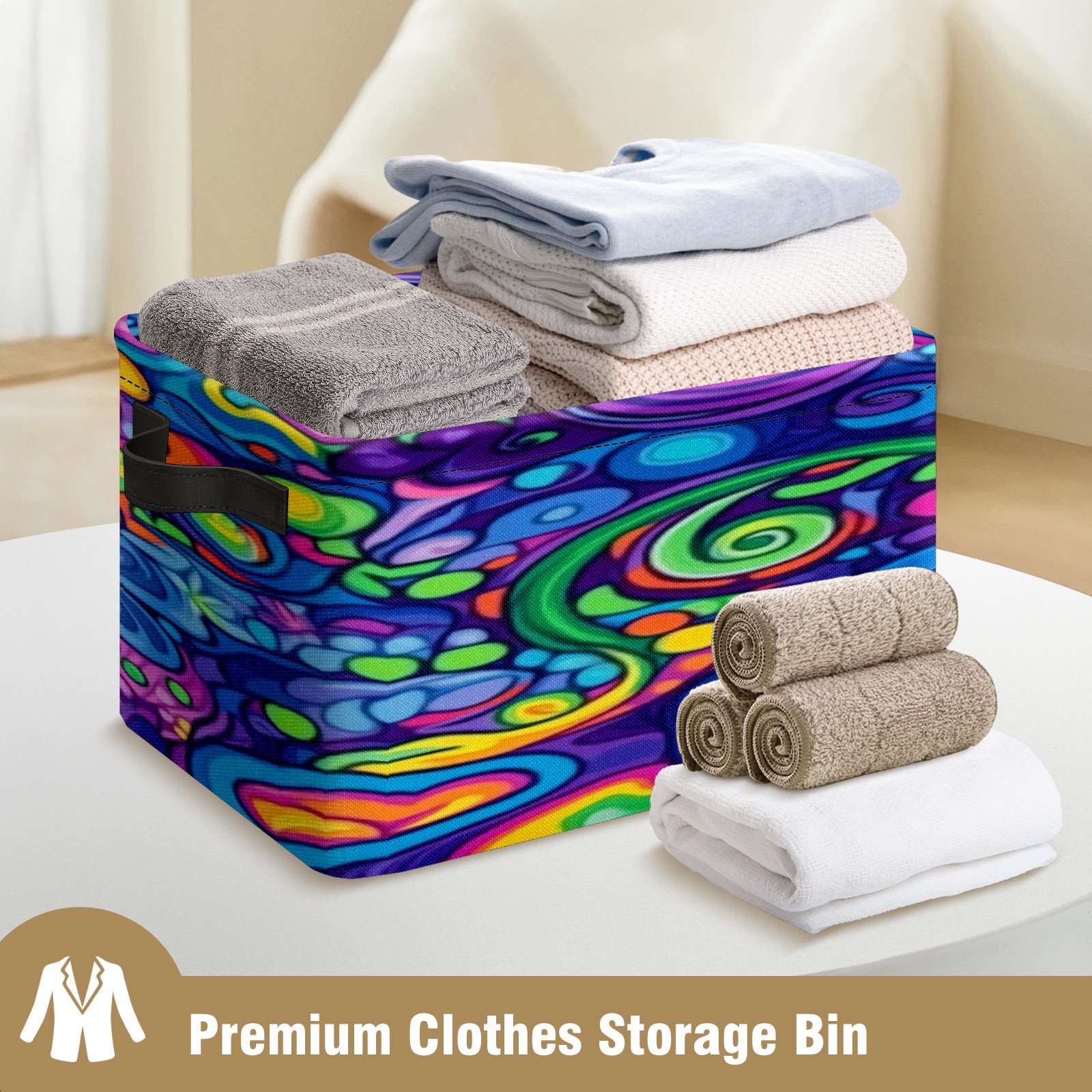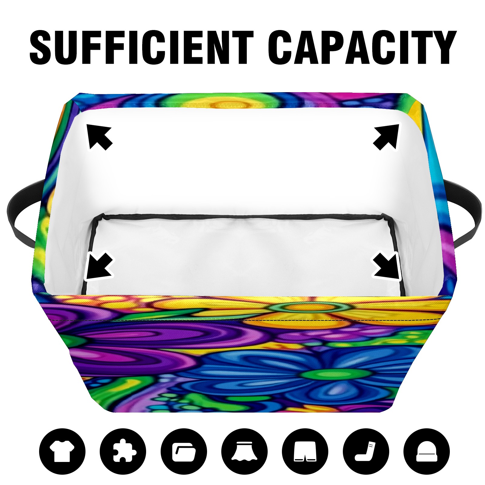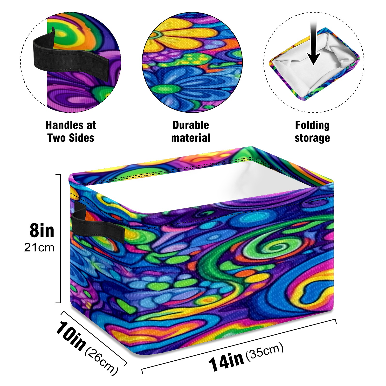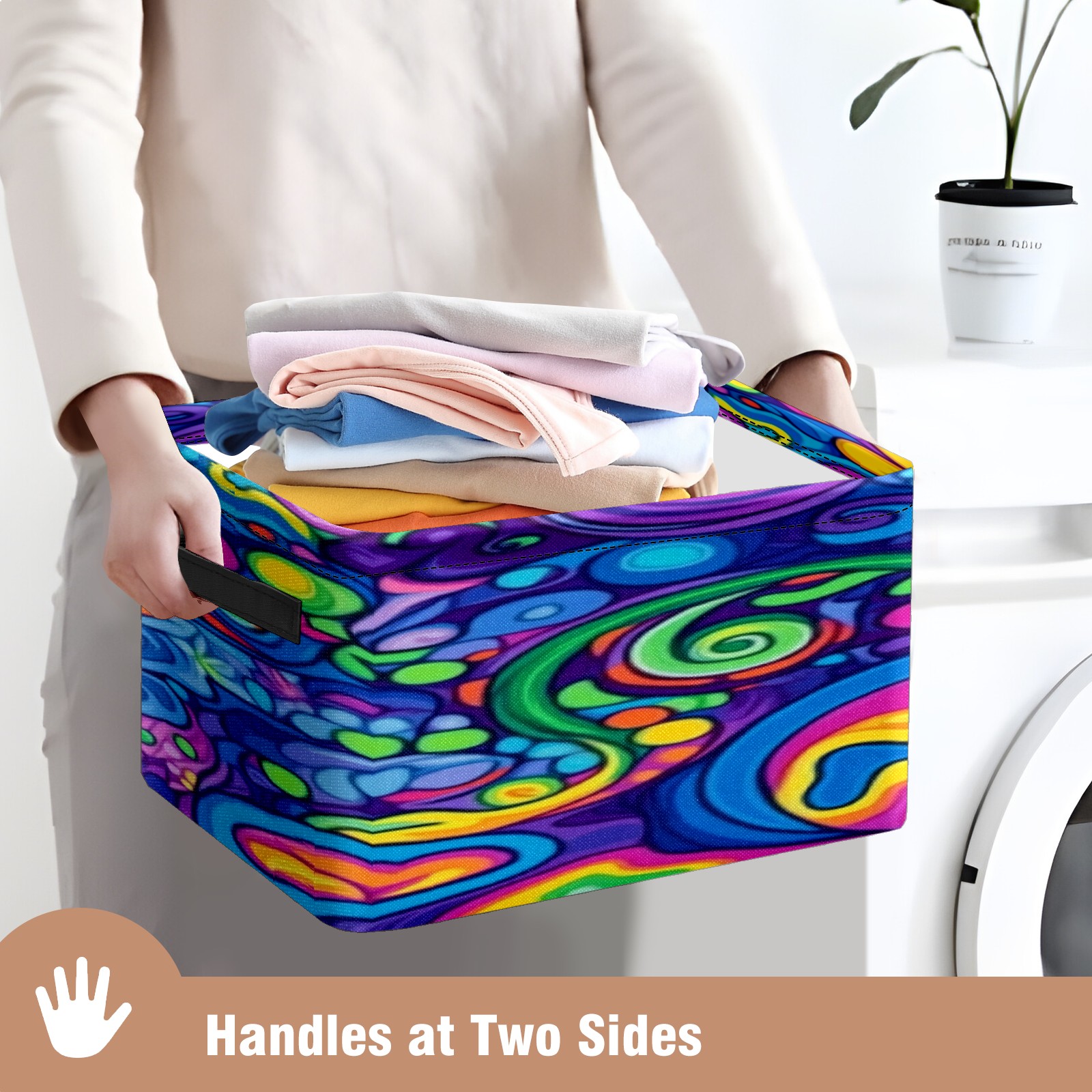 Foldable and Stackable Fabric Storage Basket for Home Organization with Handles, Decorative Closet Bins for Shelves, Laundry, and Toy Storage( Psychedelic Patterns)