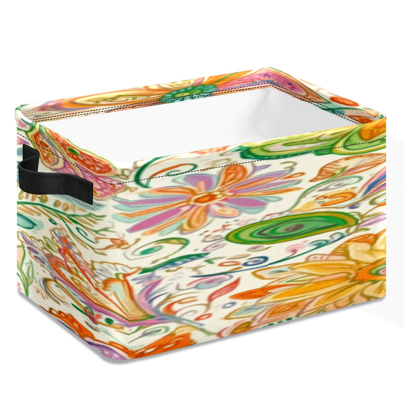 Foldable and Stackable Fabric Storage Basket for Home Organization with Handles, Decorative Closet Bins for Shelves, Laundry, and Toy Storage( Intricate Doodle)