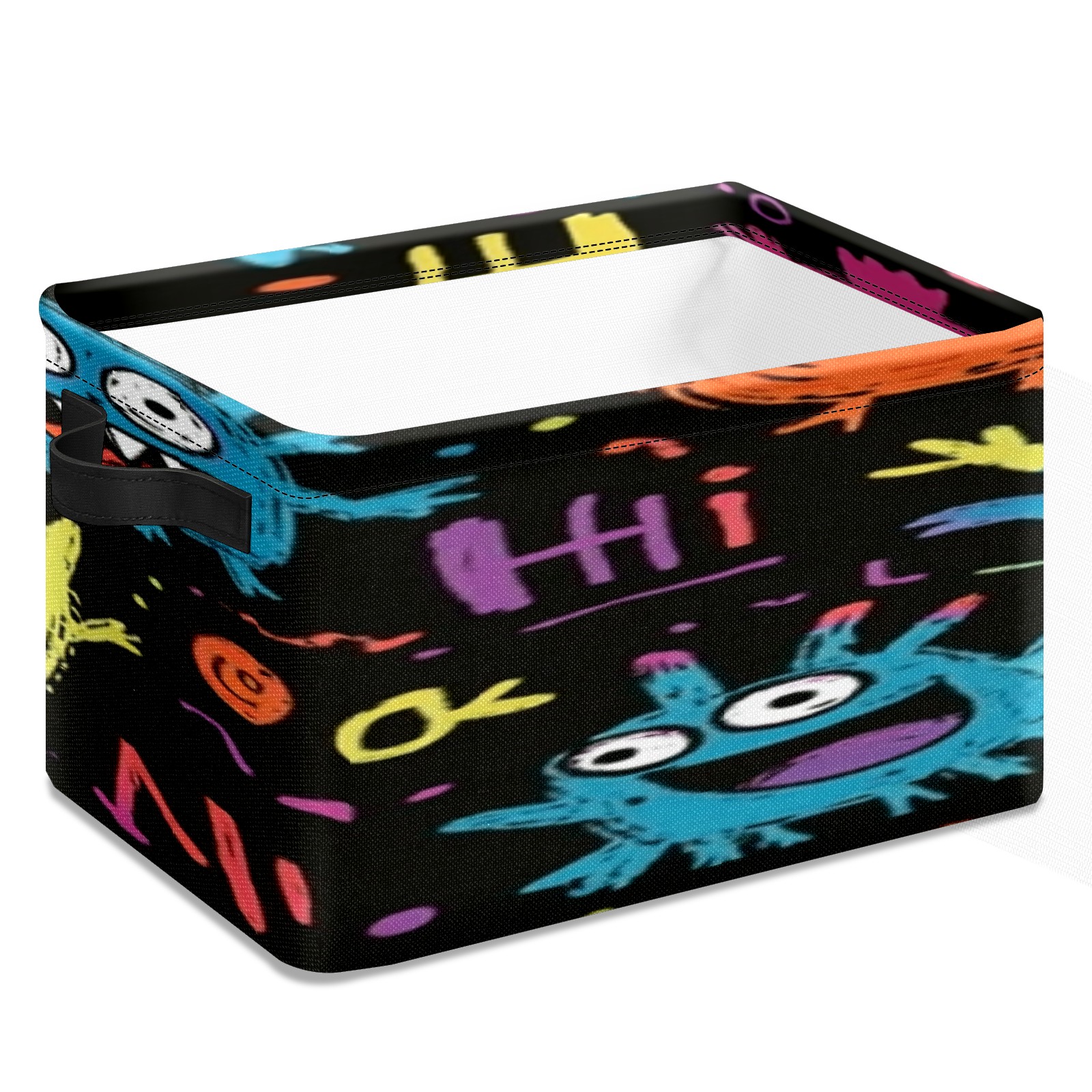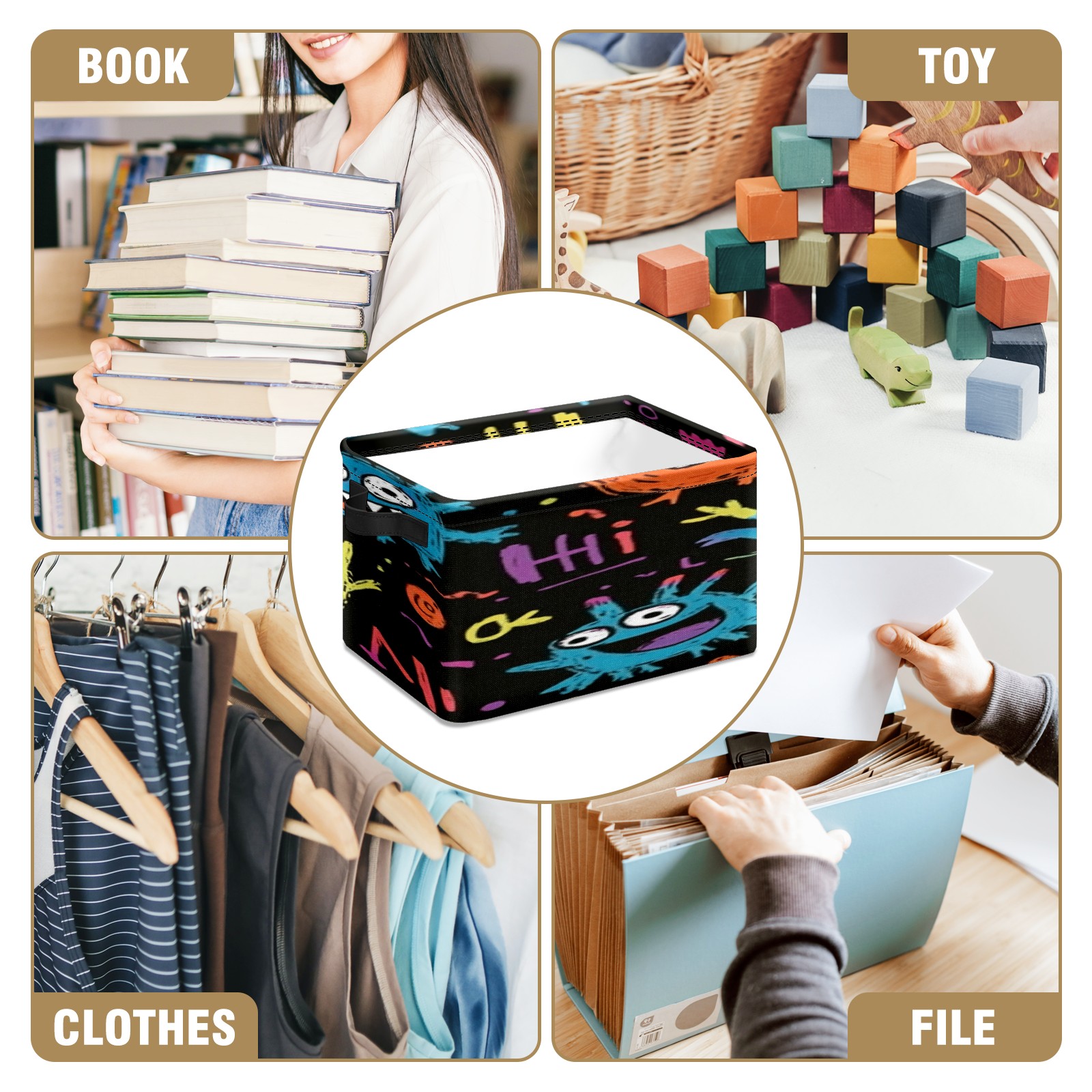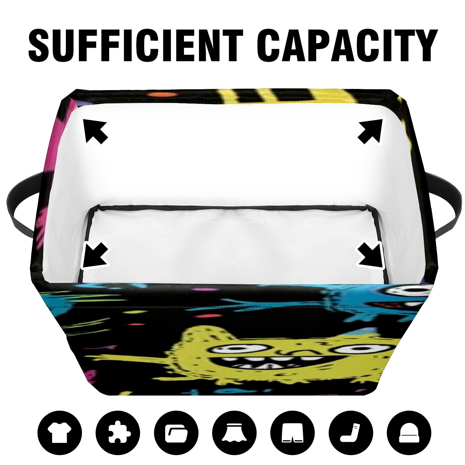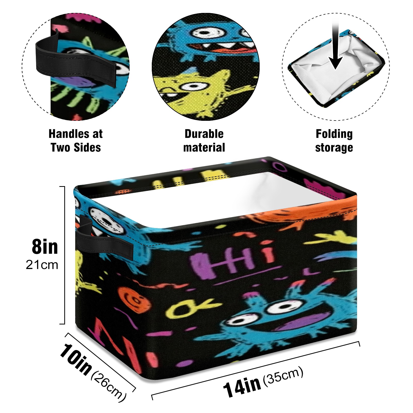 Foldable and Stackable Fabric Storage Basket for Home Organization with Handles, Decorative Closet Bins for Shelves, Laundry, and Toy Storage( Cute Cartoon Monsters)
