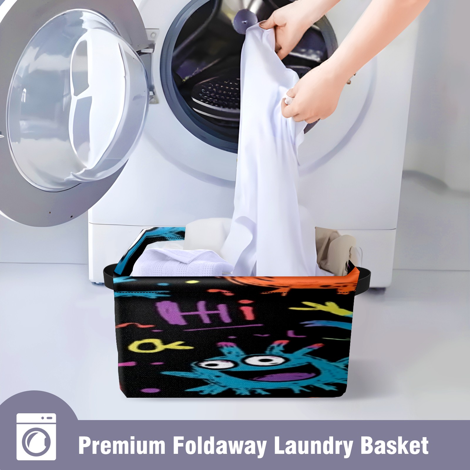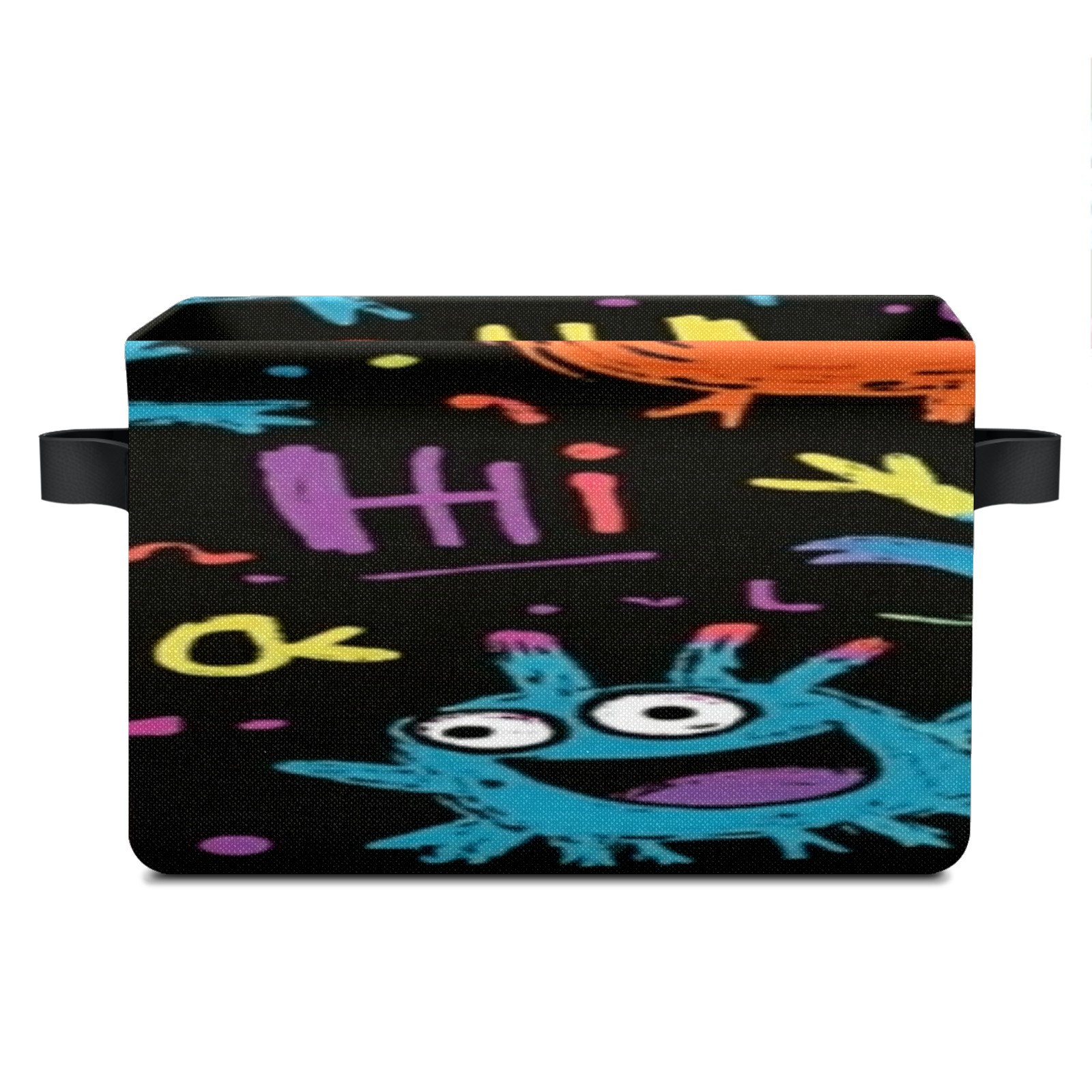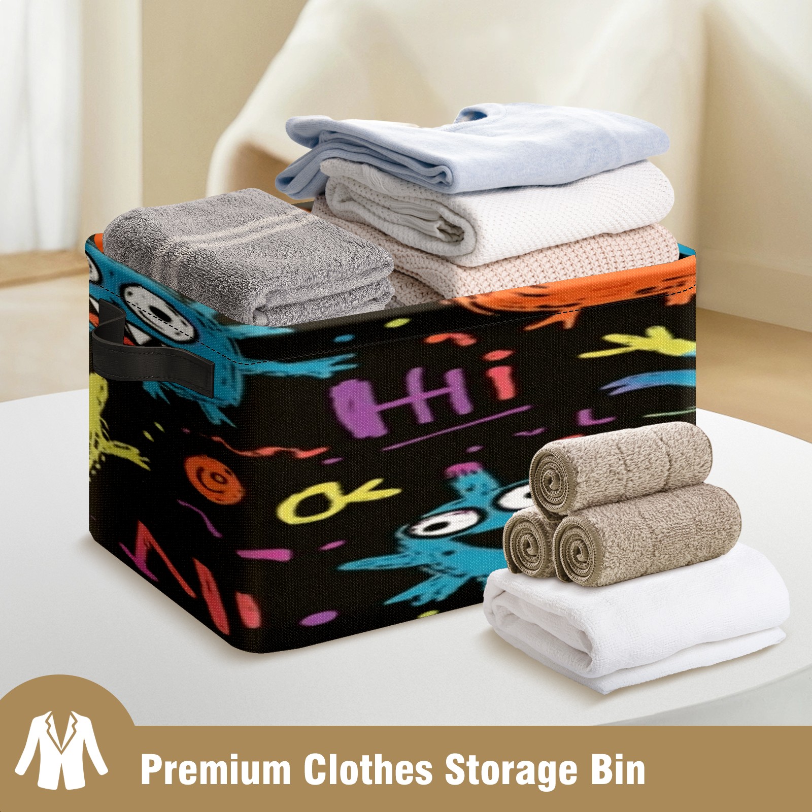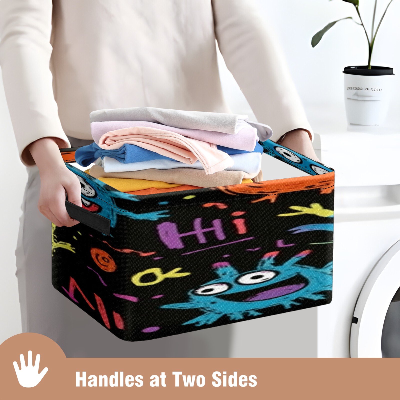 Foldable and Stackable Fabric Storage Basket for Home Organization with Handles, Decorative Closet Bins for Shelves, Laundry, and Toy Storage( Cute Cartoon Monsters)