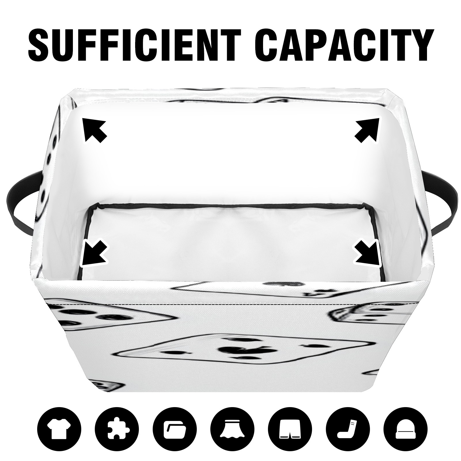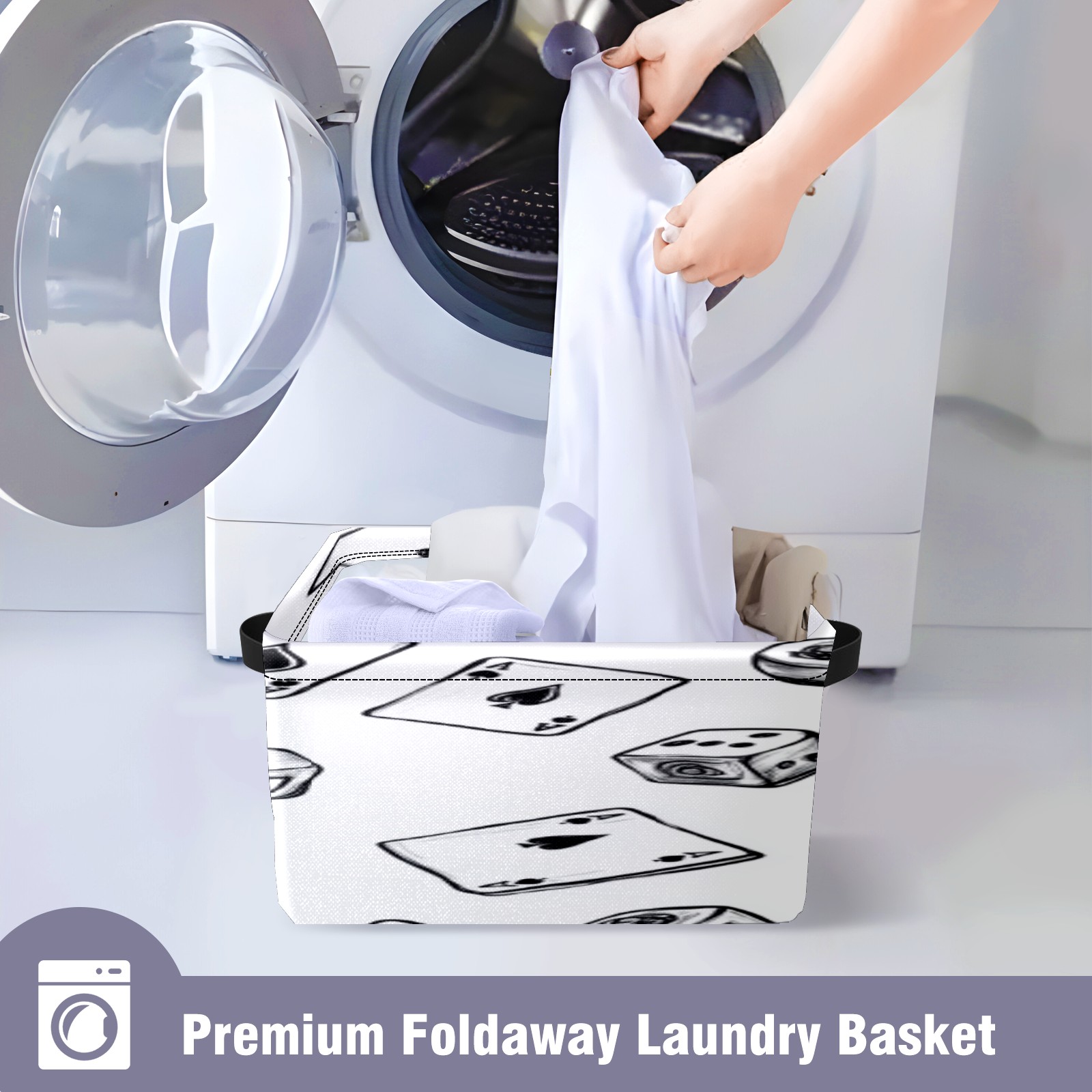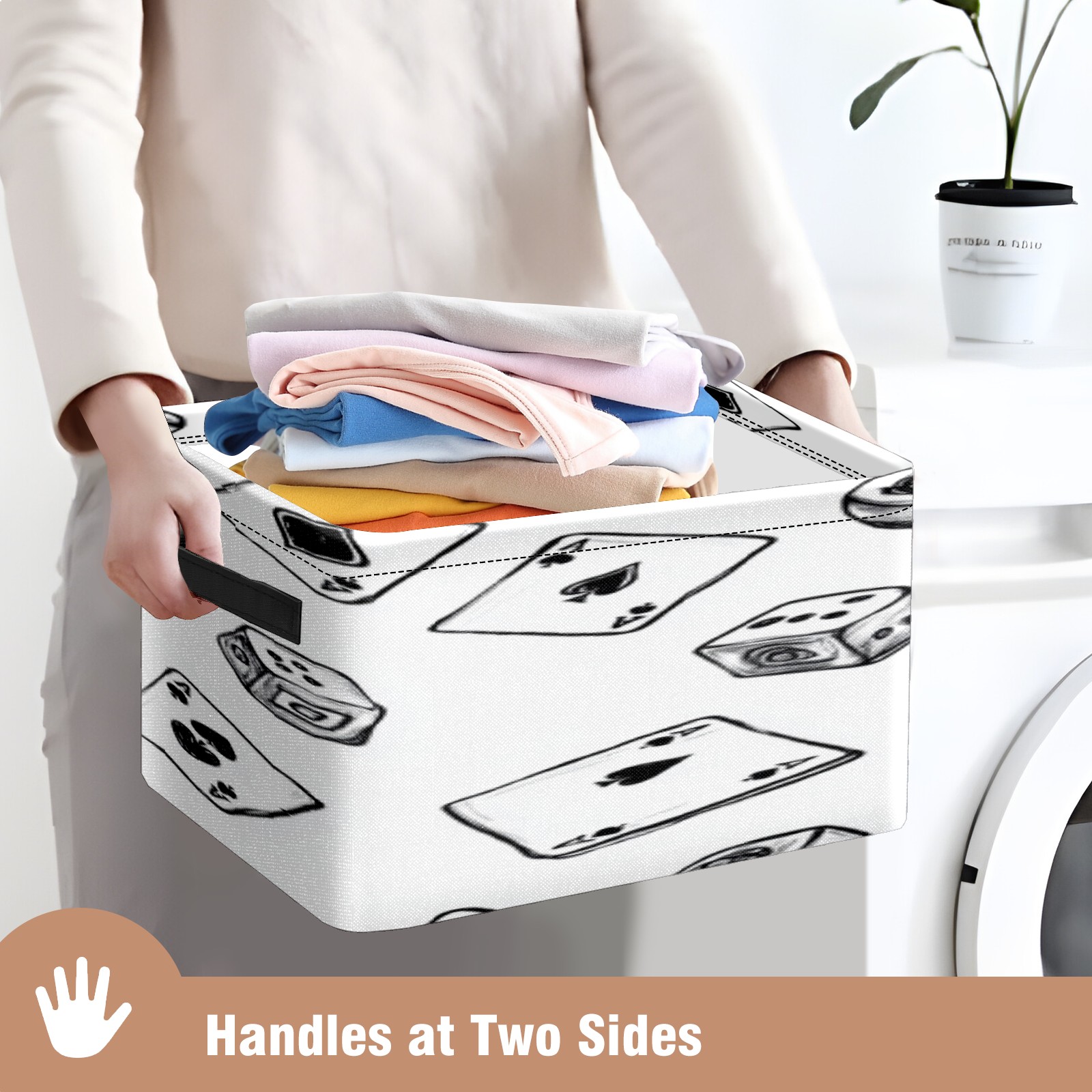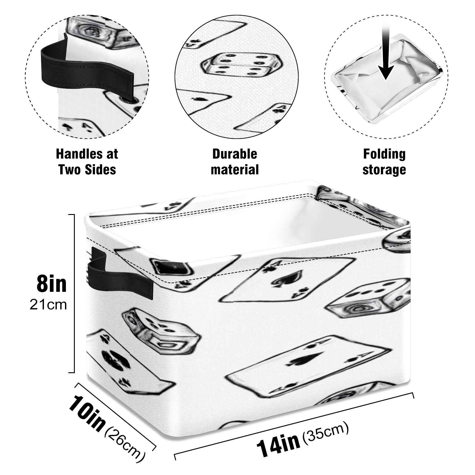 Foldable and Stackable Fabric Storage Basket for Home Organization with Handles, Decorative Closet Bins for Shelves, Laundry, and Toy Storage( Hand-drawn Cards Dice And Poker)