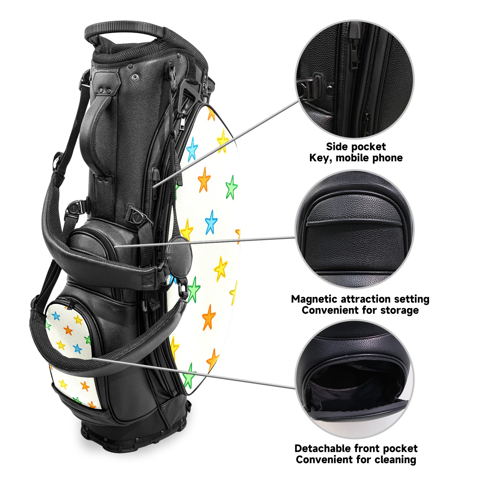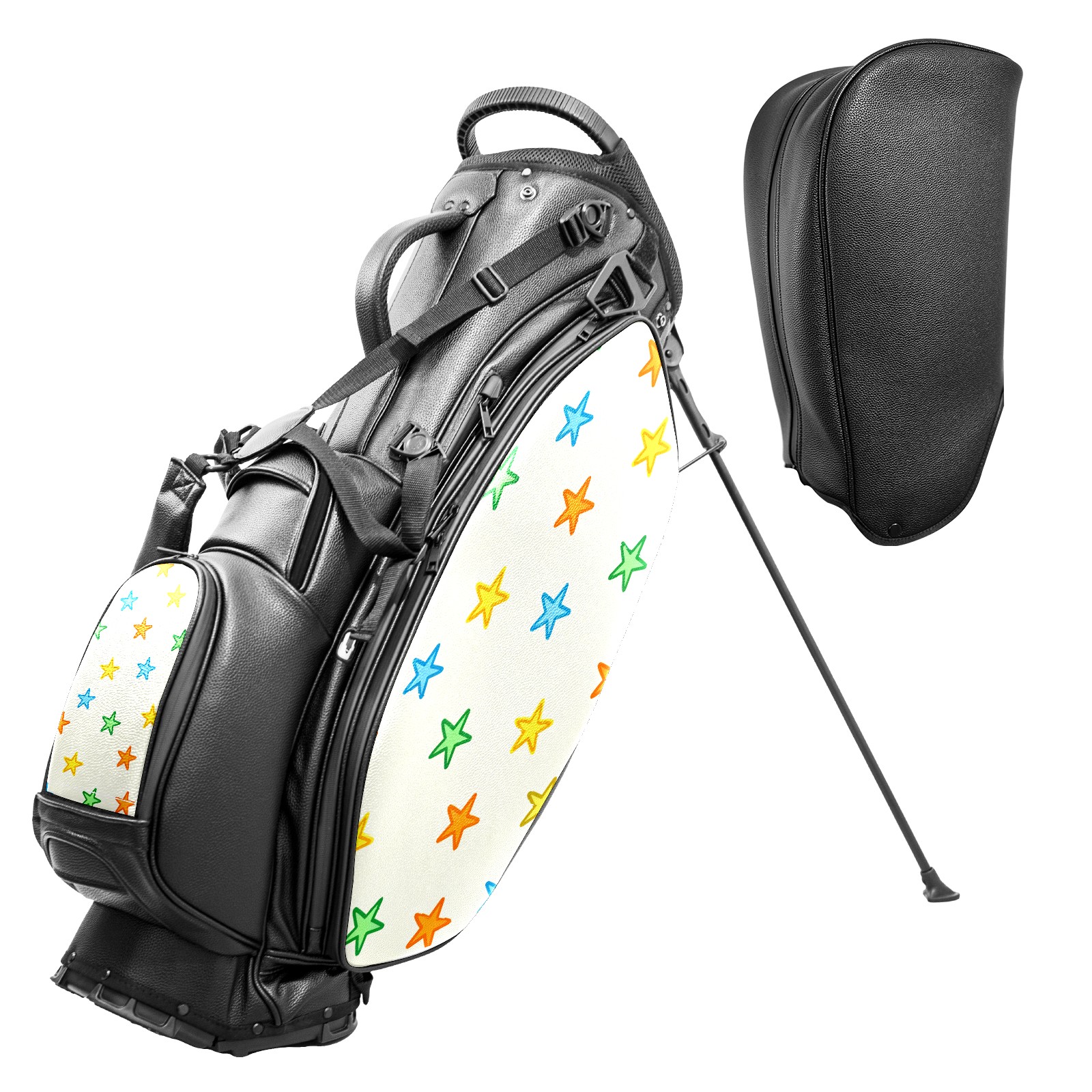 Lightweight Golf Stand Bag - 5-Way Top Divider, Golf Club Carry Bag with Adjustable Double Shoulder Straps, Zipper Storage Pockets + Rain Cover, Ideal for Men & Women Golfers Colorful Star