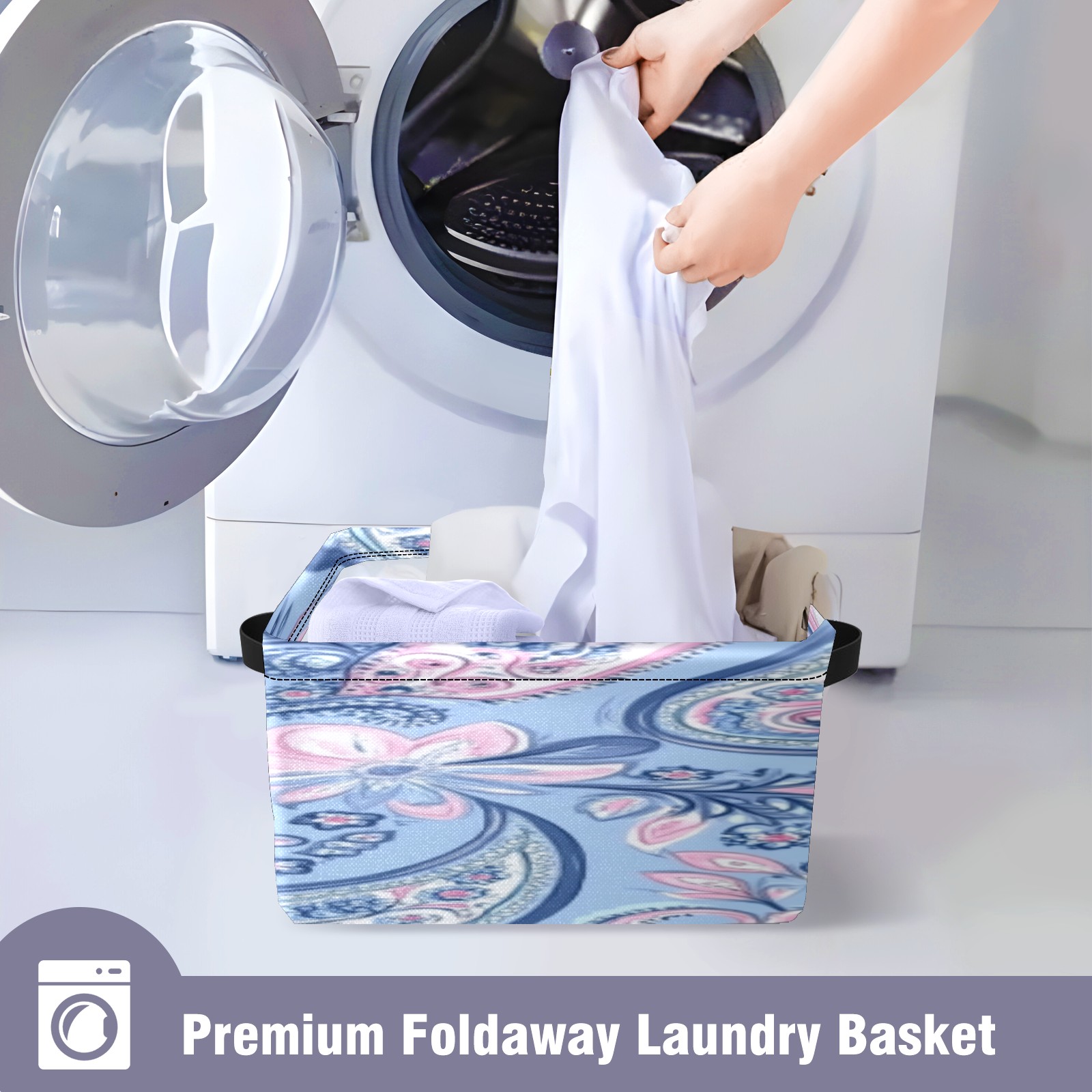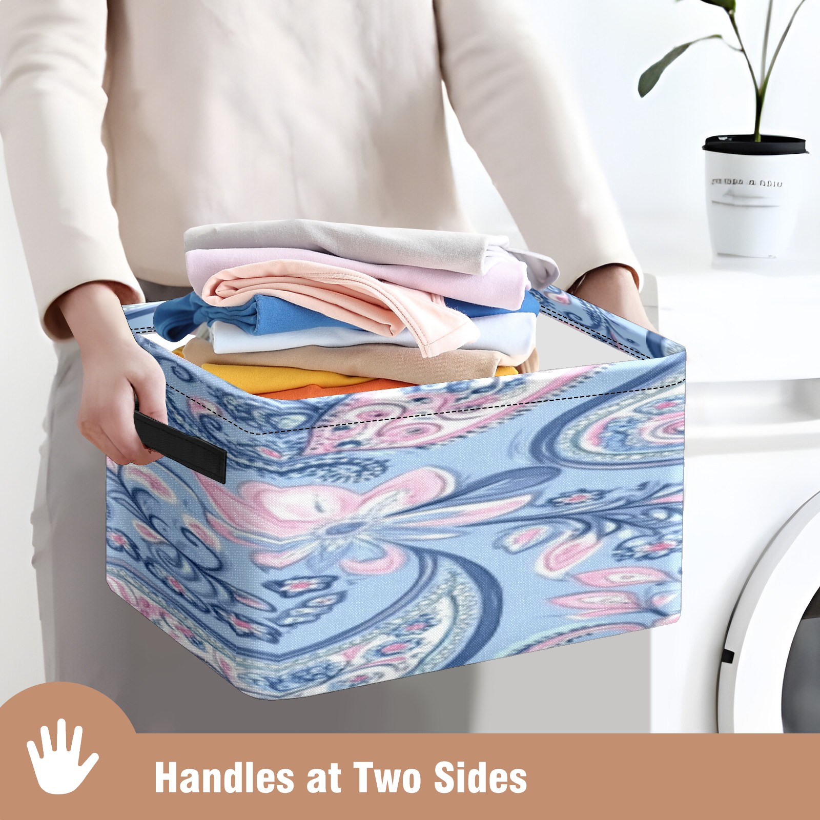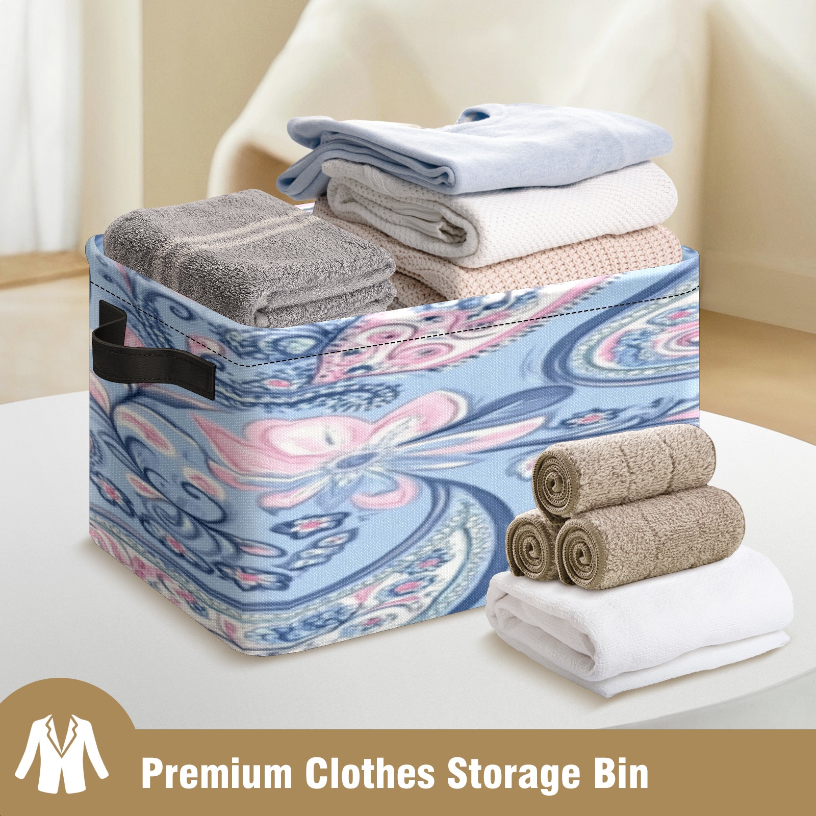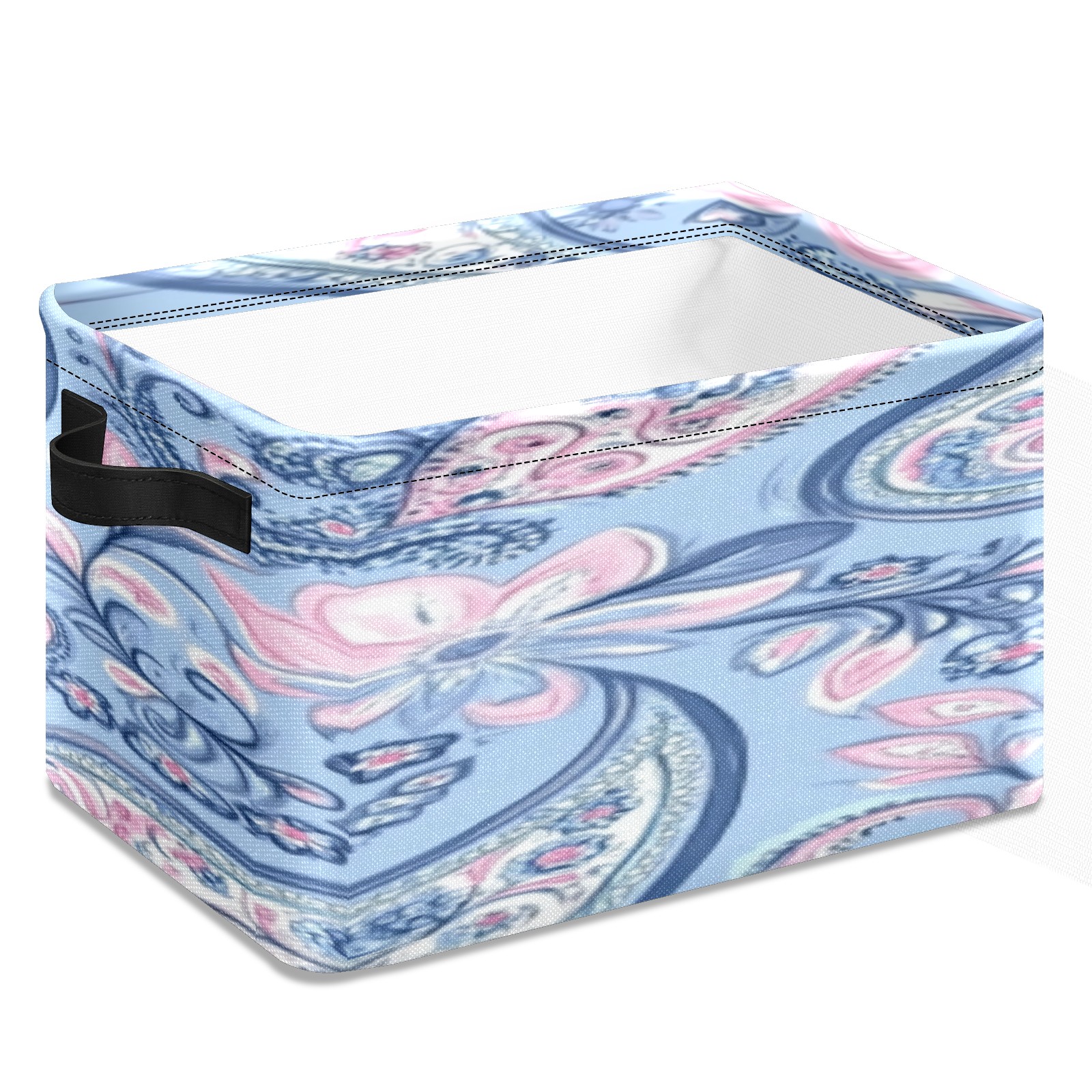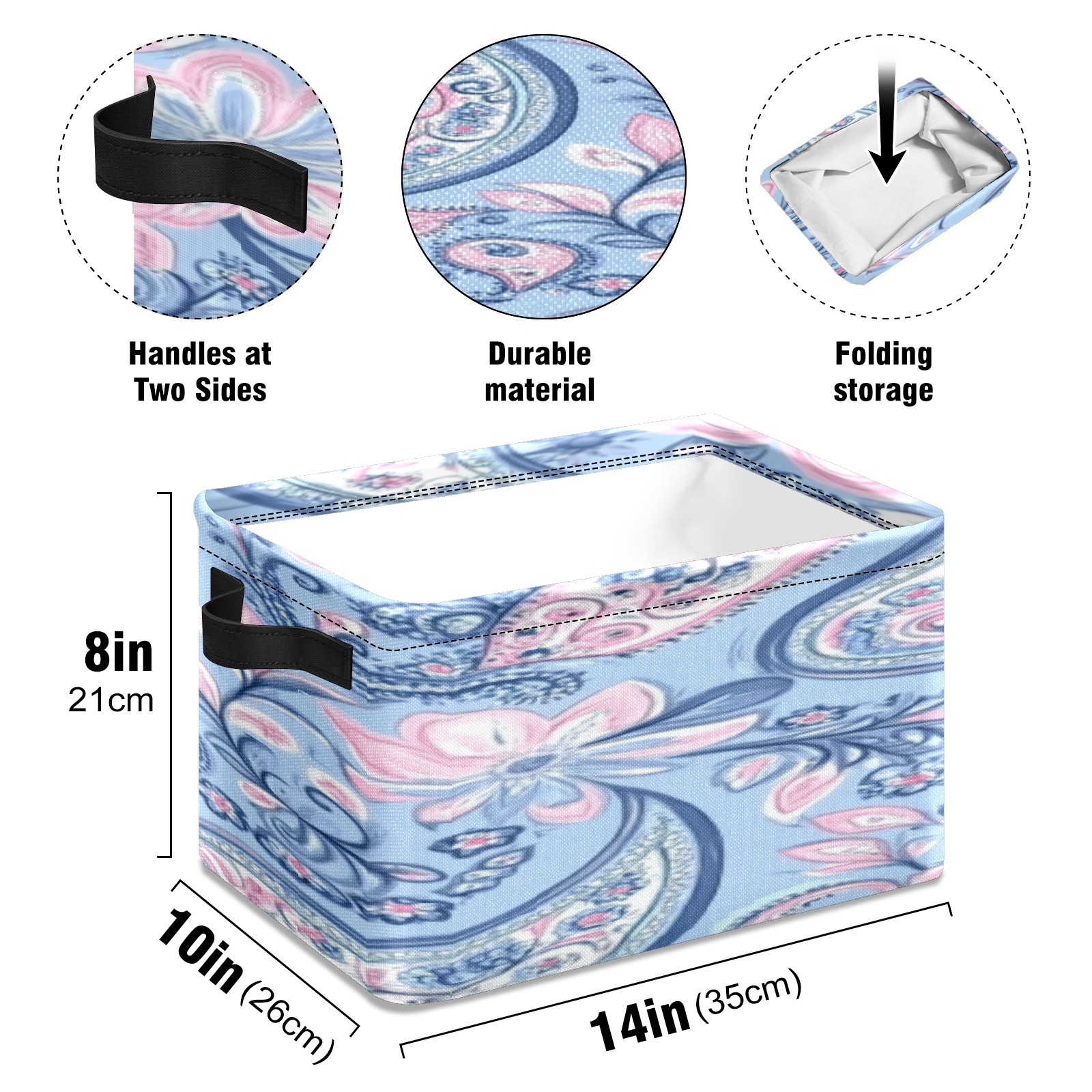 Foldable and Stackable Fabric Storage Basket for Home Organization with Handles, Decorative Closet Bins for Shelves, Laundry, and Toy Storage( Blue Paisley)