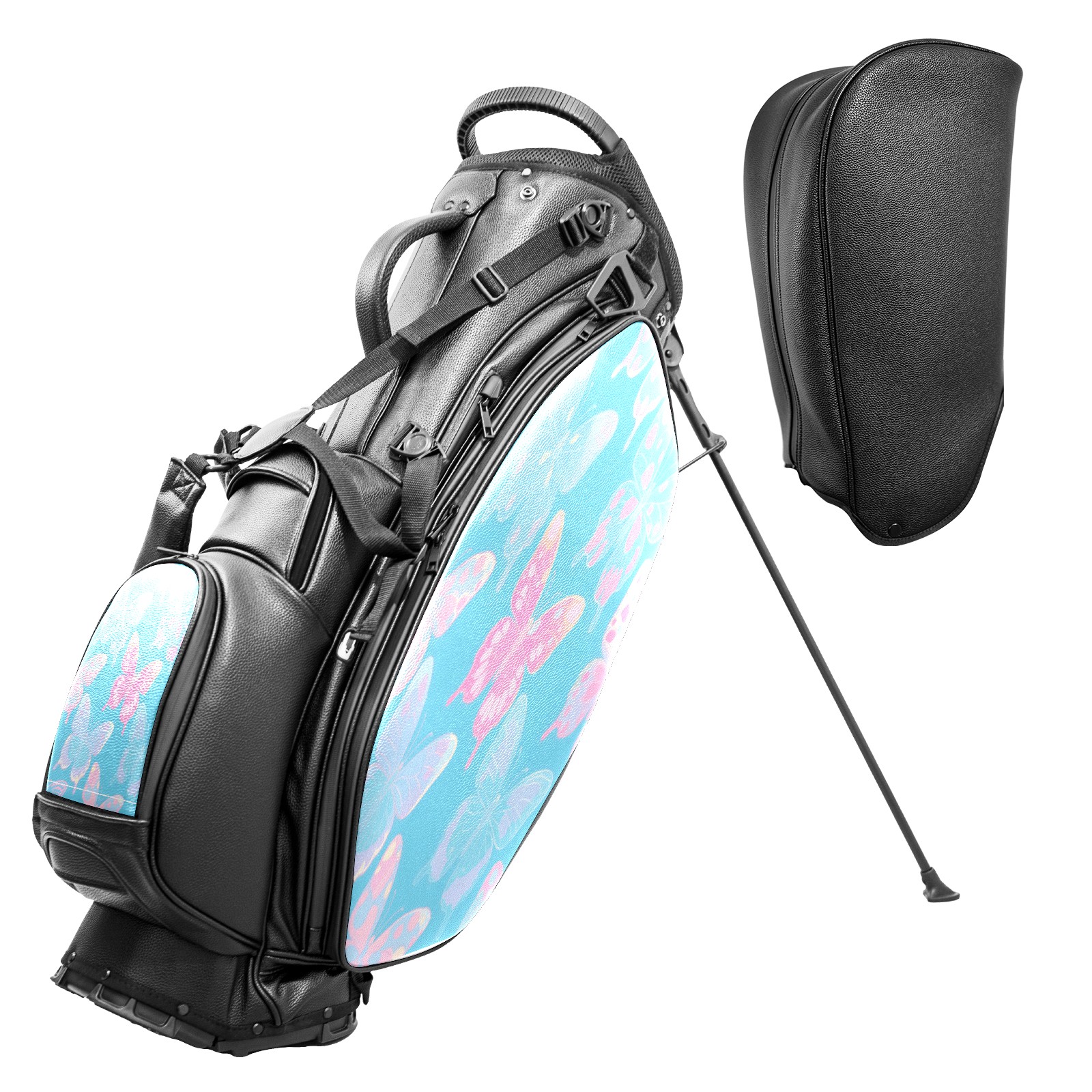 Lightweight Golf Stand Bag - 5-Way Top Divider, Golf Club Carry Bag with Adjustable Double Shoulder Straps, Zipper Storage Pockets + Rain Cover, Ideal for Men & Women Golfers Butterflies