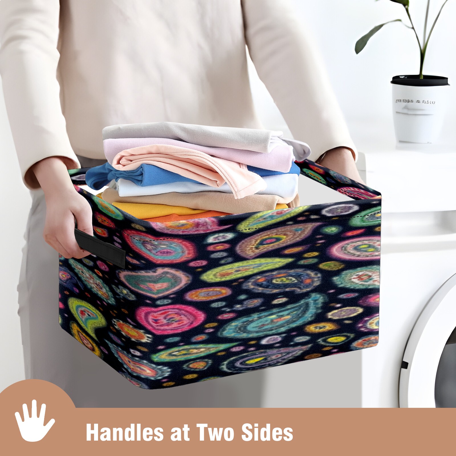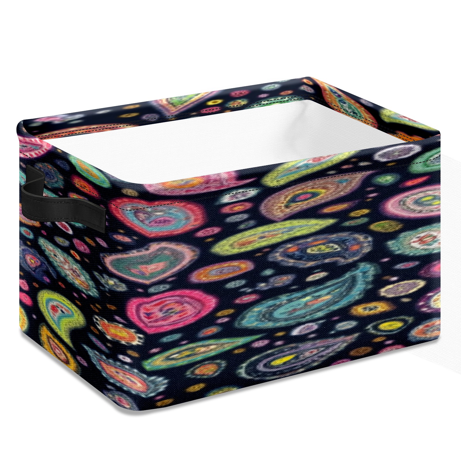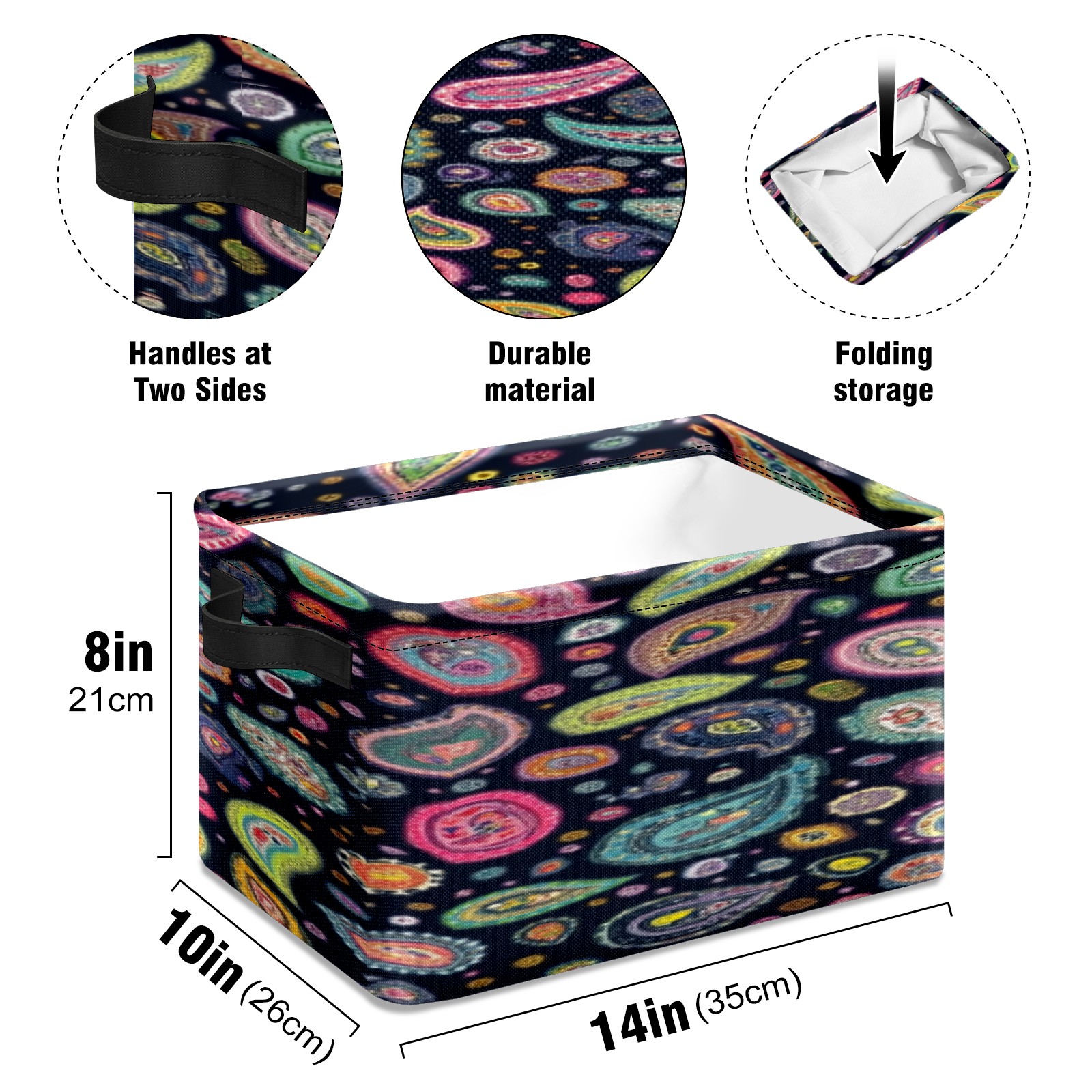 Foldable and Stackable Fabric Storage Basket for Home Organization with Handles, Decorative Closet Bins for Shelves, Laundry, and Toy Storage( Colorful Paisley Designs)
