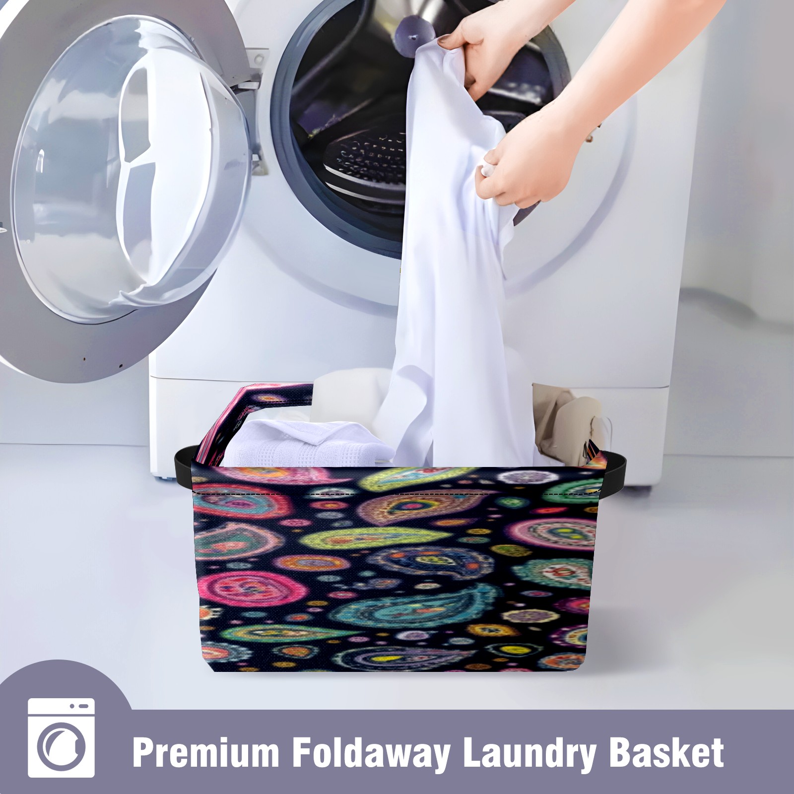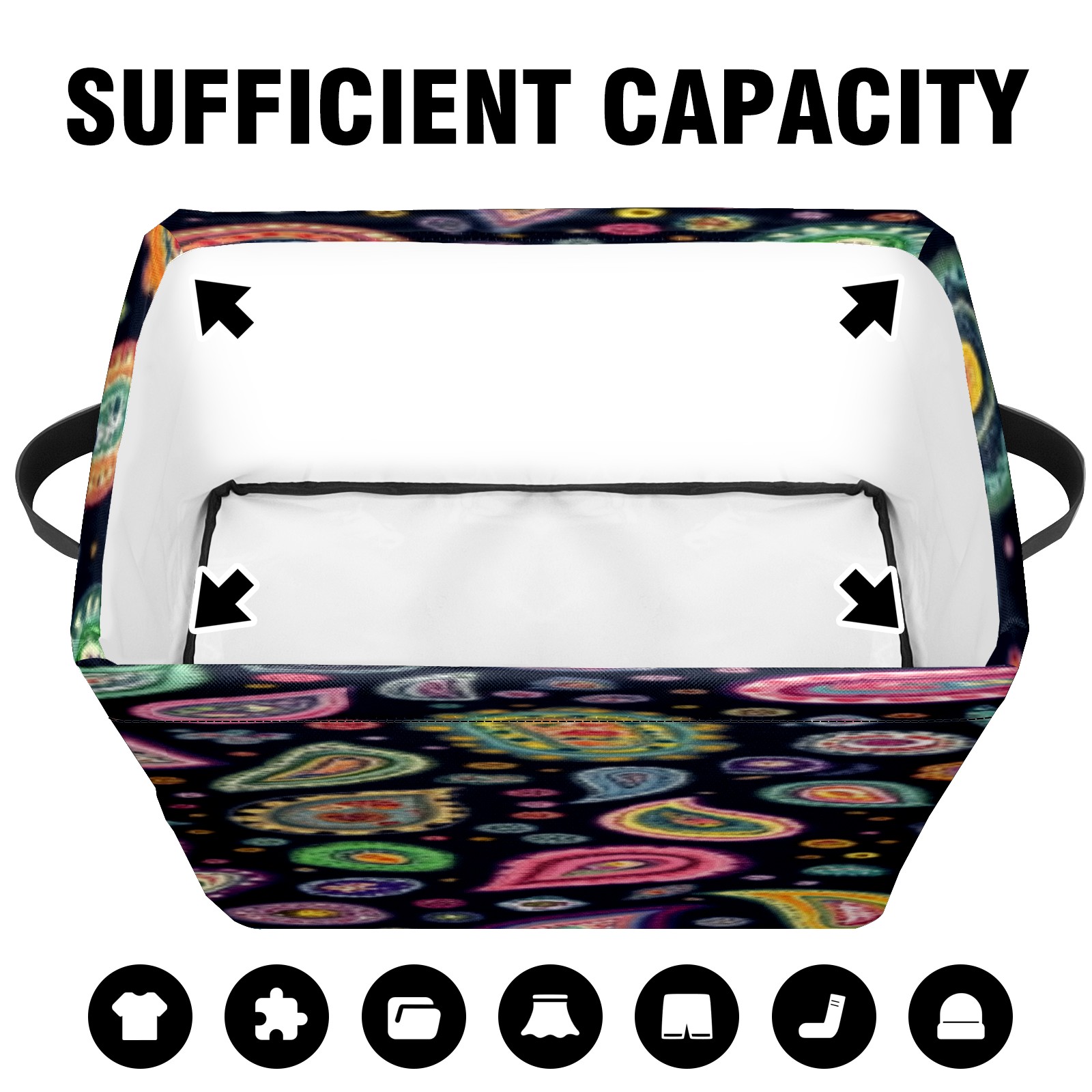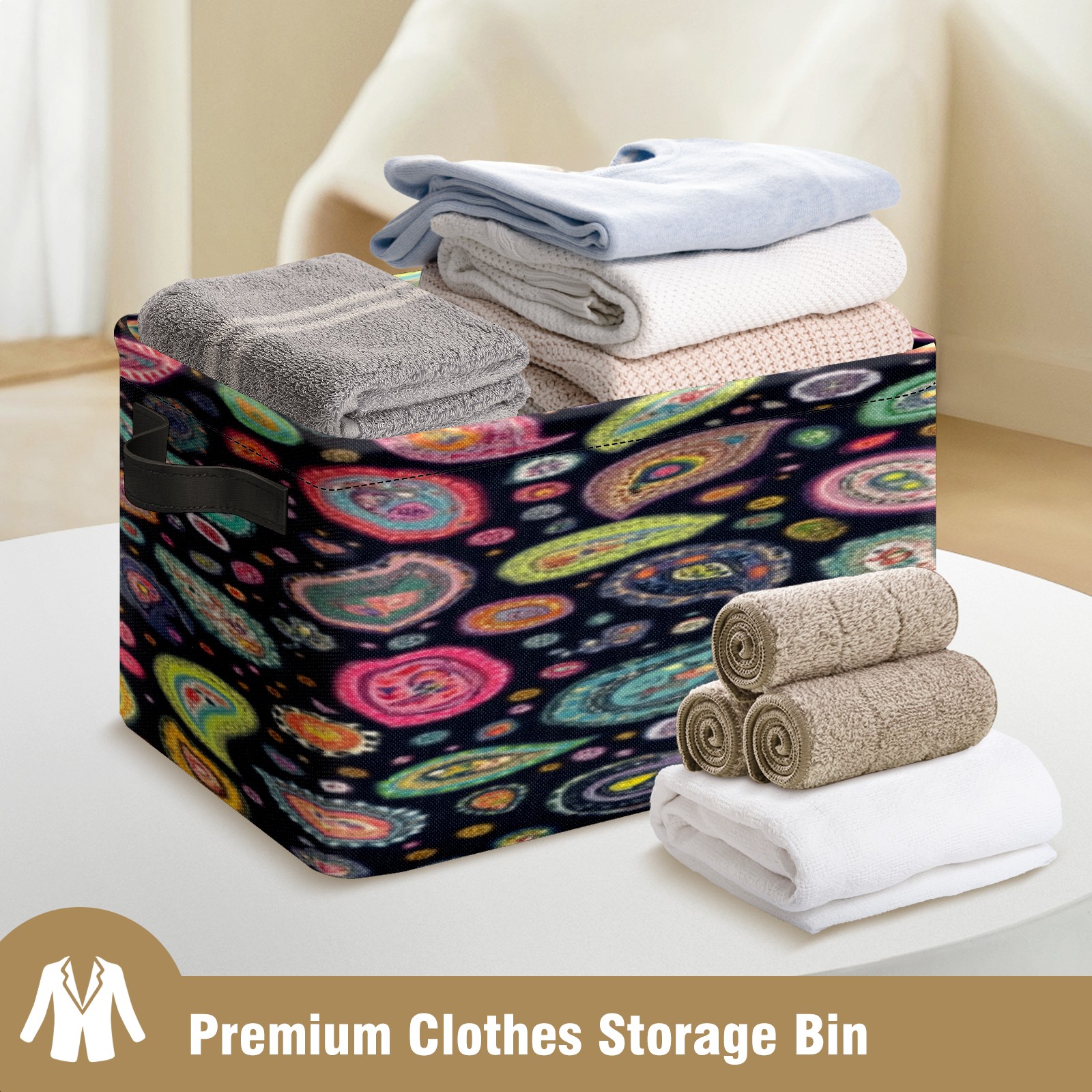 Foldable and Stackable Fabric Storage Basket for Home Organization with Handles, Decorative Closet Bins for Shelves, Laundry, and Toy Storage( Colorful Paisley Designs)