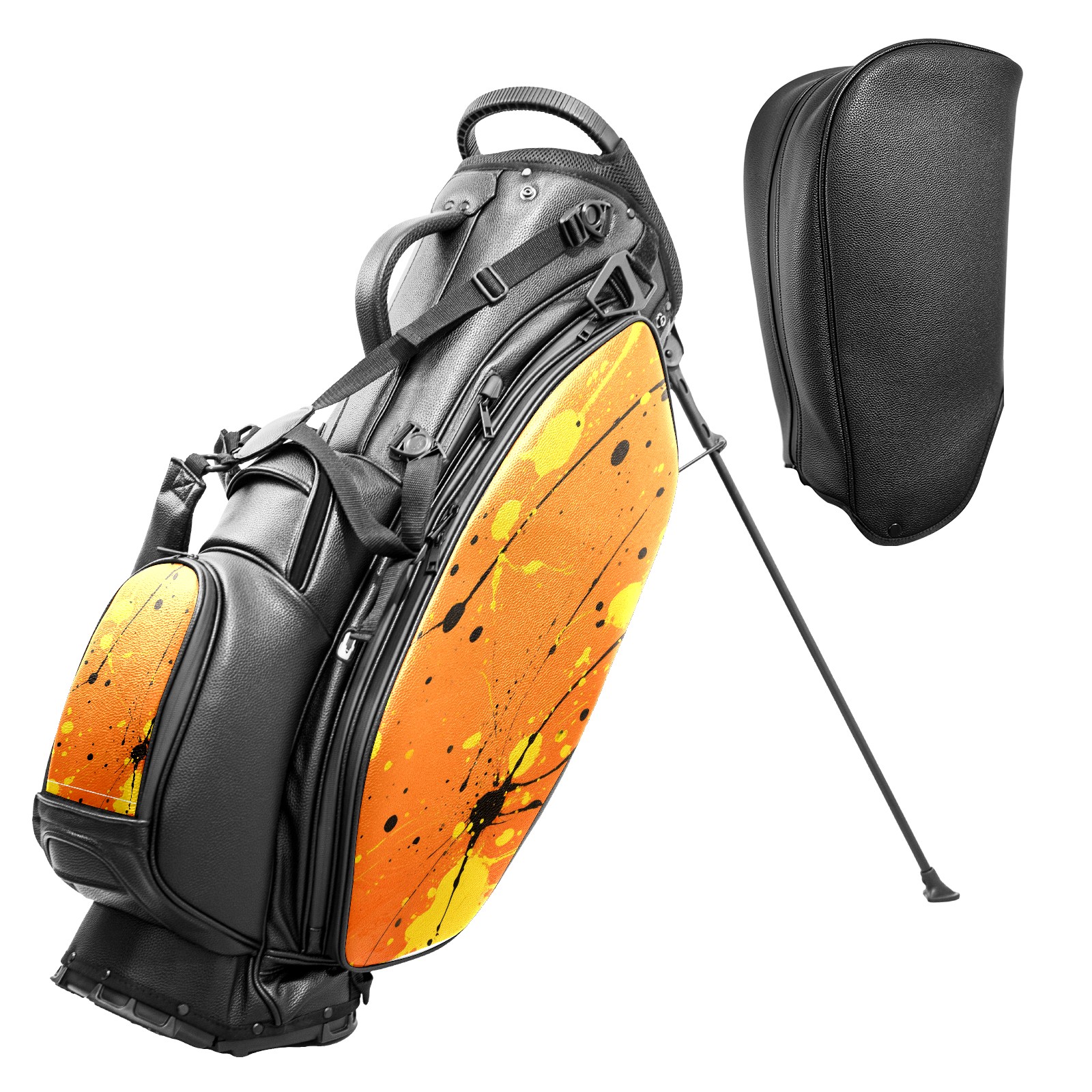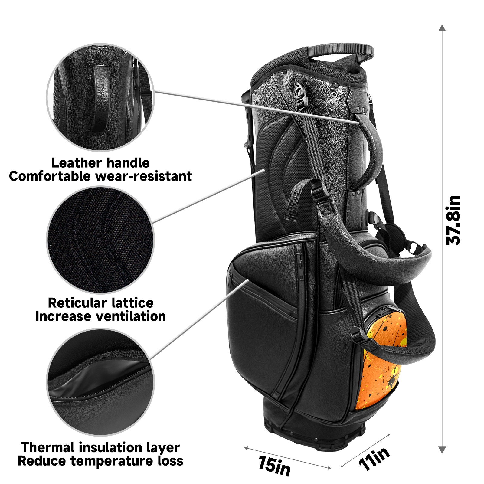 • <p>This golf bag combines versatility, durability, and quality, providing comprehensive protection and easy access for your golf clubs. Its precise dimensions of 130 x 37 x 31 cm (with rain cover) and 90 x 31 x 37 cm (without rain cover) strike the perfect balance between portability and storage capacity.The five-way head frame (with five-way top compartments) allows for strategic compartmentalization, allowing you to neatly organize your various clubs and separate them to protect them from bumps, scratches, and scuffs. Its versatile compartmental design features a spacious five-compartment structure, including a separate, full-size club compartment, to fully accommodate your clubs while protecting their integrity.This bag features a versatile storage system with multiple waterproof zippered pockets for securely storing golf accessories, as well as a dedicated insulated cooler pocket with excellent insulation to keep your drinks cold. The built-in rain cover effectively repels moisture, ensuring your clubs remain dry and protected even in wet weather. For enhanced carrying comfort, this bag features ergonomically designed, padded, breathable, adjustable shoulder straps and an adjustable chest strap to distribute shoulder pressure for easier and more comfortable carrying. A portable rear handle makes lifting and carrying easier.Quality is evident in every detail: double-stitched reinforced edges enhance structural stability, smooth and durable zippers ensure long-lasting reliability, and wear-resistant bottom rivets ensure secure placement on all terrains, effectively preventing wear and tear. Crafted from classic pebbled matte PU fabric, it perfectly complements both business and casual occasions. Available in black and white, it exudes understated elegance and sophistication.This golf bag, with its sturdy plastic base, combines premium quality and durability, making it the ideal companion for every golfer, whether heading to the course for a casual round or attending a business golf event.</p>