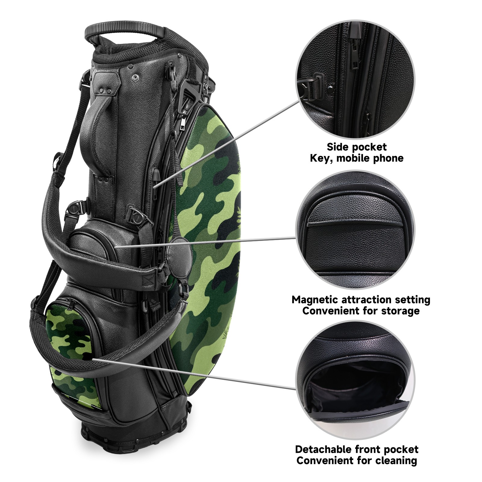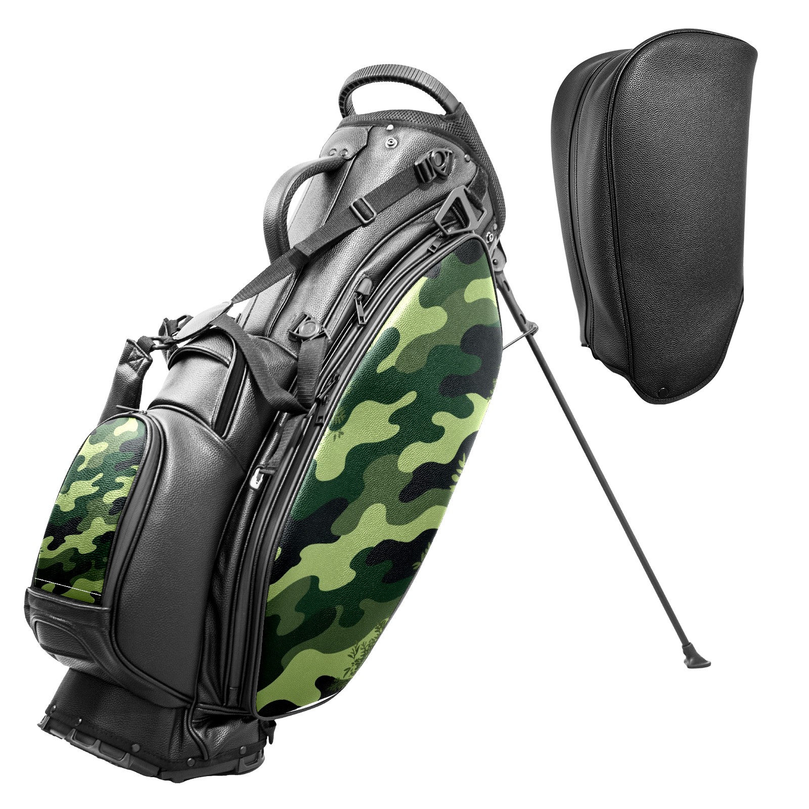 Lightweight Golf Stand Bag - 5-Way Top Divider, Golf Club Carry Bag with Adjustable Double Shoulder Straps, Zipper Storage Pockets + Rain Cover, Ideal for Men & Women Golfers Green Camouflage