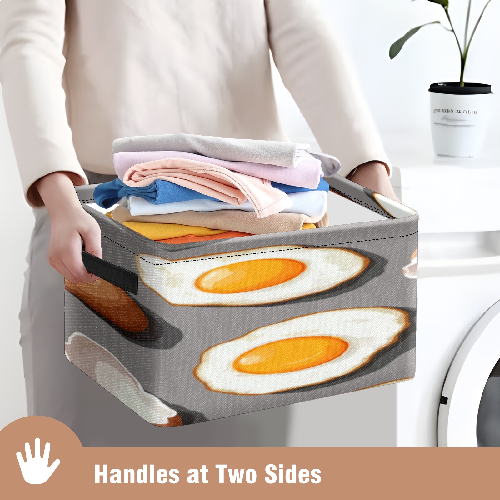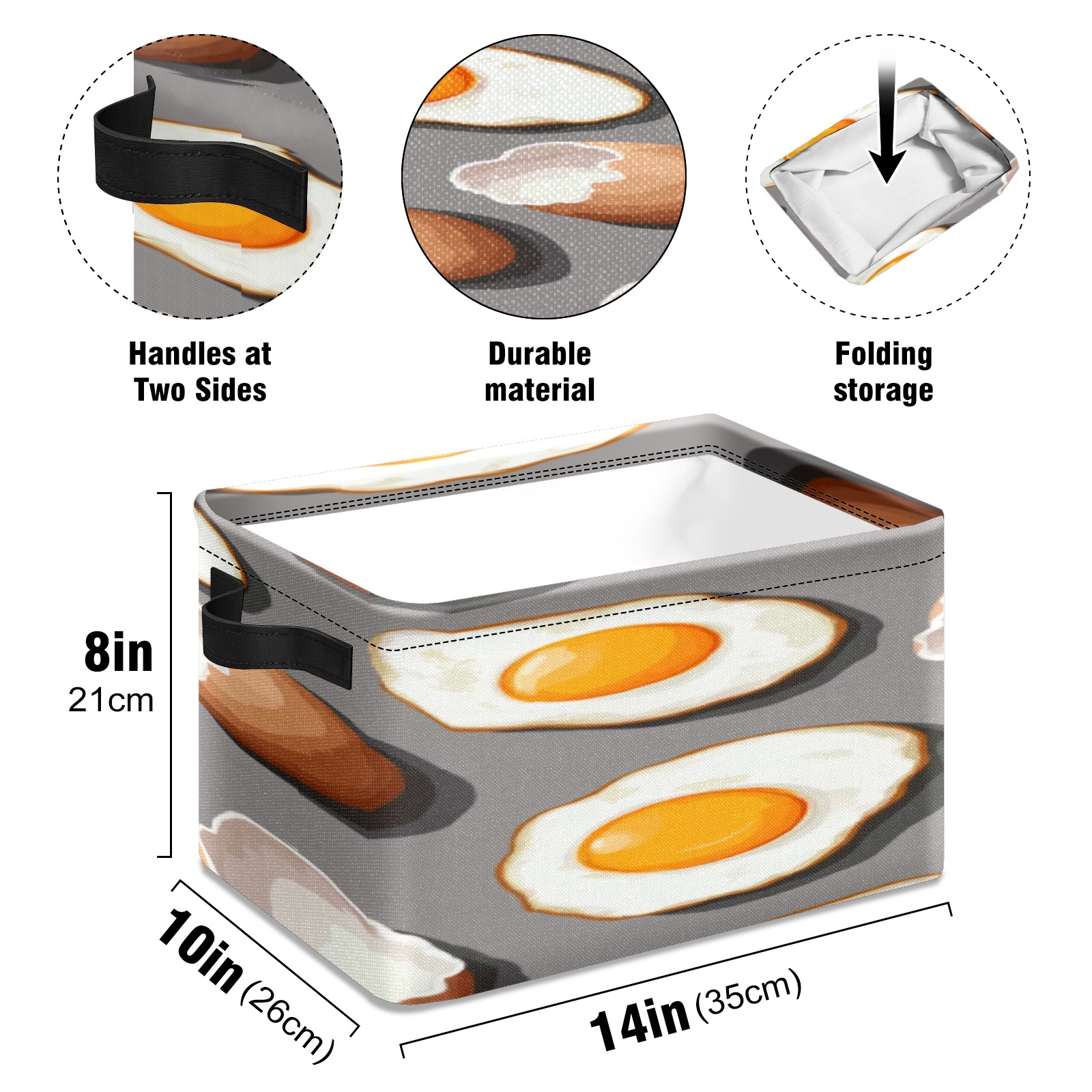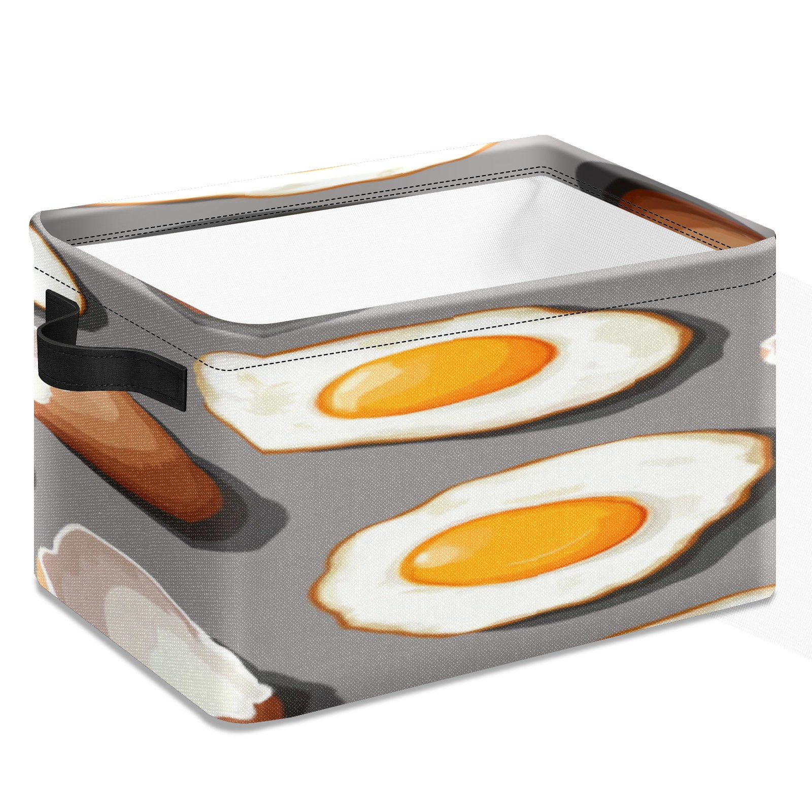 Foldable and Stackable Fabric Storage Basket for Home Organization with Handles, Decorative Closet Bins for Shelves, Laundry, and Toy Storage( Fried Eggs And Eggshells)